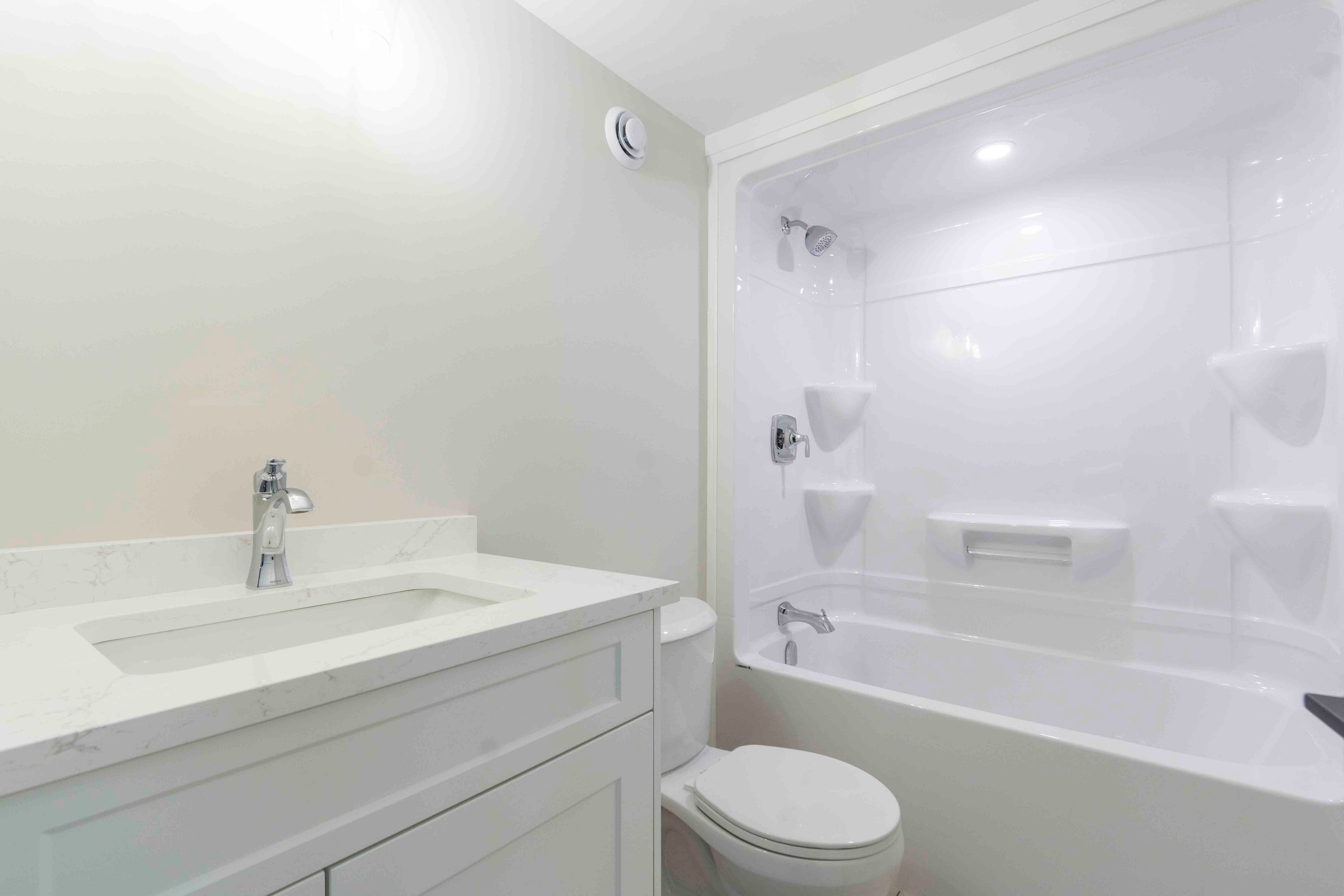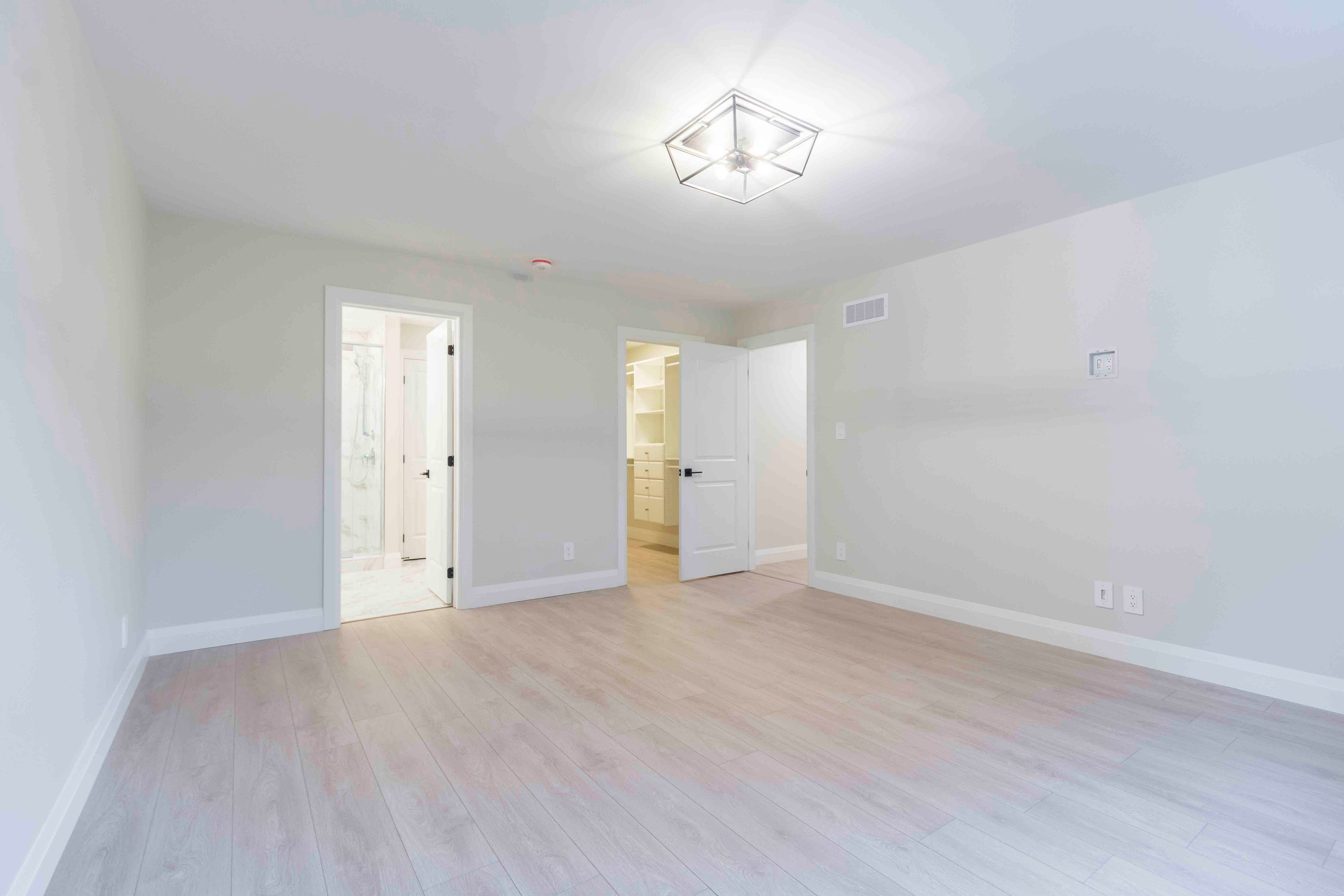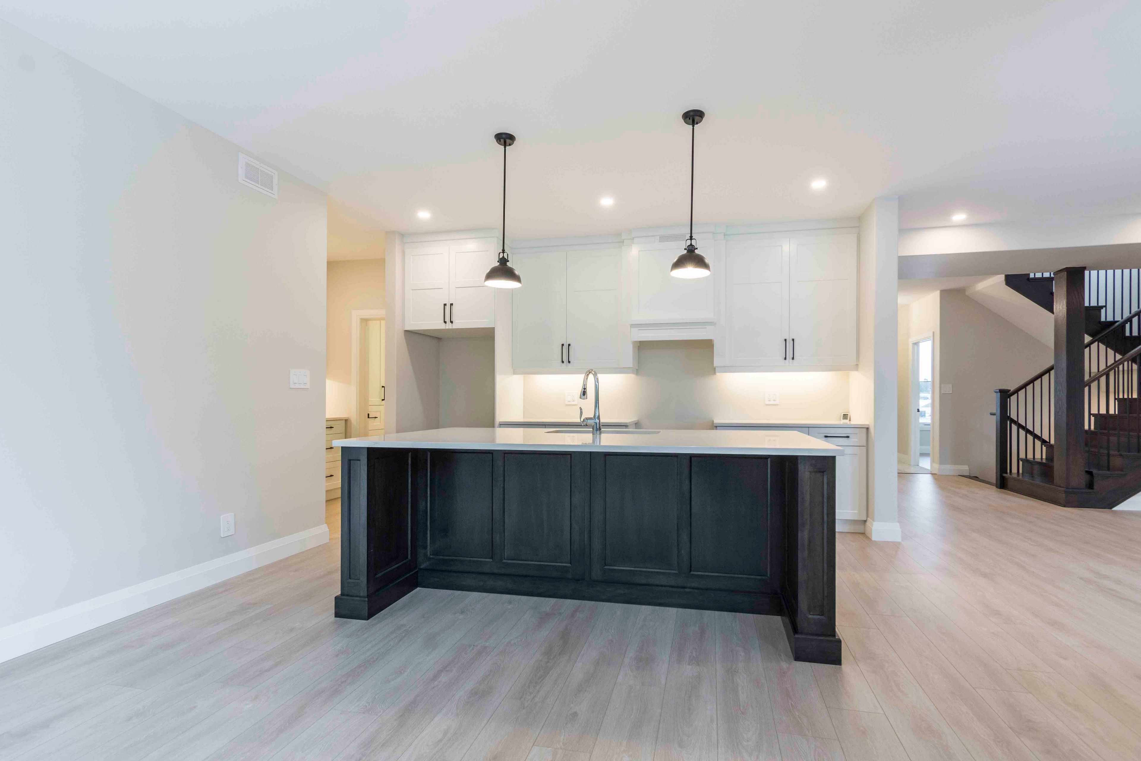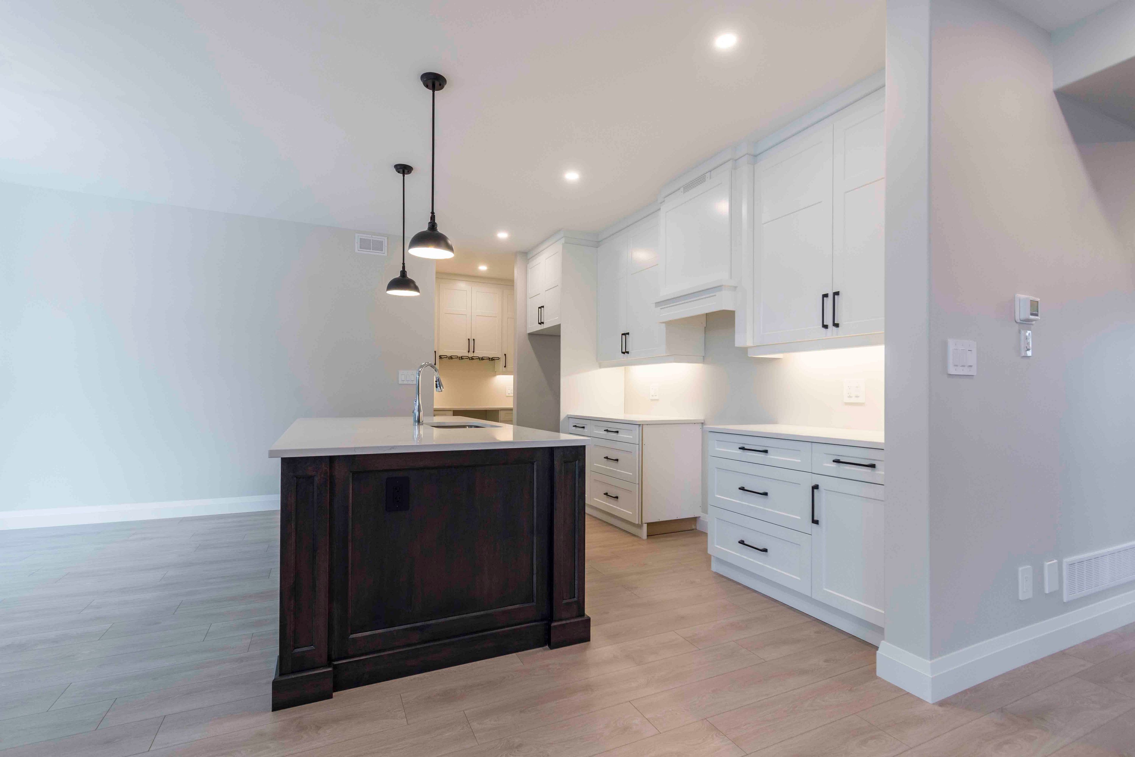 • Modern kitchen features quartz countertops and a walk-in pantry.