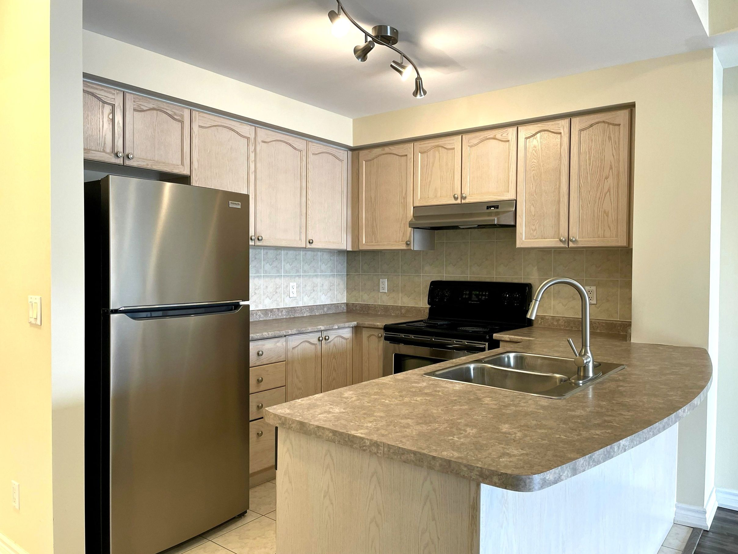 • Upgraded laminate flooring and modern lighting enhance the interior.