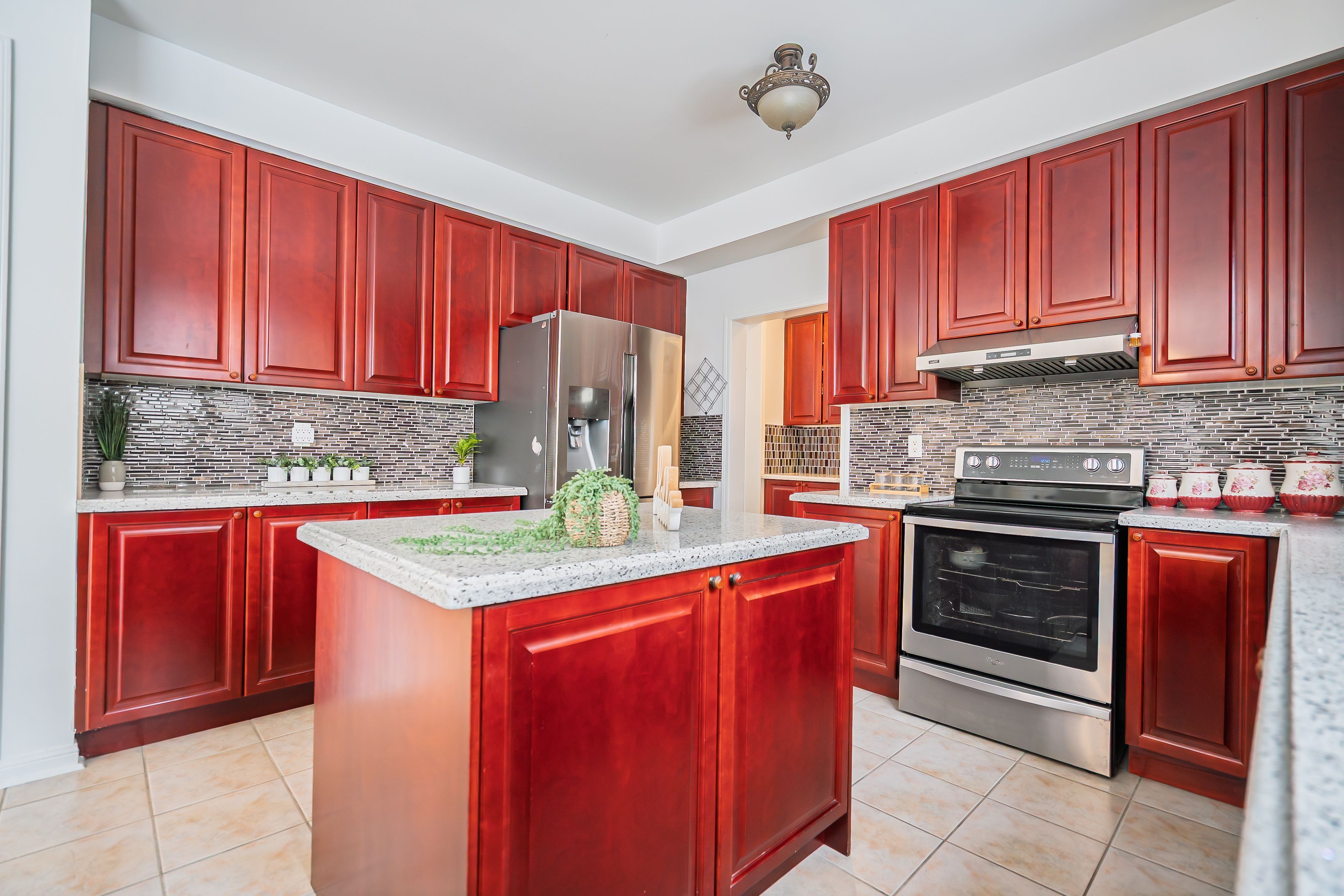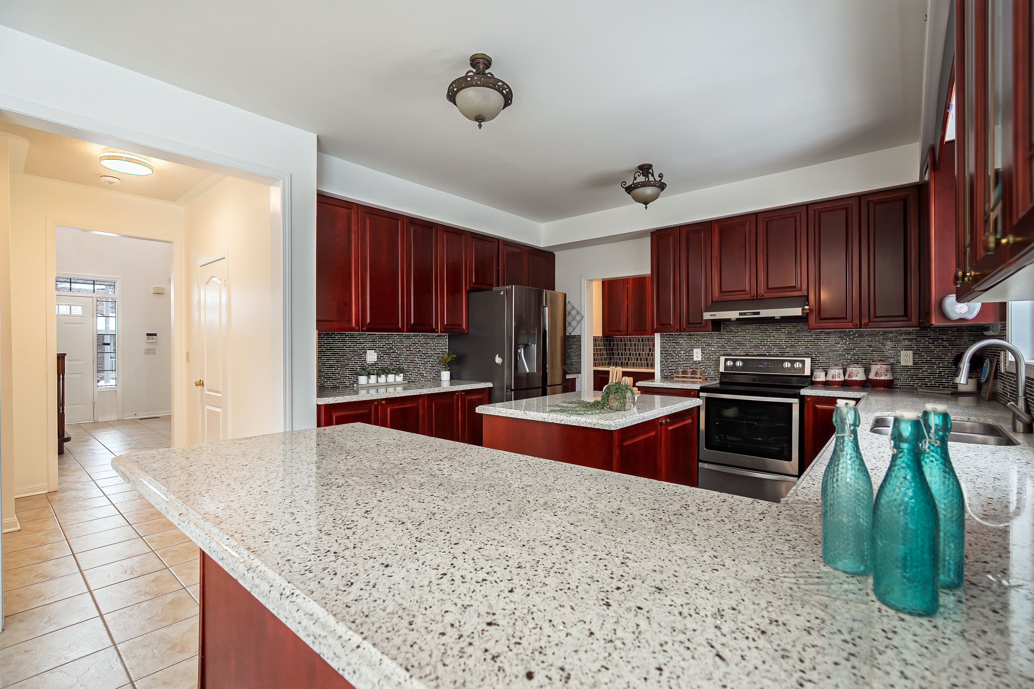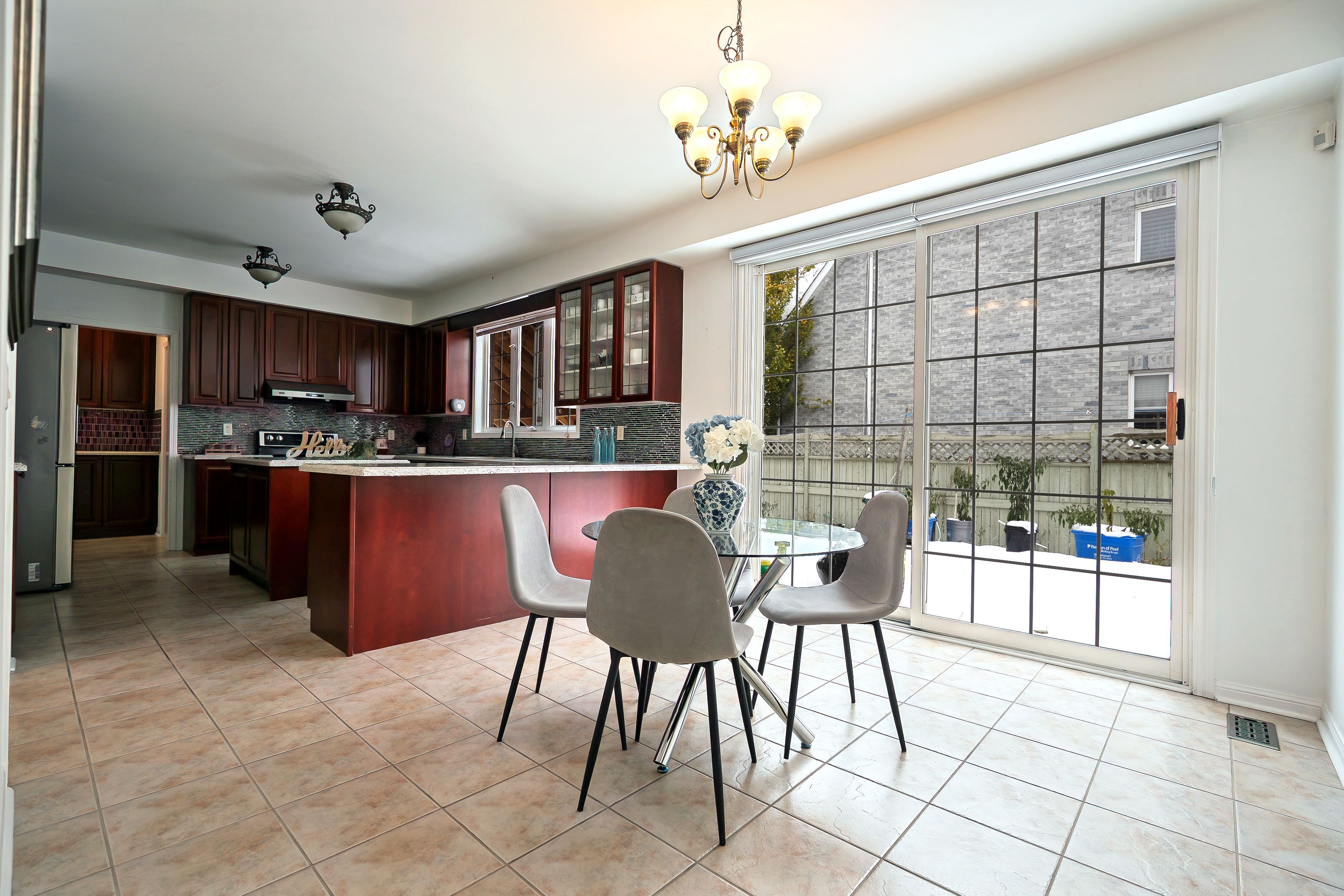 • Large kitchen with island and breakfast area overlooking the backyard.