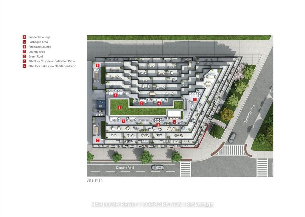 Welcome to the manderley by nova ridge - a brand-new boutique condominium in toronto's desirable birch cliff community. This bright and stylish 1 bed, 1 bath suite features a north exposure, a spacious private balcony, and a pillar-free, thoughtfully upgraded with a modern kitchen backsplash with upgraded breakfast bar, bathroom backsplash, and mirrored closet doors. Ideally located just minutes from lake ontario, the beach, scarborough bluffs, parks, local dining, shops, and ttc transit. Enjoy quick access to danforth go station and a short 20-minutecommute to downtown toronto. Experience modern living with premium amenities including a concierge, fitness center, rooftop terrace with bbqs, party and meeting rooms, guest suite, and children's play area - the perfect blend of comfort, convenience, and contemporary style.