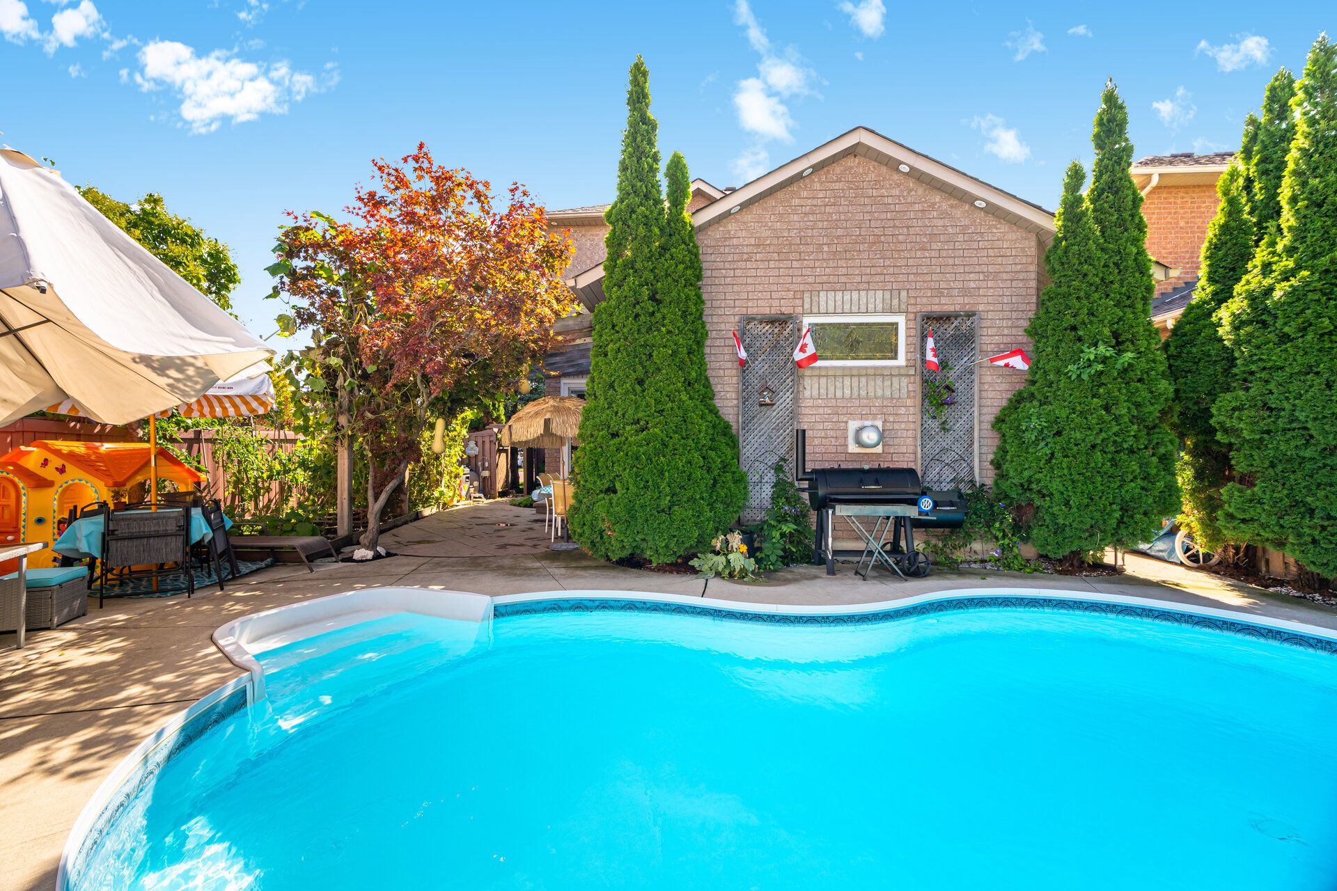 Welcome to 2 melrose gardens! Family-focused community in brampton's snelgrove area. A charming detached homes community layout with generous lots, many featuring yards, mature landscaping, and a relaxed suburban feel. This stunning detached home features 3 spacious bedrooms and 4 bathrooms. Enjoy an open-concept main floor with hardwood flooring, an upgraded kitchen with custom design cabinets and a granite countertop with a built-in breakfast bar. Hardwood in dining and living room, cathedral ceiling, and gas fireplace. A fully finished basement with a separate entrance, featuring 2 additional bedrooms and a living/dining space with a gas fireplace and a convenient kitchenette, full washroom, making it ideal for extended family or rental income. Step outside to your private backyard retreat featuring an in-ground heated pool and a cabana perfect for summer entertaining. Located in a family-friendly neighbourhood close to schools, parks, shopping, transit, and convenient access to hwy 410, nearby shopping centres, and places of worship. Located in close proximity to a 3-acre park (mayfield park), ideal for outdoor recreation. Steps to cunnington parkette with playground on melrose, a rare find with incredible potential. Don't miss this amazing opportunity!. -the house is freshly painted throughout with zebra blinds on every window. -driveway sealed (aug 2025) for a fresh, clean look. -owned a tankless water heater for energy efficiency. -owned central heating(furnace)and ac. -new wired fire alarms and new smoke detectors installed on all floors (jan 2025) -shingles (2015) -main floor laundry -entry to house or basement also through the garage for added privacy and flexibility.