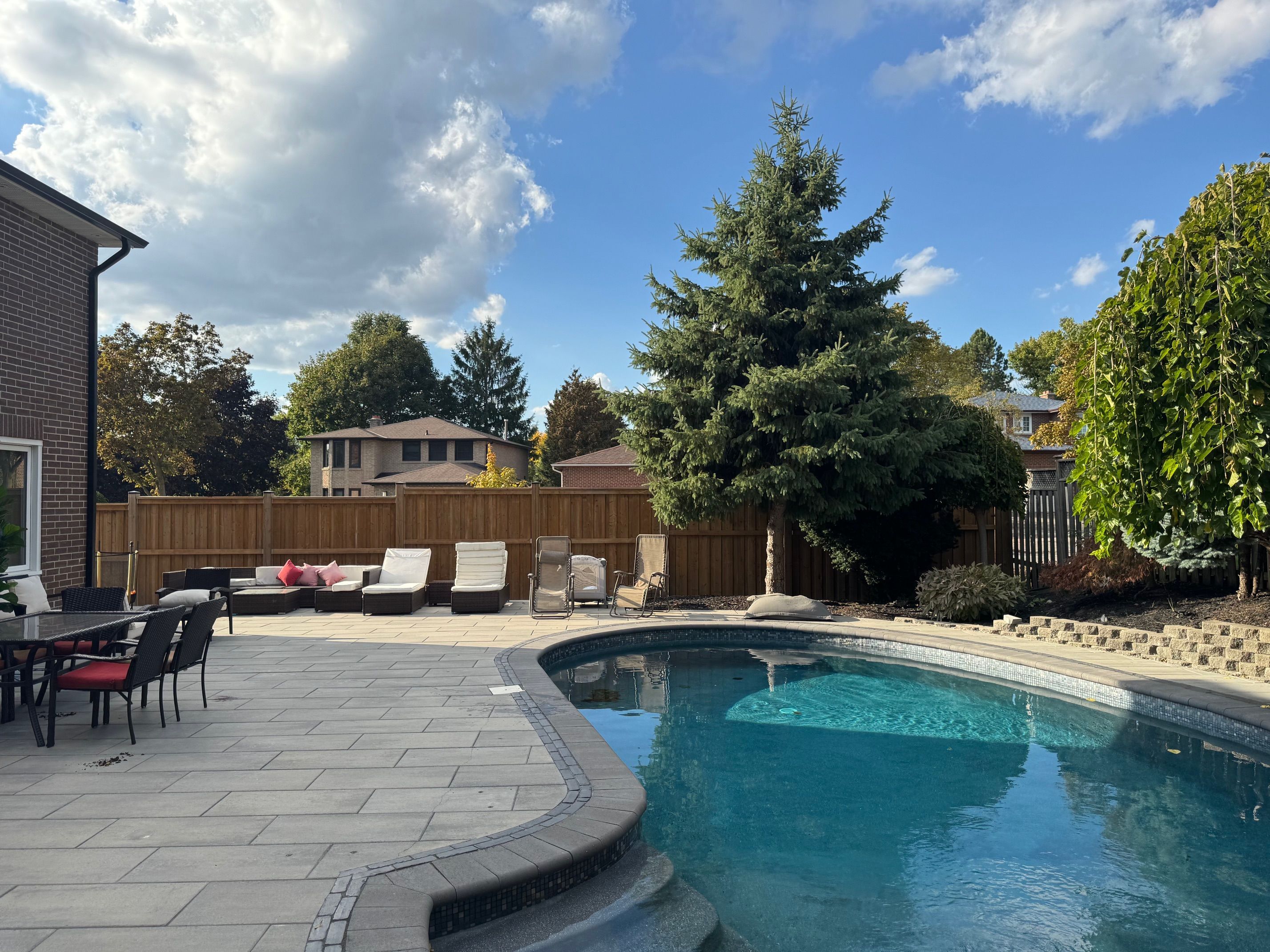 Welcome to 2 meyer circle - a beautifully upgraded corner lot residence offering refined finishes, thoughtful updates, and a true family-focused layout in one of markham's established neighbourhoods. Re-stained hardwood floors (2026), smooth ceilings, crown molding, and expansive principal rooms create an elegant yet inviting main level. The renovated kitchen (2022) is designed for both everyday living and entertaining, featuring quartz countertops, tile backsplash, centre island with seating, and stainless-steel samsung appliances including a gas stove. A bright breakfast area walks out to the backyard, while the updated laundry room (2026) with new tile, sink, washer and dryer provides convenient garage and side access. Upstairs, four spacious hardwood bedrooms accommodate a growing family with ease. The primary suite offers a walk-in closet and a private 4-piece ensuite, while the additional bedrooms feature california shutters, wall paneling, and closets. The finished basement adds versatile living space with a recreation room, electric fireplace, added bedroom, renovated 4-piece bath (2024), and rough-in for a future kitchen, ideal for multi-generational living. Step outside to your private resort-inspired backyard, complete with a salt water concrete pool with heated in-ground spa, new pool equipment (2023), professional landscaping, and a new 10-foot privacy fence. A turnkey home that blends luxury finishes with the functionality today's families need.