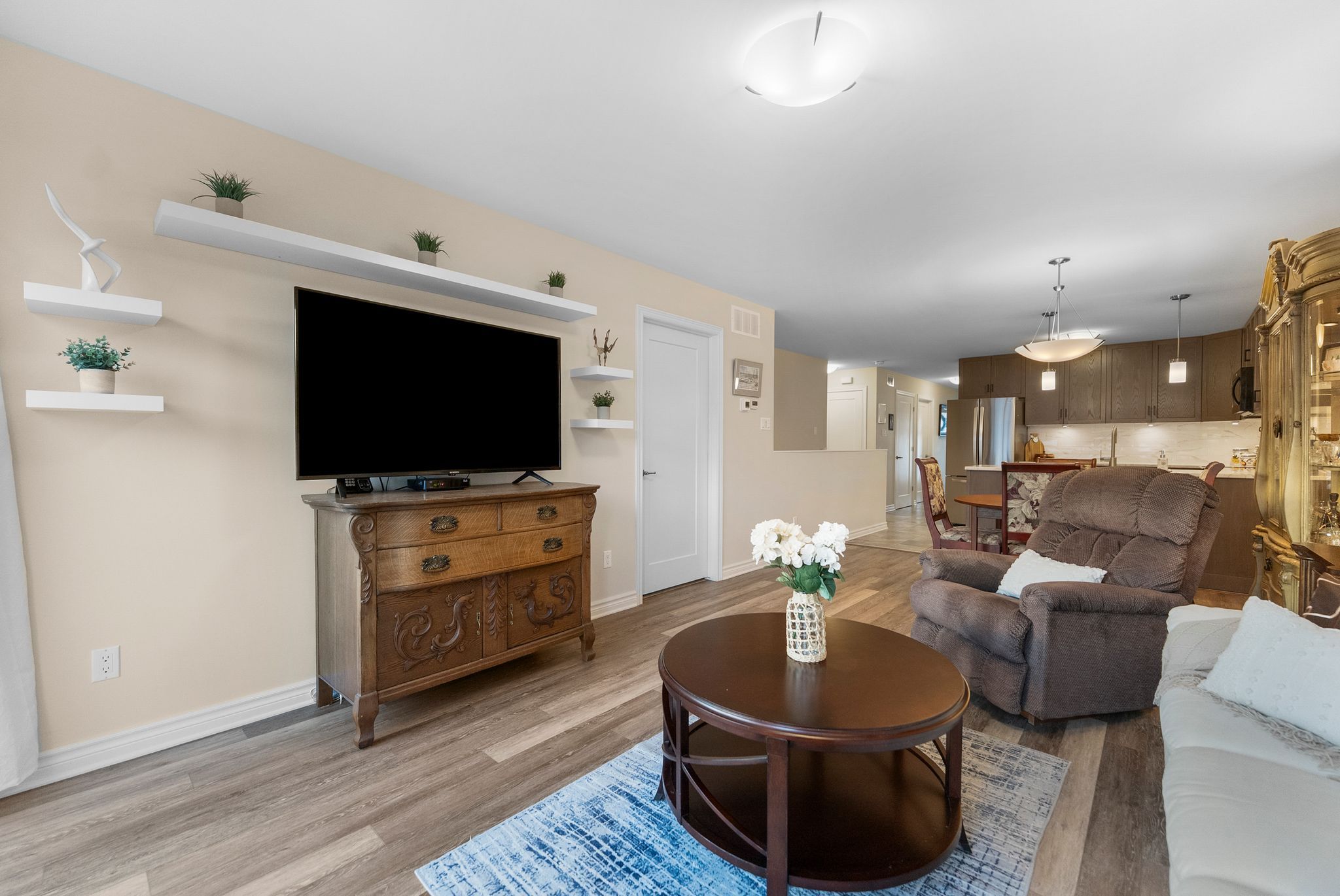 Welcome to this bright and inviting 2 bedroom, 2 bathroom, end unit bungalow in the charming town of arnprior! The open concept main level features a spacious living room with patio doors leading to a lovely outdoor patio space, ideal for relaxing and entertaining, a sun filled kitchen with plenty of cabinet and counter space and a new fridge making meal prep a breeze, a primary bedroom with updated vinyl plank flooring, which includes ensuite bathroom (new comfort height toilet) and a large closet, a second bedroom also with vinyl plank flooring, that is bright and spacious, and convenient main floor laundry to add to the homes functionality, main bath with new comfort height toilet. Only carpet in this home is on the stairs to the basement. The large unfinished basement (drywalled and spray foam insulated) with oversized windows and a rough in for a third bathroom provides endless possibilities- whether you envision a rec room, home office, gym, third bedroom, or additional living space, a second laundry hook-up adds extra flexibility. With the low maintenance layout and quiet location, this home is a perfect choice for downsizers, first-time home buyers, or anyone looking for comfortable one level living. Arnprior offers- hospital, schools (both french and english), library, museum, movie theatre, bowling alley, restaurants, shopping, churches, recreation centre, beaches, parks, nature trails and so much more, and a short 25 minute commute to kanata.