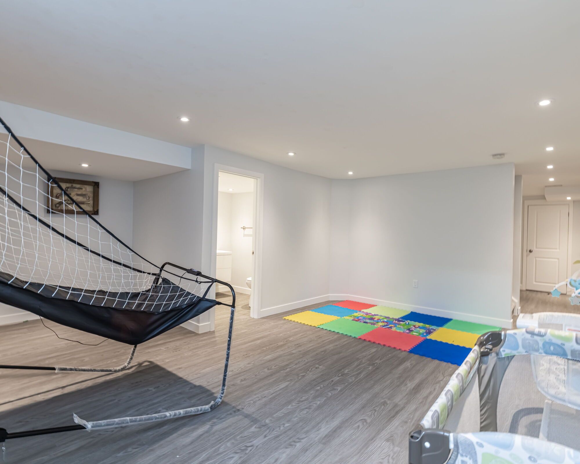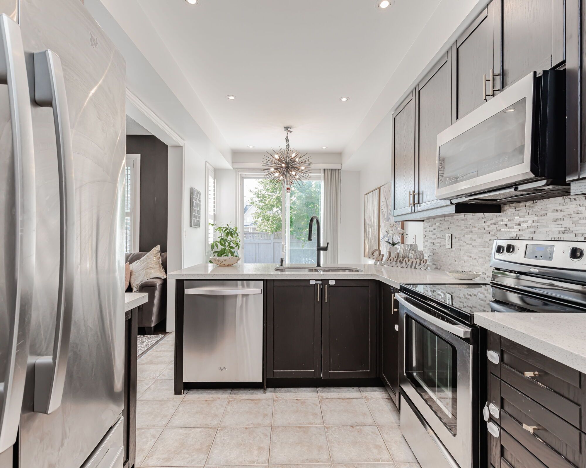• Family-sized kitchen equipped with quartz countertops and stainless-steel appliances.