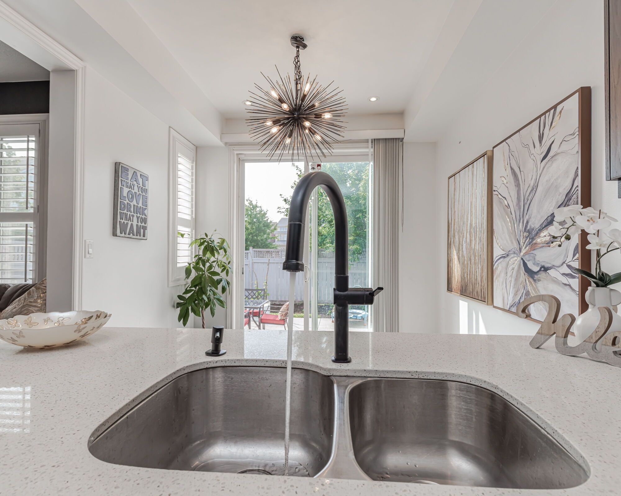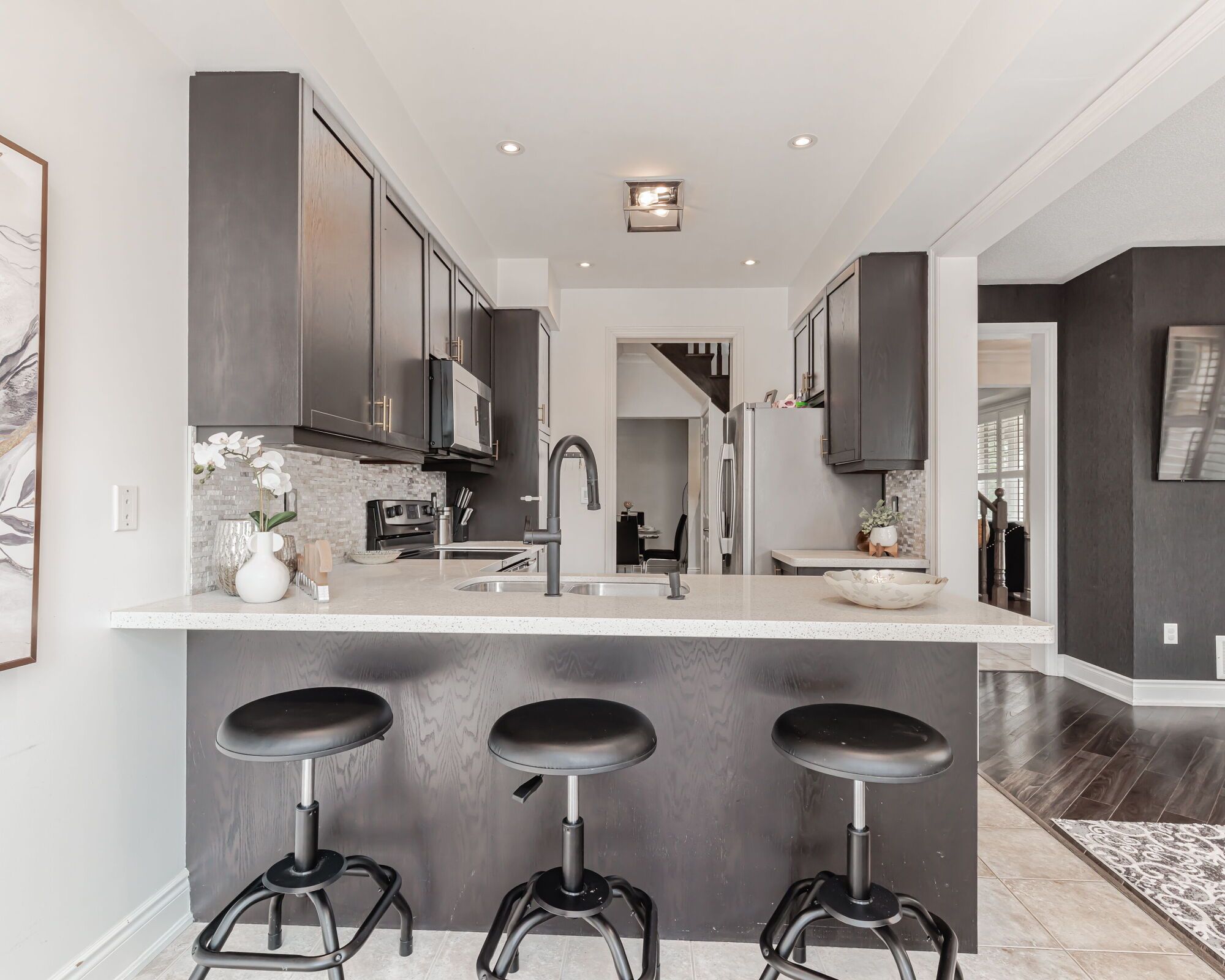 Luxurious end-unit corner townhome in sought-after southfields village, caledon. Bright and spacious 4-bedroom, 4-bath home with 9-ft ceilings and upgraded flooring throughout. Open-concept living/dining area with gas fireplace. Separate family room combined with kitchen and breakfast area, perfect for everyday living and entertaining. Family-size kitchen features quartz countertops, backsplash, stainless steel appliances, modern lighting, and walk-out to backyard from breakfast area. Generously sized bedrooms. Primary bedroom with walk-in closet and 5-pc ensuite. Finished basement with private office and gym area. Corner unit with abundant natural light. California shutters, interior & exterior pot lights. 2-car garage with no sidewalk on driveway allowing parking for up to 4 cars. Large fenced backyard. Steps to etobicoke creek. Close to schools, parks, trails, shopping, community centre, and major highways. Shows 10/10. Must see!