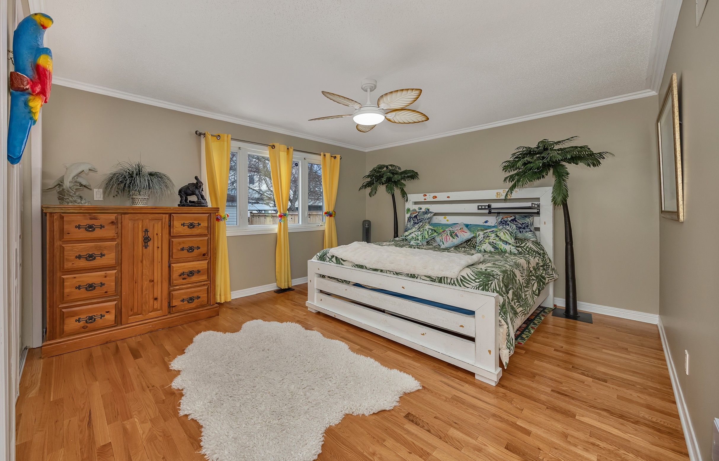 • Oversized fenced backyard with cherry blossom trees for a lovely outdoor space.