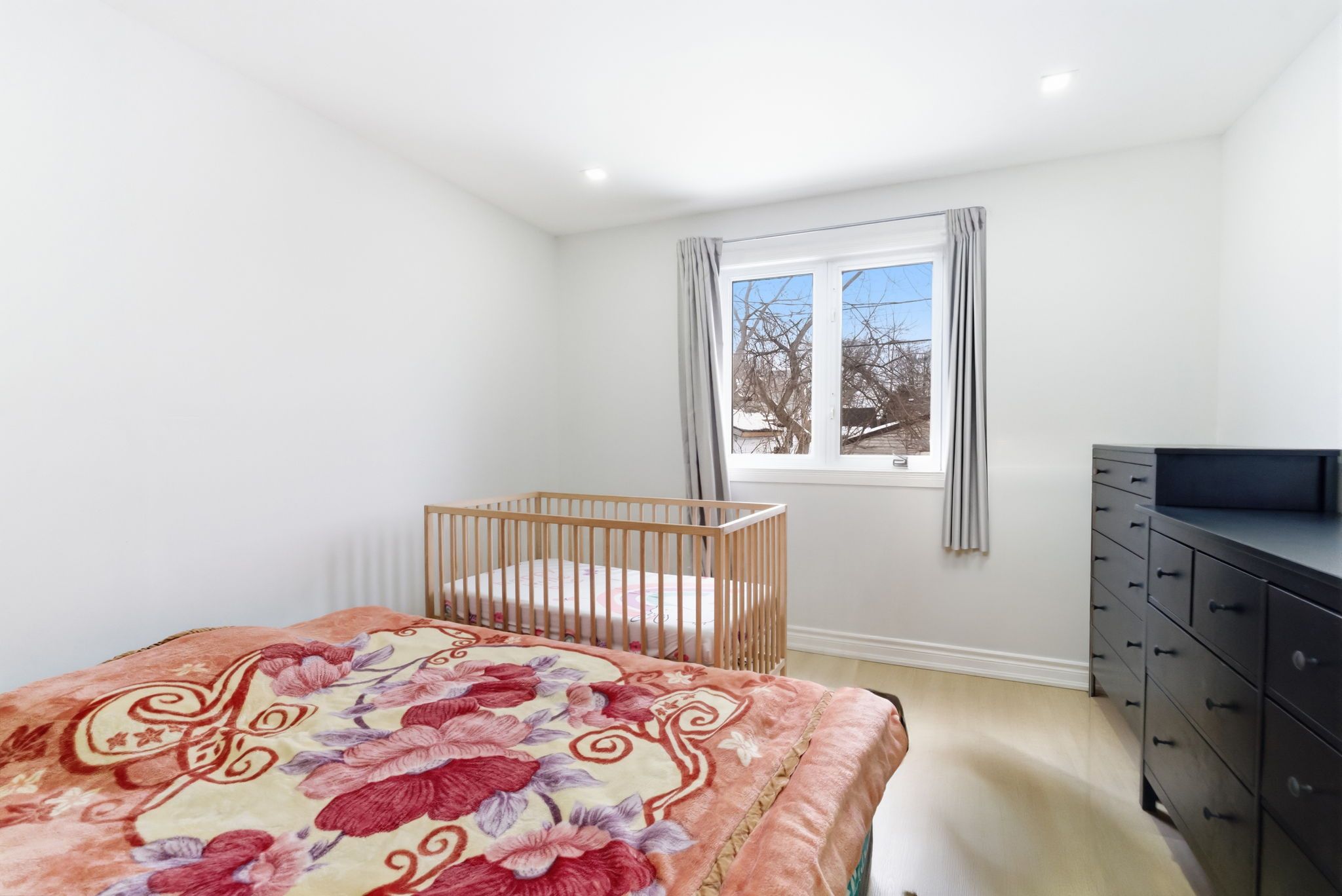 • Spacious backyard surrounded by mature trees, perfect for relaxing and gardening.