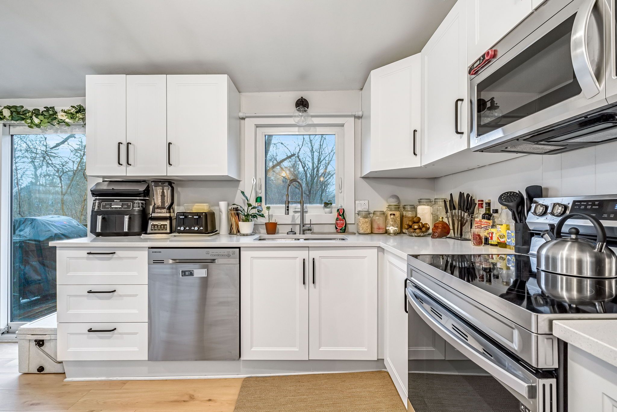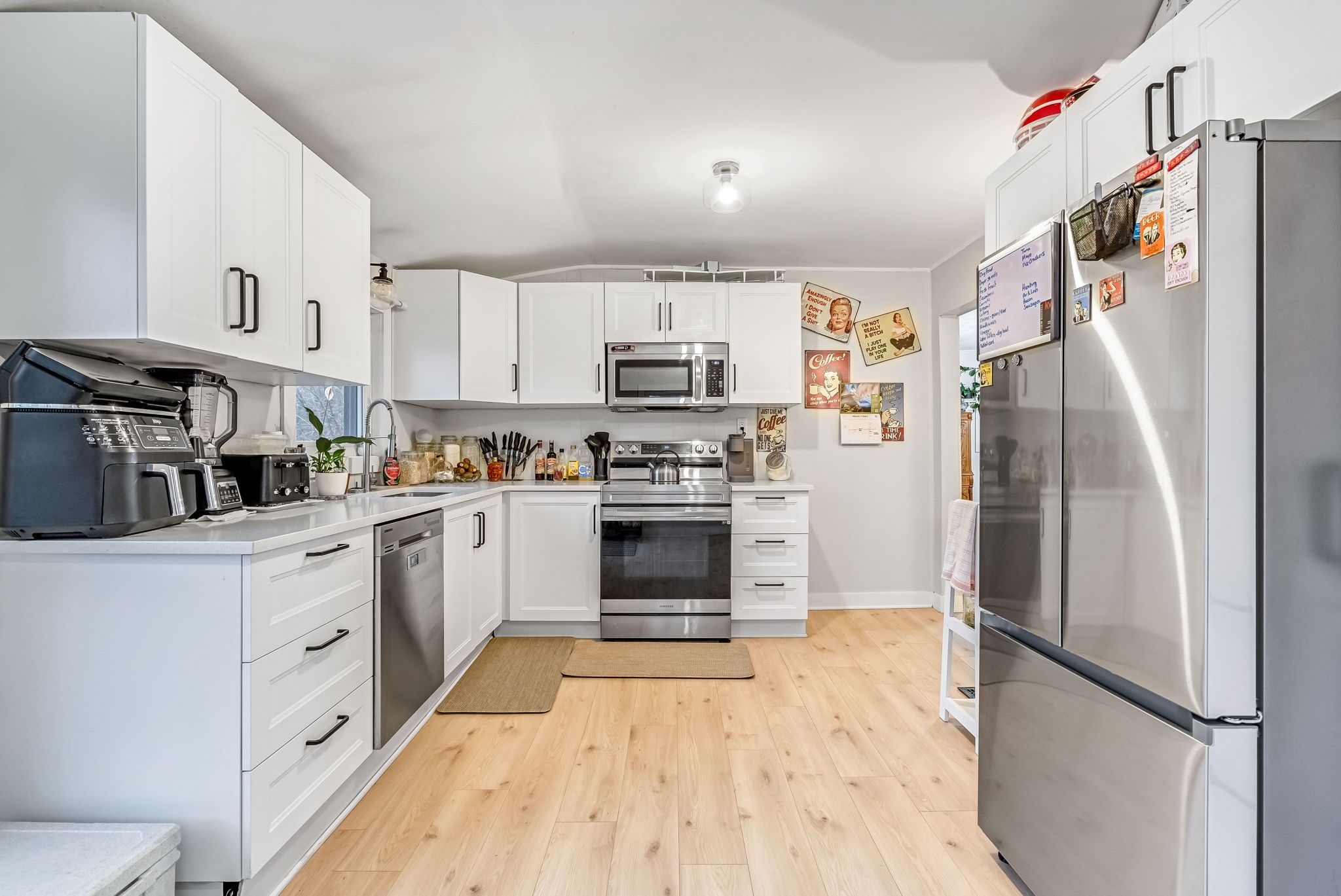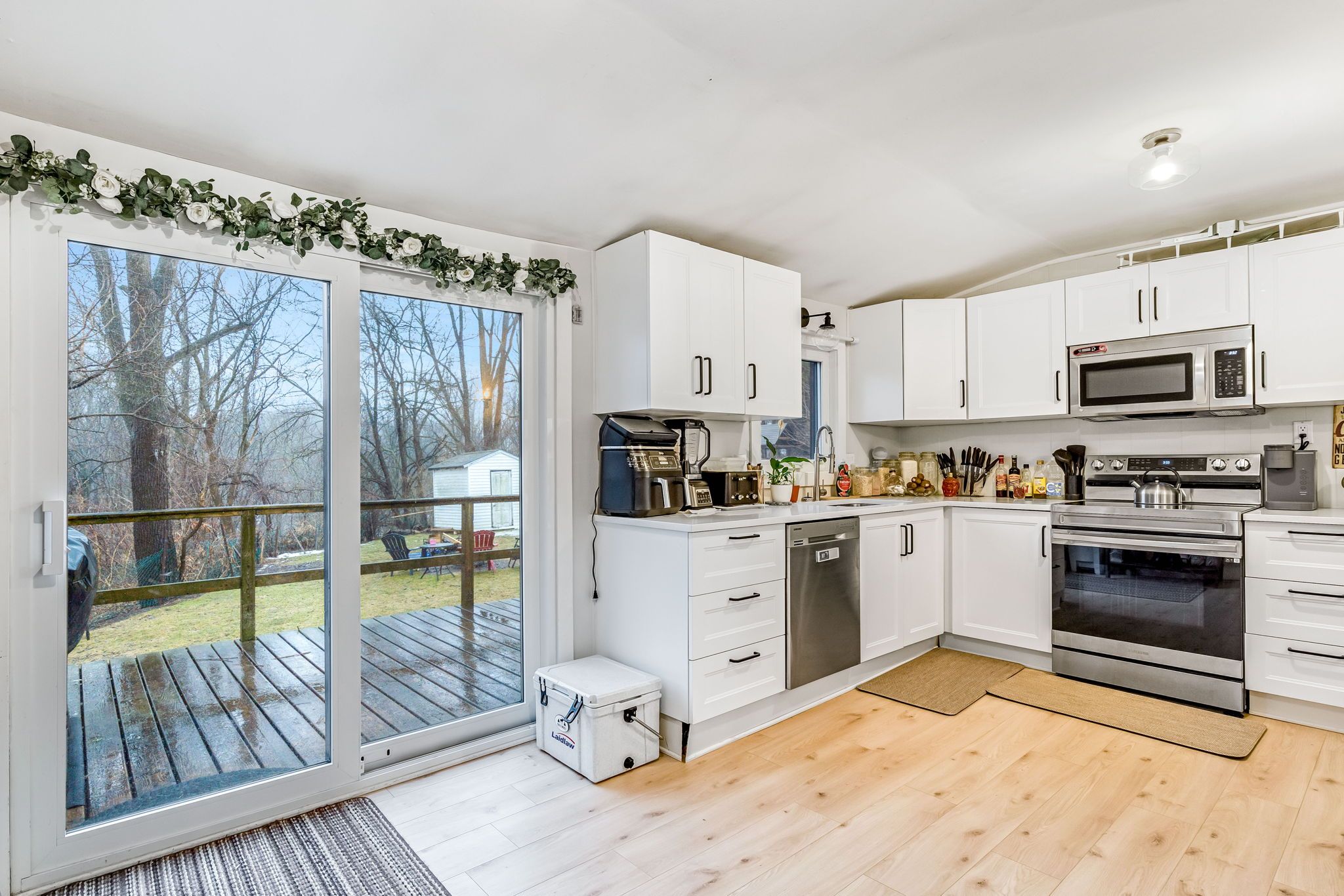Set on a rare, just under 1 acre wooded ravine lot within the city, this 3-bedroom bungalow offers approximately 1,200 sq. Ft. Of finished living space and a setting that's hard to find at this price point. Major improvements were completed in 2022, including board & batten siding, windows, exterior doors, soffit, fascia and eavestroughs. The interior was also updated with a modern kitchen featuring quartz countertops, refreshed bathroom, flooring and lighting. Central air was added in 2023. The home also features bonus loft space, ideal for a home office, reading nook or additional living area. A private driveway accommodates up to three vehicles. The backyard offers generous usable space for entertaining, kids or pets, before extending into a mature wooded ravine that provides exceptional privacy and a peaceful natural backdrop. Regular visits from deer and local wildlife add to the unique setting. Enjoy quiet mornings on the deck overlooking the trees, all just minutes from amenities. A unique opportunity to secure space, privacy and value within city limits.