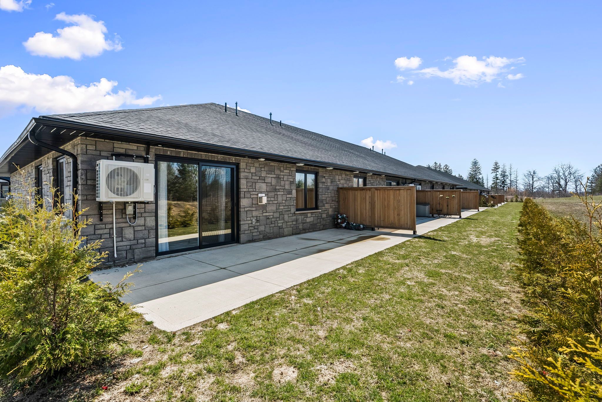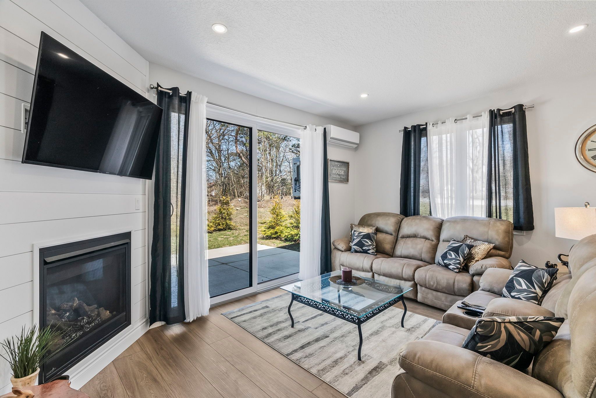 Welcome to carefree living in this impressive life lease end unit, located in a quiet and friendly adult community in the charming town of chesley. Built in 2022, this home showcases exceptional workmanship and high-end finishes throughout. Step inside and experience the warmth of vp flooring with in-floor heating, complemented by ductless air conditioning for year-round comfort. The open-concept living space features a kitchen with custom maple cabinetry, quartz countertops, and a large island with breakfast bar perfect for entertaining along with dining area and living room with gas fireplace. The spacious primary bedroom includes a walk-in closet and a luxurious ensuite bathroom. A convenient 4 pc. Bathroom/laundry combo and a second bedroom offer flexibility for guests or hobbies. Enjoy the ease of an attached garage lined with trusscore, and say goodbye to outdoor chores as all exterior maintenance, snow removal, and lawn care are taken care of. Monthly fee (2024) $371. 70. This is more than a home it's a lifestyle. Don't miss your chance to join this welcoming community in a beautiful, modern setting.