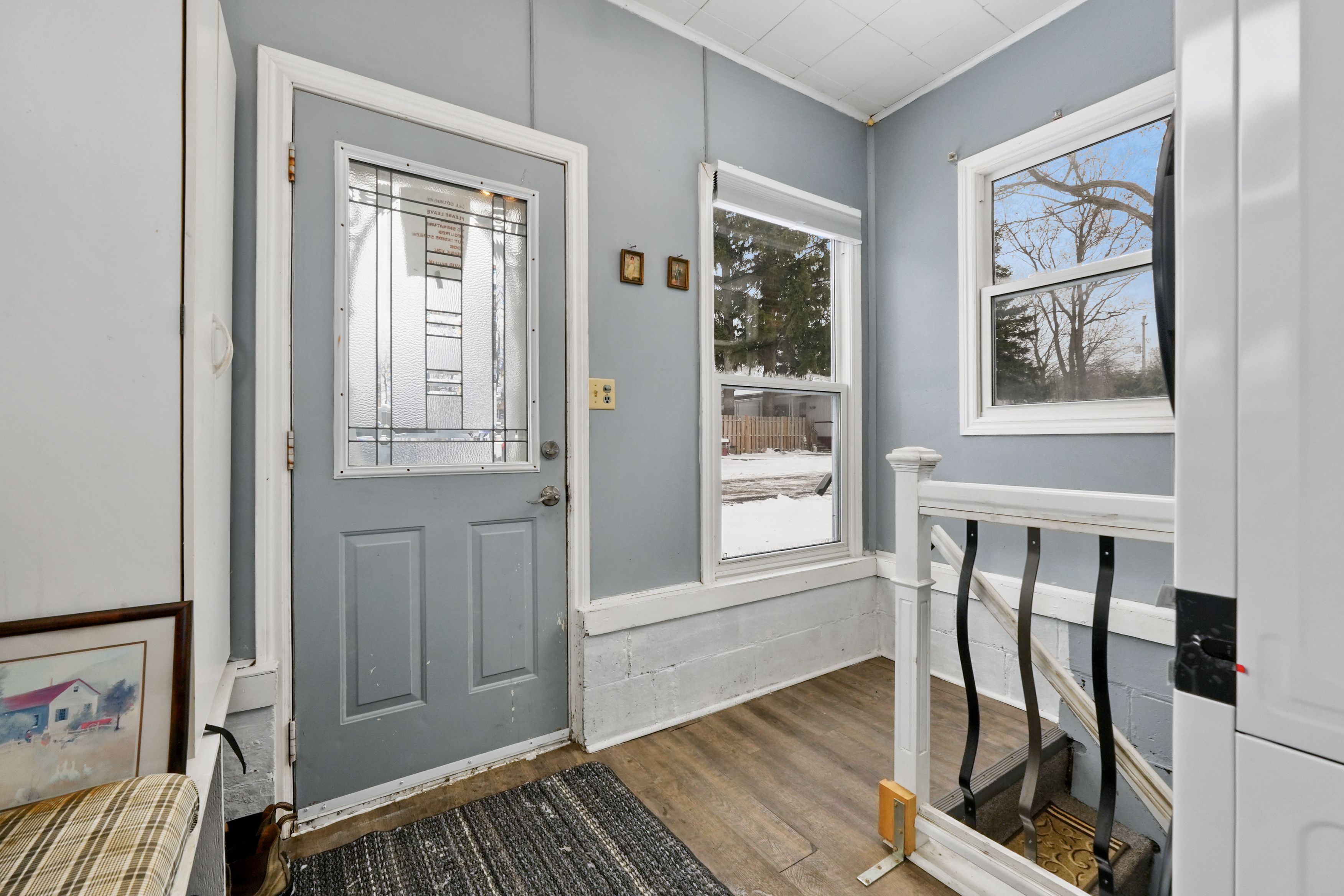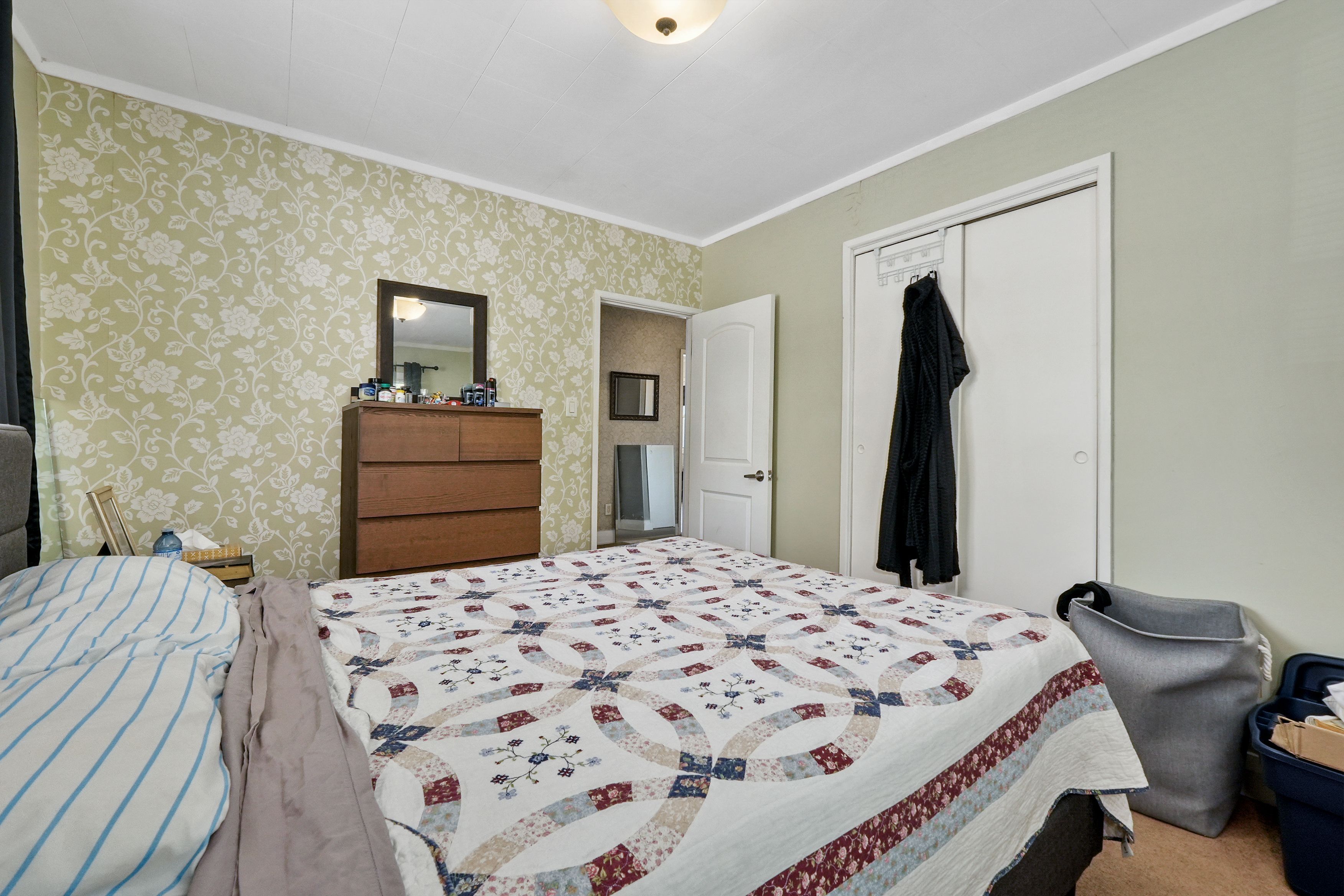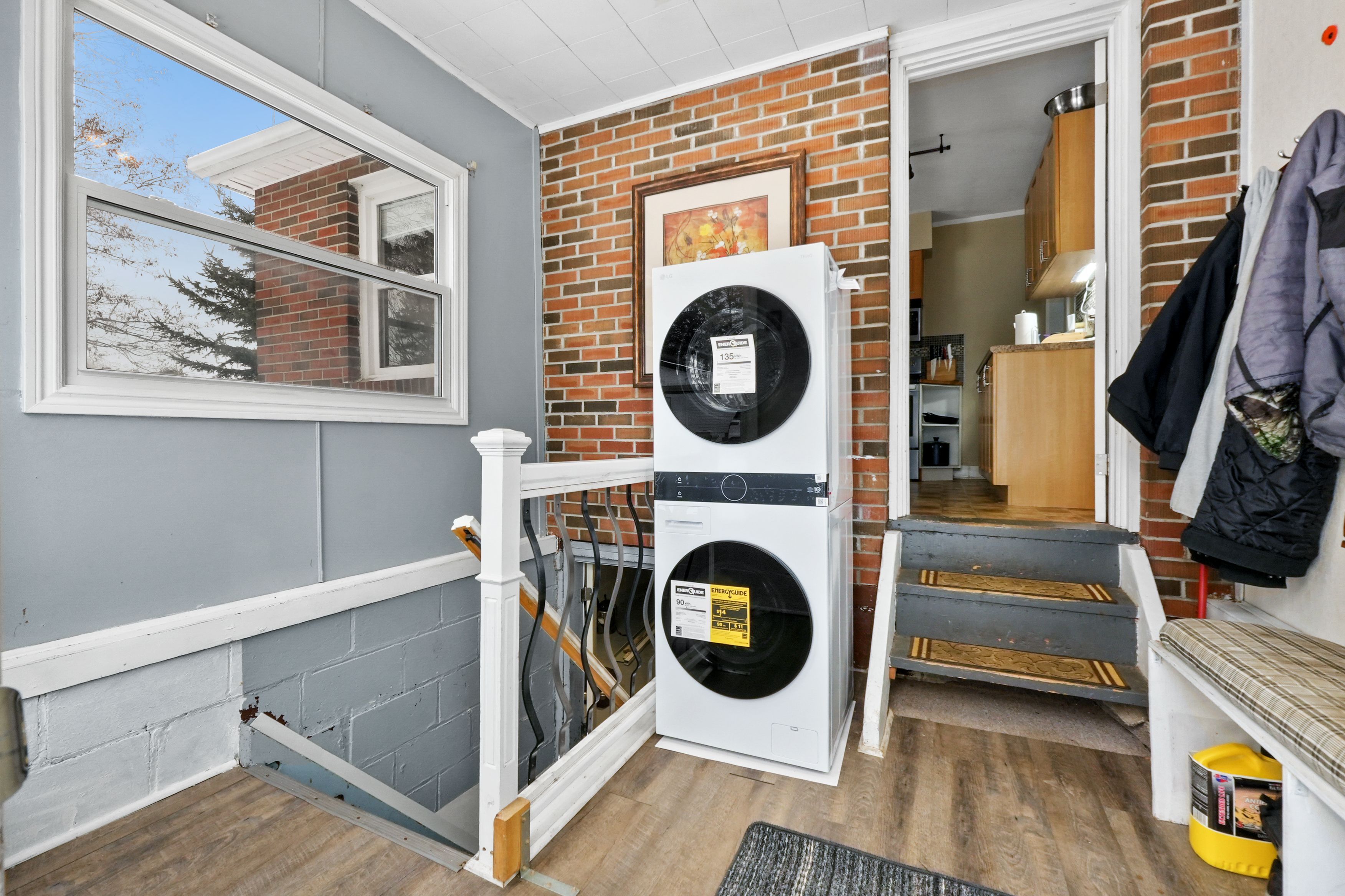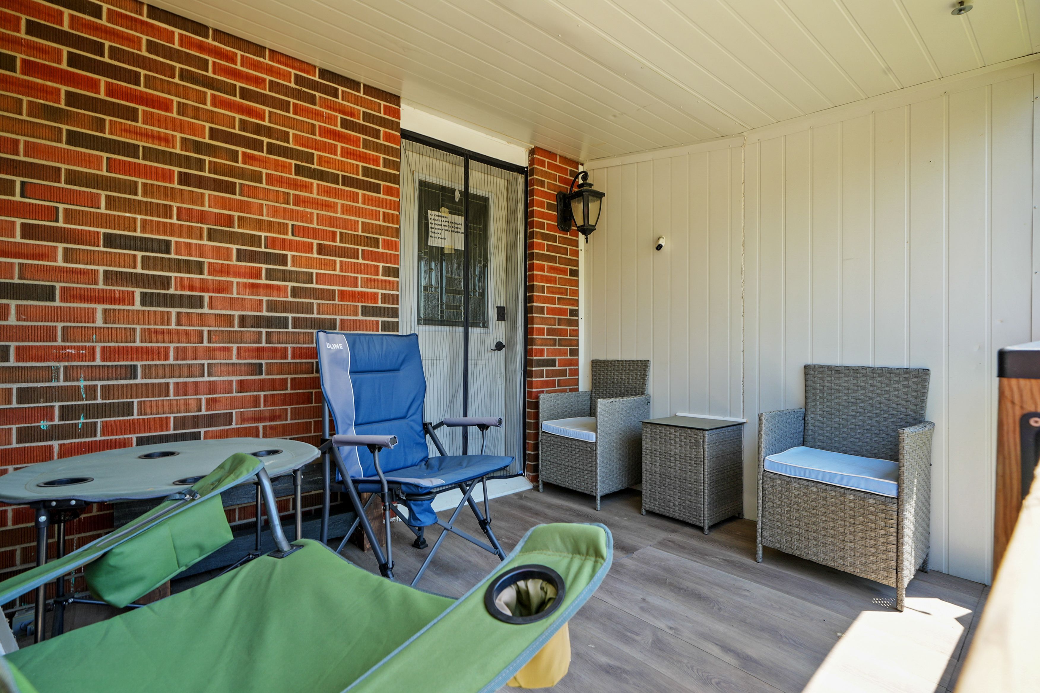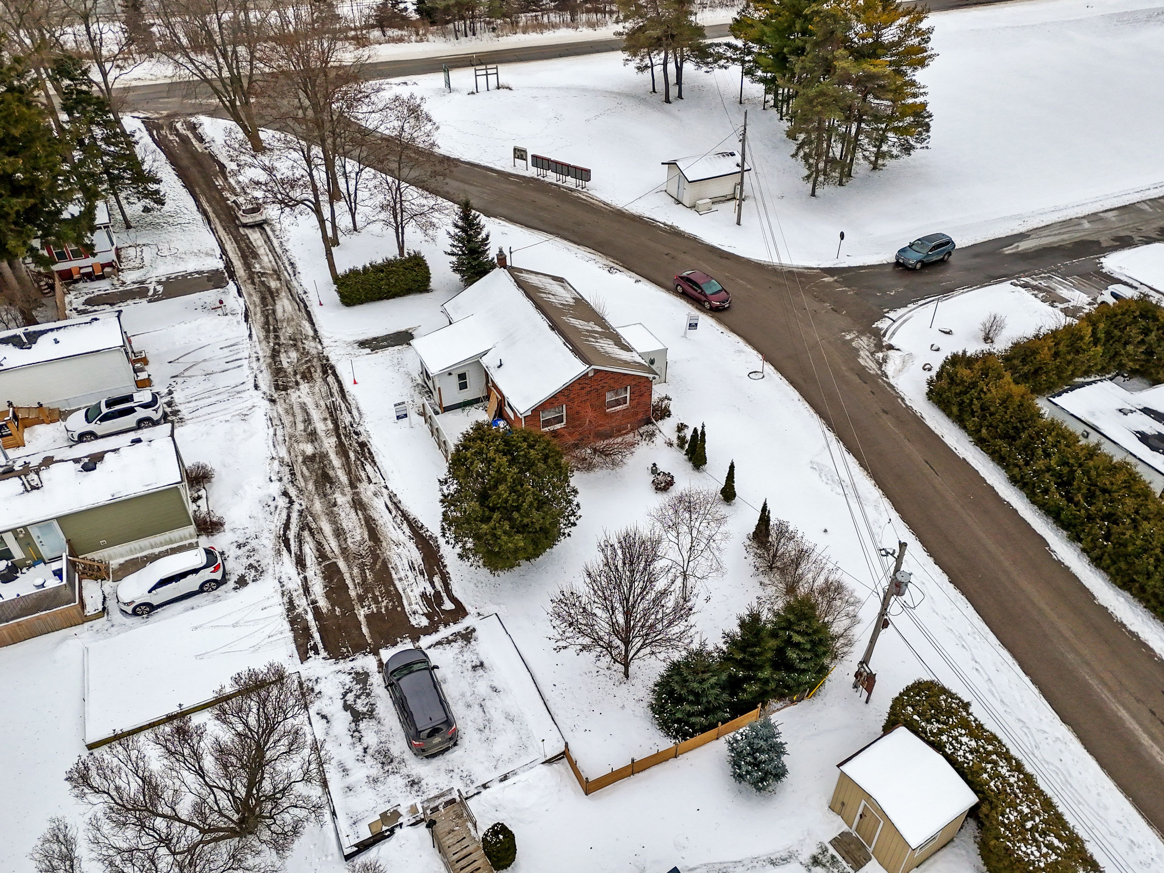 Affordable one-level brick bungalow located in year-round lougheed park. This 2-bedroom home offers practical living with a covered front entrance that doubles as a mudroom with handy storage options. The bright eat-in kitchen features stainless steel appliances, including a built-in microwave, along with a tile backsplash, ample cabinetry, and generous counter space. A carpet-free living room with large windows adds warmth and comfort. The main level features two well-sized bedrooms and a full bathroom, while the lower level offers ample storage and potential for future finished space. Outdoors, enjoy both a covered back porch lounge area and a private open deck surrounded by mature trees and green space. Just minutes from local amenities and with convenient access to the 401, this low-maintenance home is an excellent downsizing opportunity in cobourg.