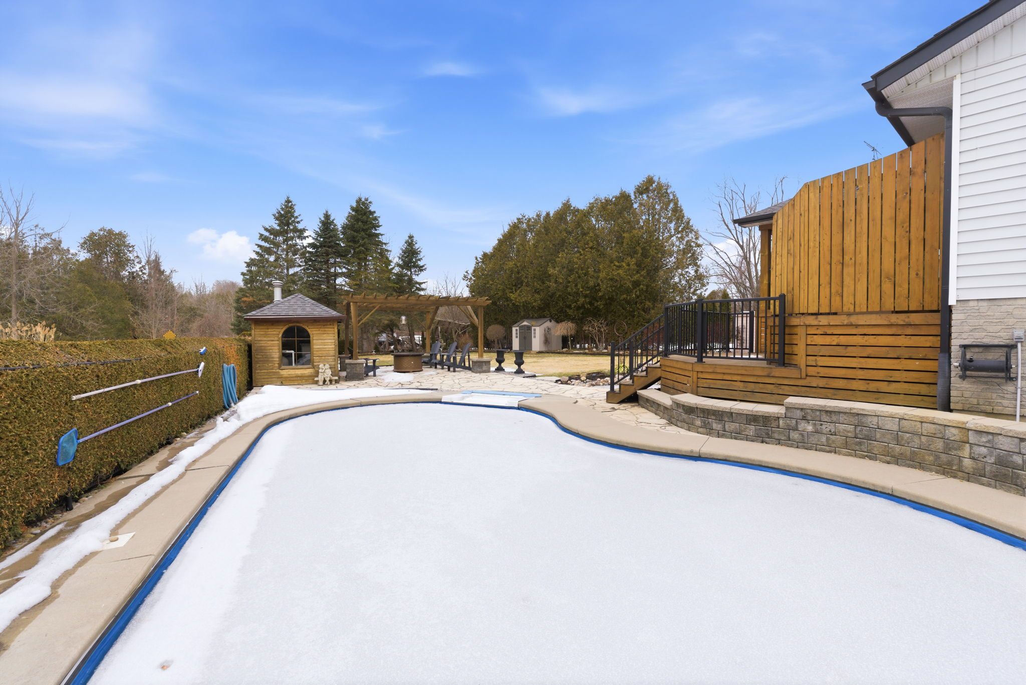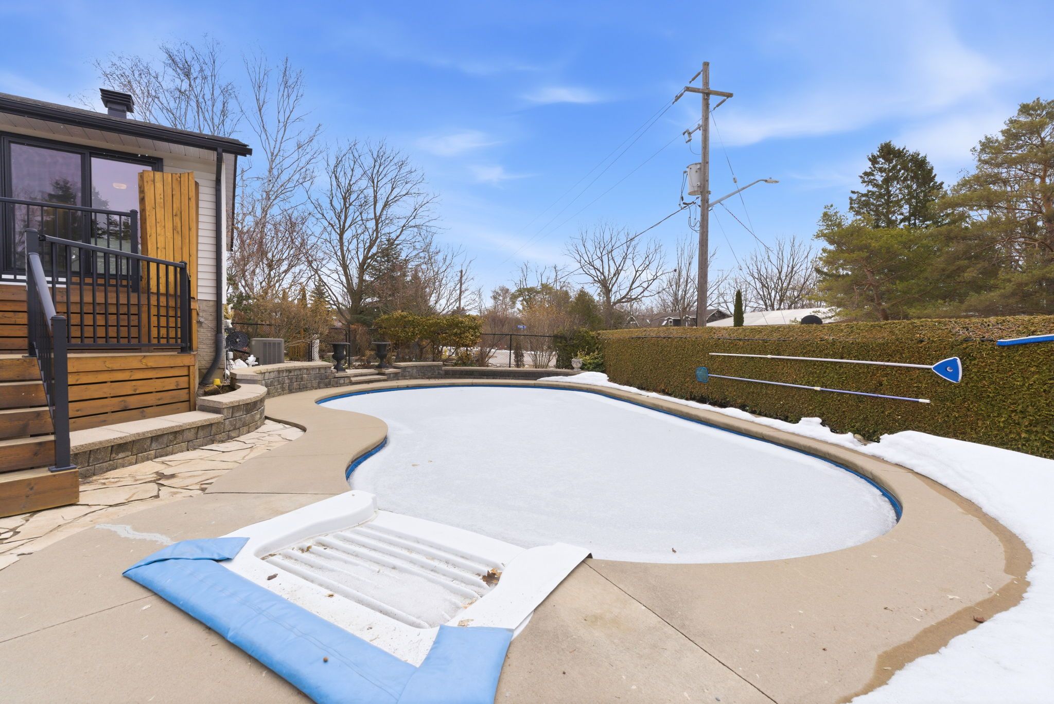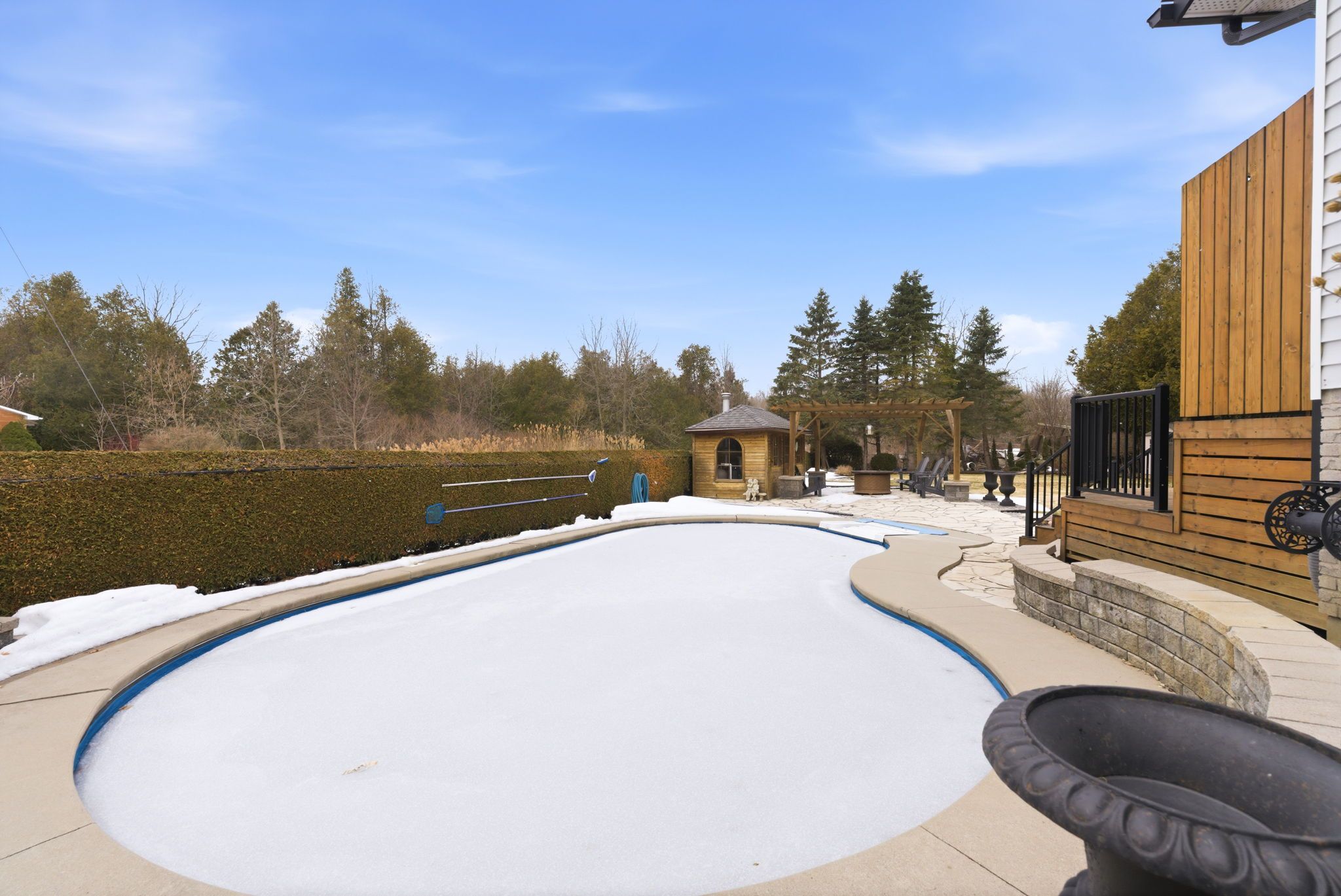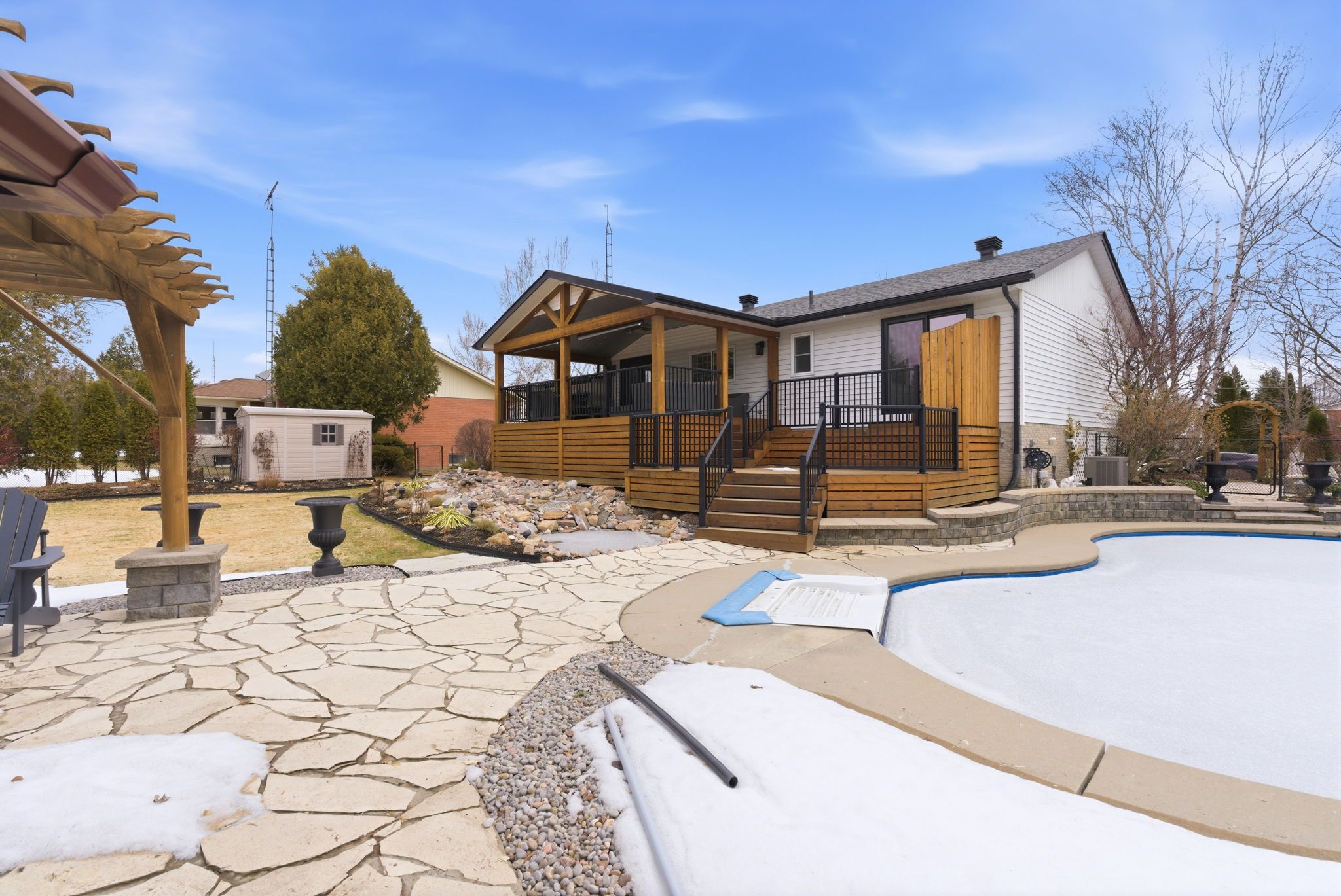 Welcome home to your greenbank retreat! This charming 4-bedroom bungalow sits proudly on a spacious corner lot in one of greenbank's most peaceful family neighbourhoods. Designed with comfort and connection in mind, it offers bright open-concept living, thoughtful updates, and a truly stunning backyard oasis. Step outside and discover a private paradise, a sparkling in-ground pool surrounded by lush perennial gardens, a soothing custom-built stream, a multi-tier covered deck, and cozy patio spaces perfect for family barbecues, relaxing afternoons, or evenings by the fire. Every detail of this yard was made for enjoyment and togetherness. Inside, the open main level features a welcoming living and dining area filled with natural light, along with a stylish kitchen featuring quartz counters, modern finishes, and a centre island that's perfect for family meals or entertaining. The primary bedroom offers direct access to the deck and pool, creating the perfect blend of indoor and outdoor living. The finished lower level adds even more versatility with a comfortable family room, gas fireplace, full bathroom, and extra space ideal for guests, recreation, or a home gym. With beautiful landscaping, a private setting, and close proximity to schools, parks, and trails, this home offers the best of country charm and small-town community, a place where families can gather, grow, and make lasting memories. Note - property is serviced by town well.