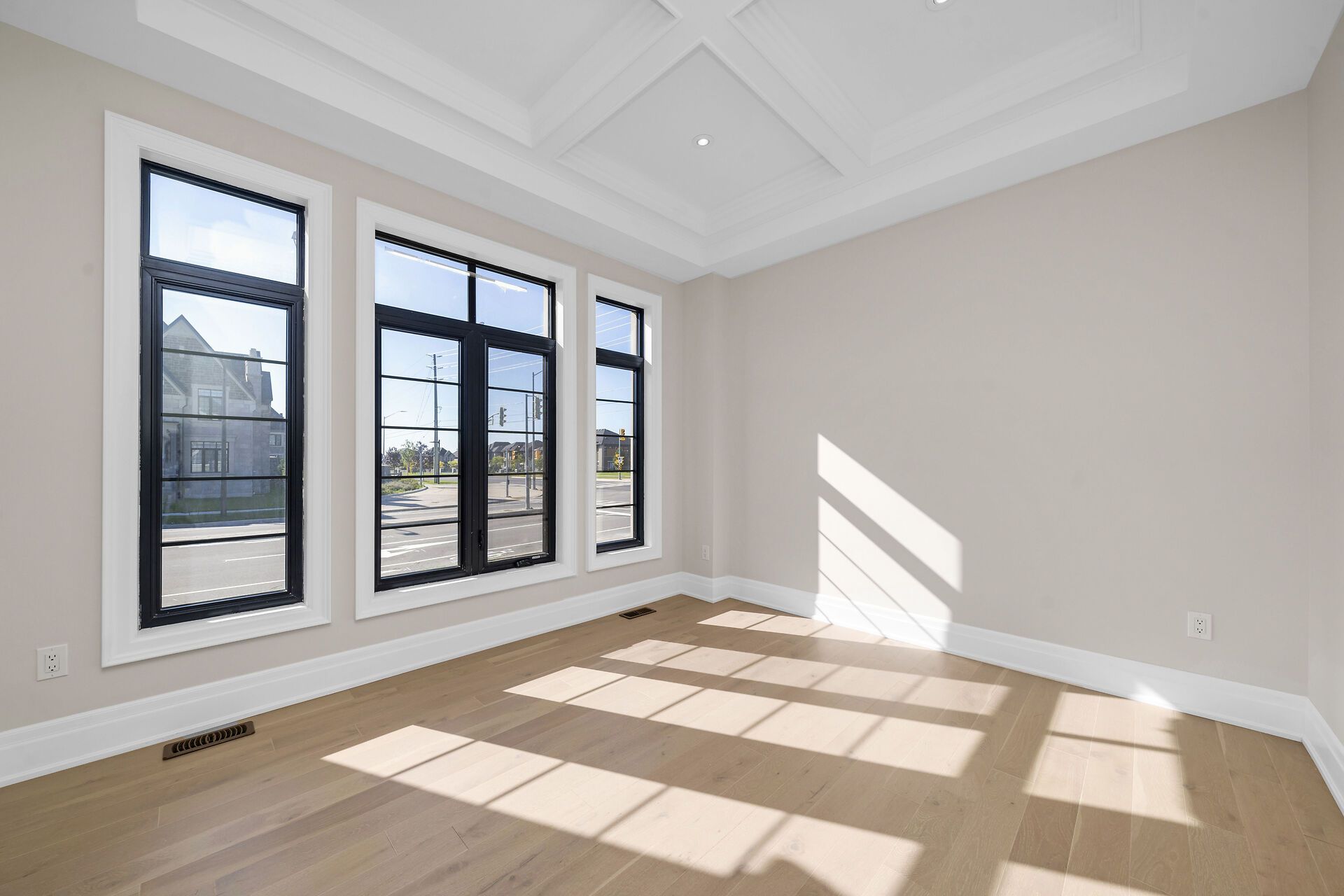 This exquisite new build by gold park homes sits on a beautiful sun-filled corner lot of 50 by 113 feet in a family-friendly community close to parks, schools, trails, nature preserves, shops, and the charm of kleinburg. The home totals 4500 square feet with abundant natural light from oversized windows and glass doors, plus soaring 10-foot ceilings on the main level. Layout includes four bedrooms, five bathrooms, and a second-floor laundry room. Substantial investments in upgrades feature intricate coffered ceilings, bespoke custom built-ins and cabinetry, a seamless integrated breakfast area, and luxurious upgraded plumbing in the ensuites. Elegant rear covered loggia and spacious tandem three-car garage with oversized eight-foot doors. Hardwood throughout, potlights, raised archways and doors, covered concrete loggia, stone countertops throughout, stained oak staircase, upgraded window trim. No finished basement.