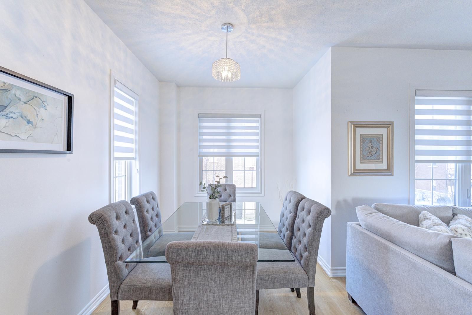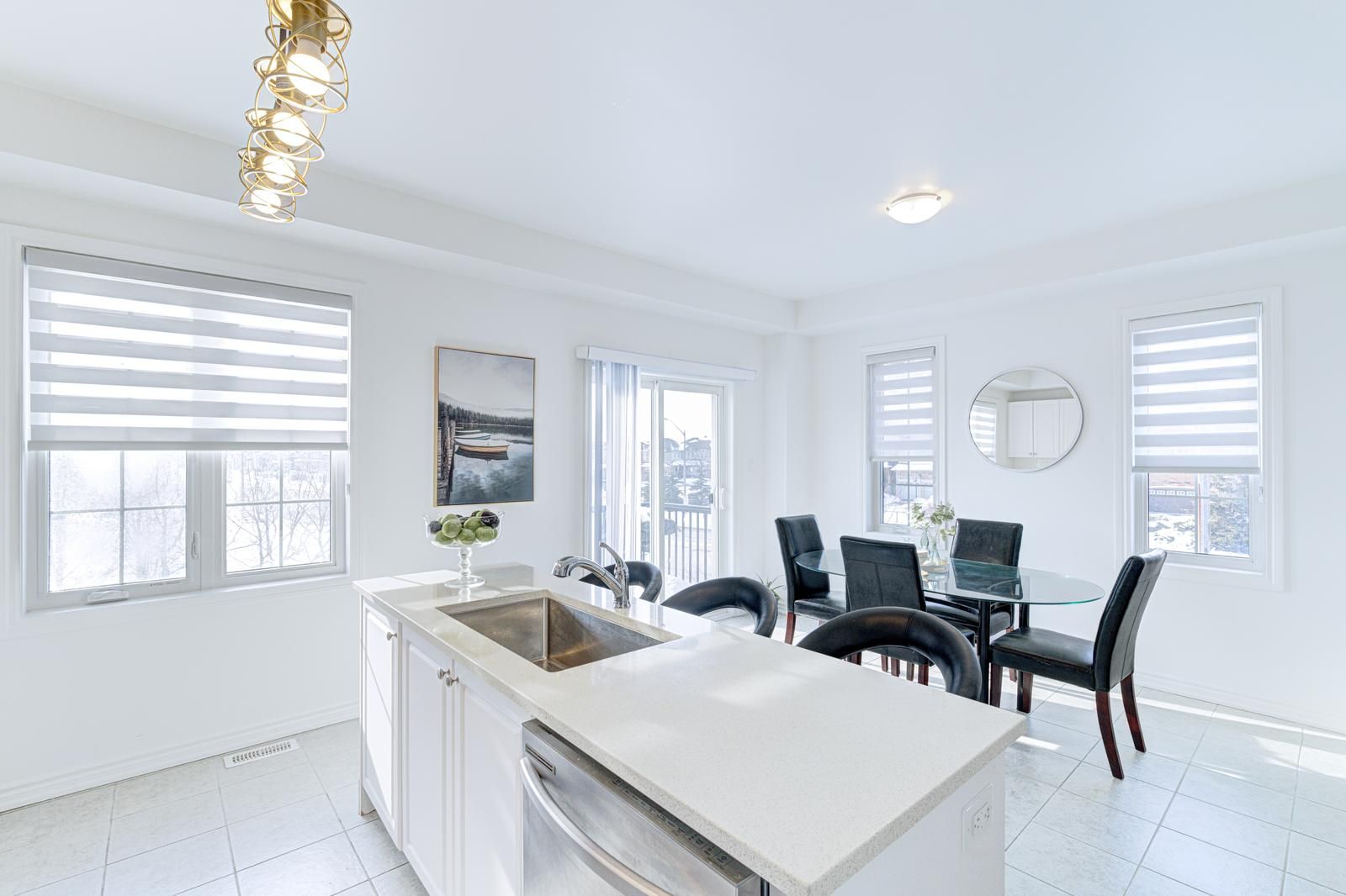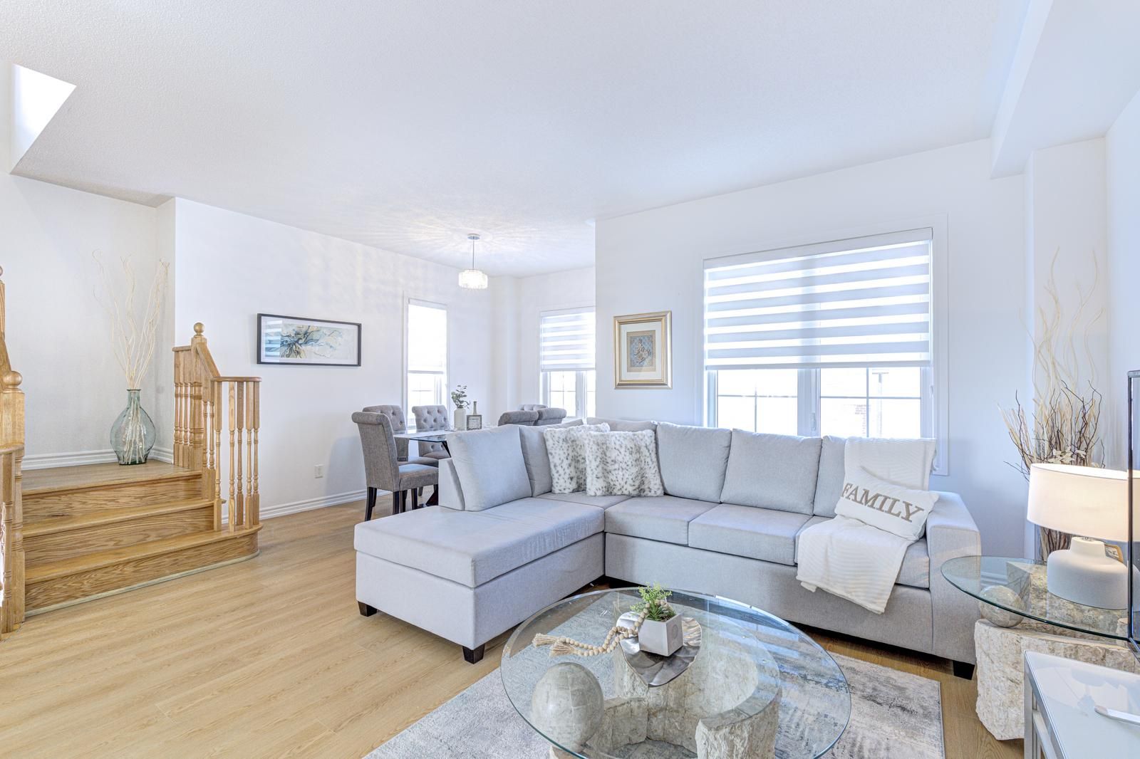• Bright open-concept living and dining area with beautiful pond views.