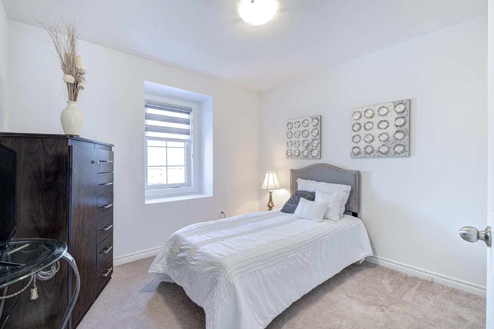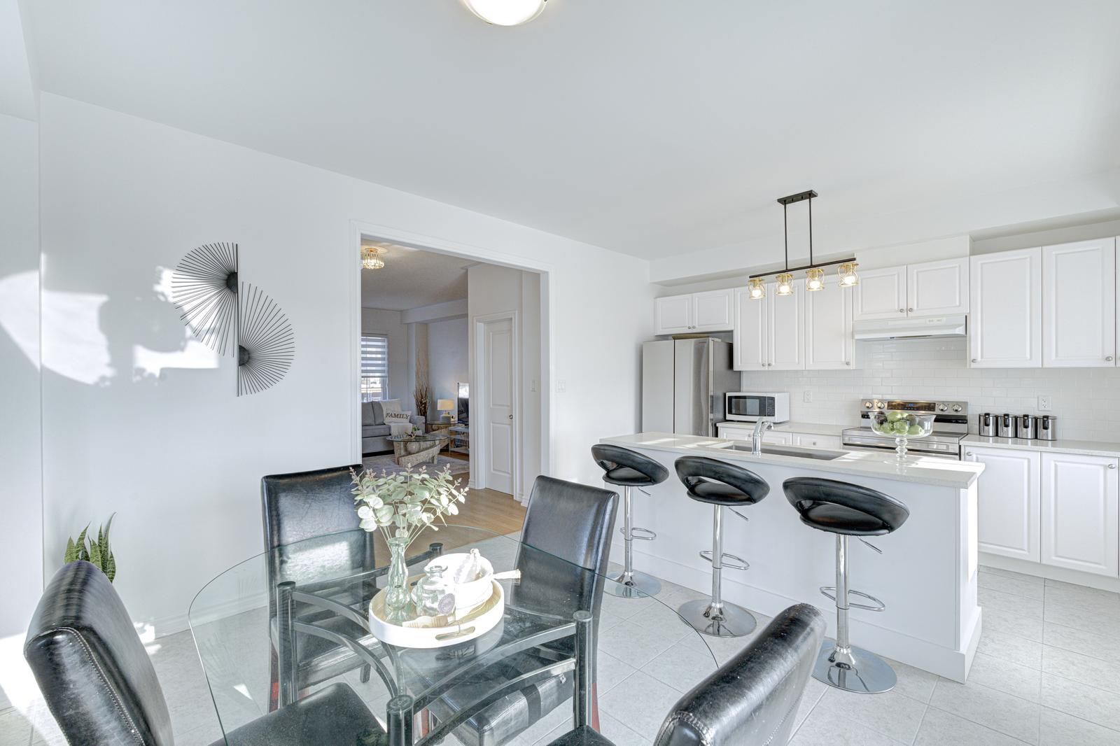 Immaculately maintained corner-unit townhome reflecting exceptional pride of ownership, offering over 2,300 sq. Ft. Of elegant, well-designed living space in a highly sought after location. Designed to feel like a semi-detached home, partially fenced, this residence overlooks a tranquil pond and a lush green space offering complete privacy. The main level features a welcoming foyer, a private bedroom with full washroom and laundry, a balcony, and access to a finished basement complete with a full kitchen, living area, and separate side entrance-ideal for extended family living or other uses as per ones needs. The second floor showcases a bright, open-concept living and dining area bathed in natural light, anchored by a modern kitchen with a centre island and a refined breakfast area overlooking scenic pond and trail views, with walk-out to a balcony. Soaring 9-ft ceilings enhance the home's airy and sophisticated feel. The third level offers three generously sized bedrooms and two full washrooms, including a serene primary retreat with a 4-pc ensuite, walk-in closet, and private balcony. Ideally located right next door to james potter public school and damatta park, and minutes to mount pleasant go station, jean augustine secondary school, shopping plazas, and everyday amenities. An exceptional opportunity for any buyer.