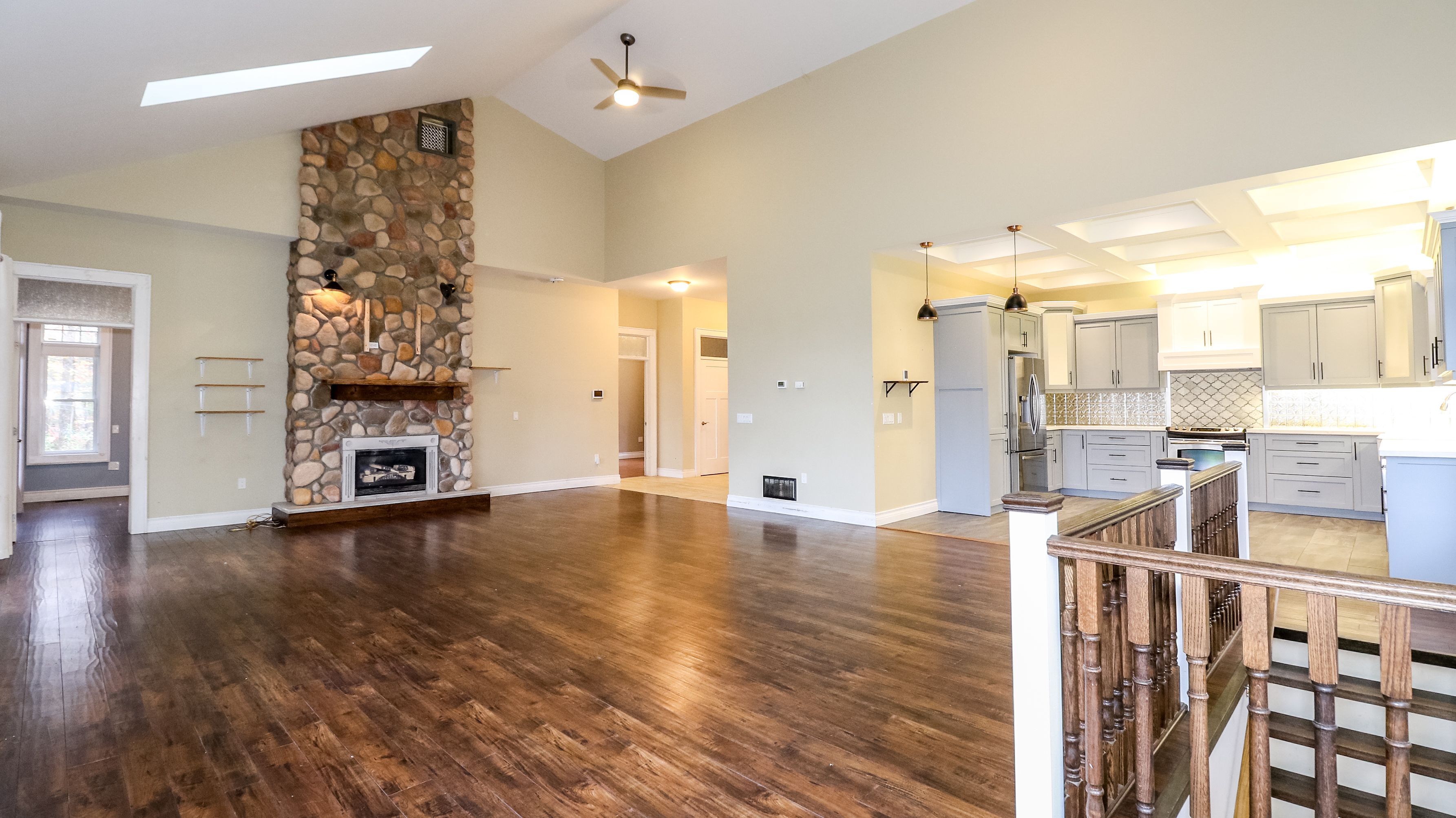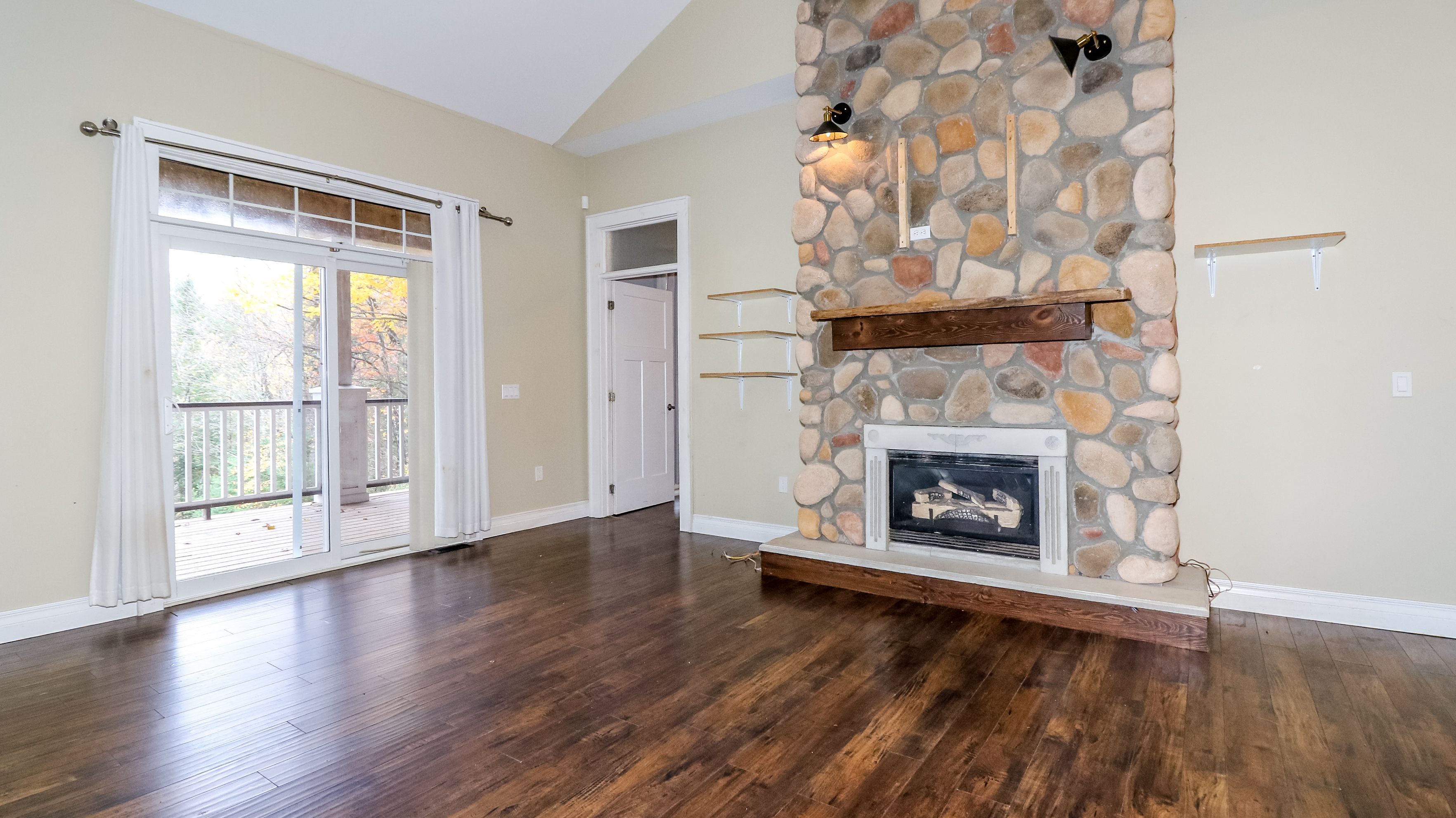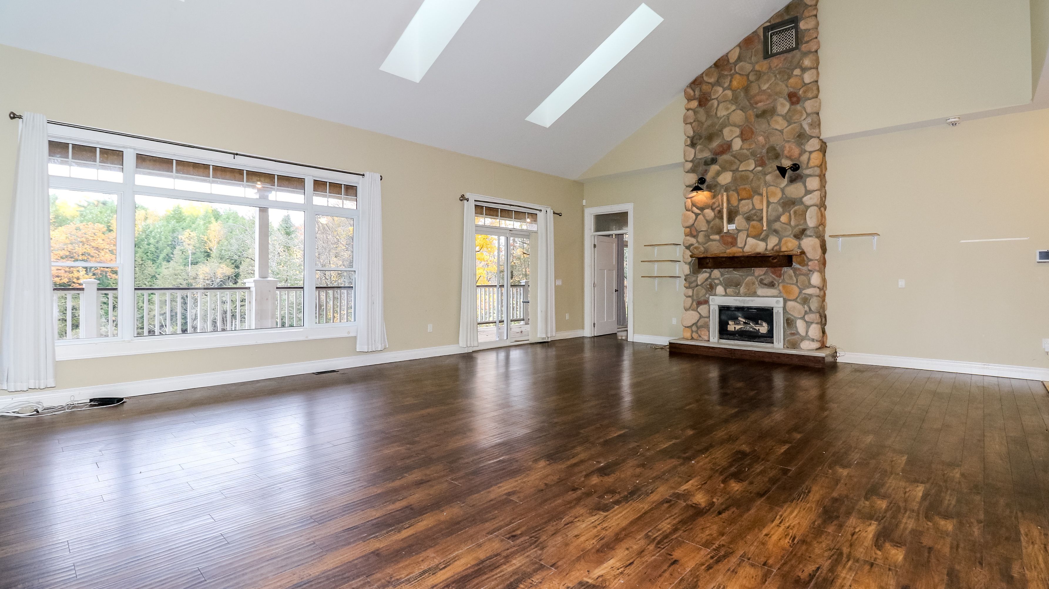 • Open concept main floor features great room with fireplace and deck access.