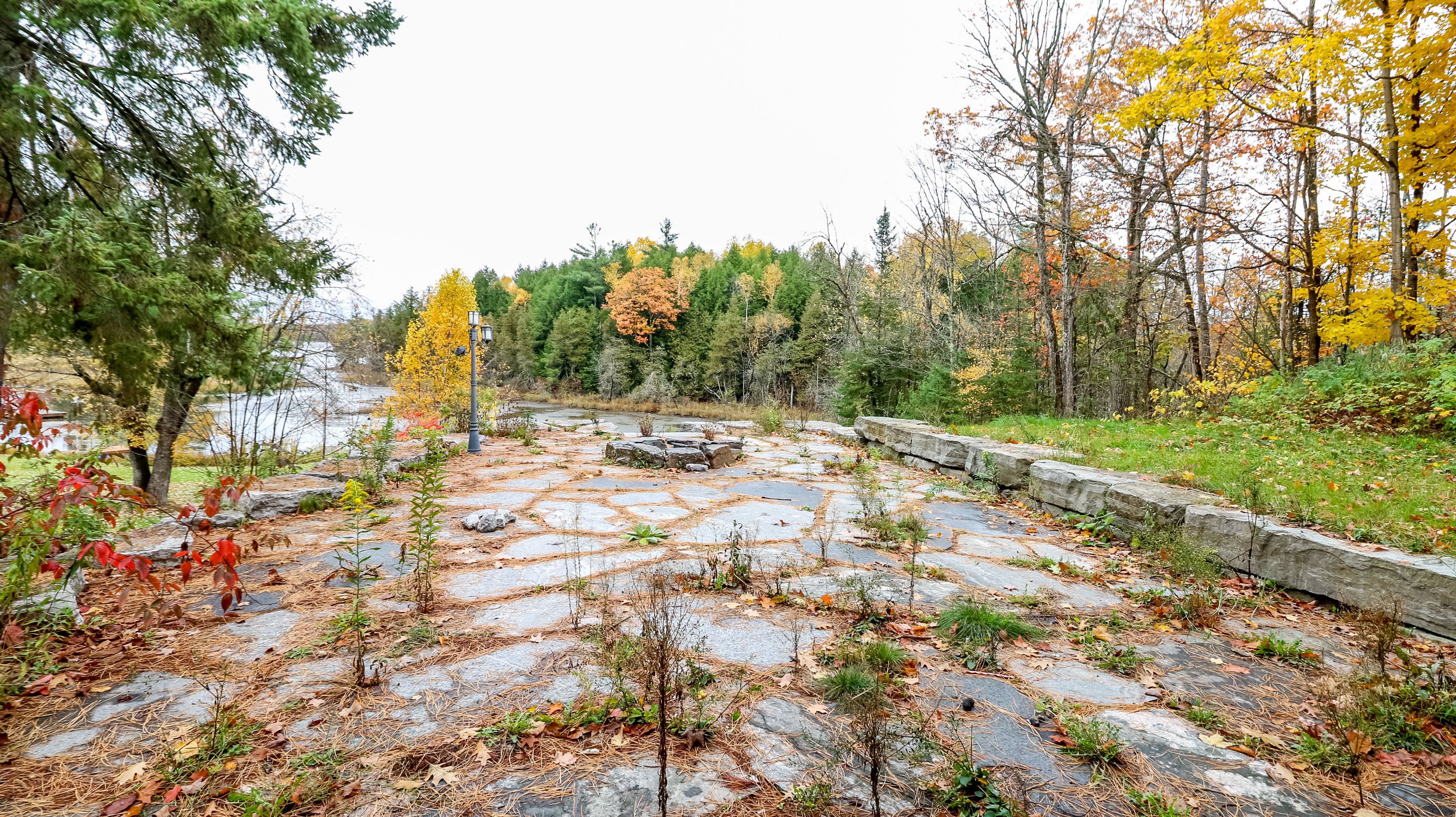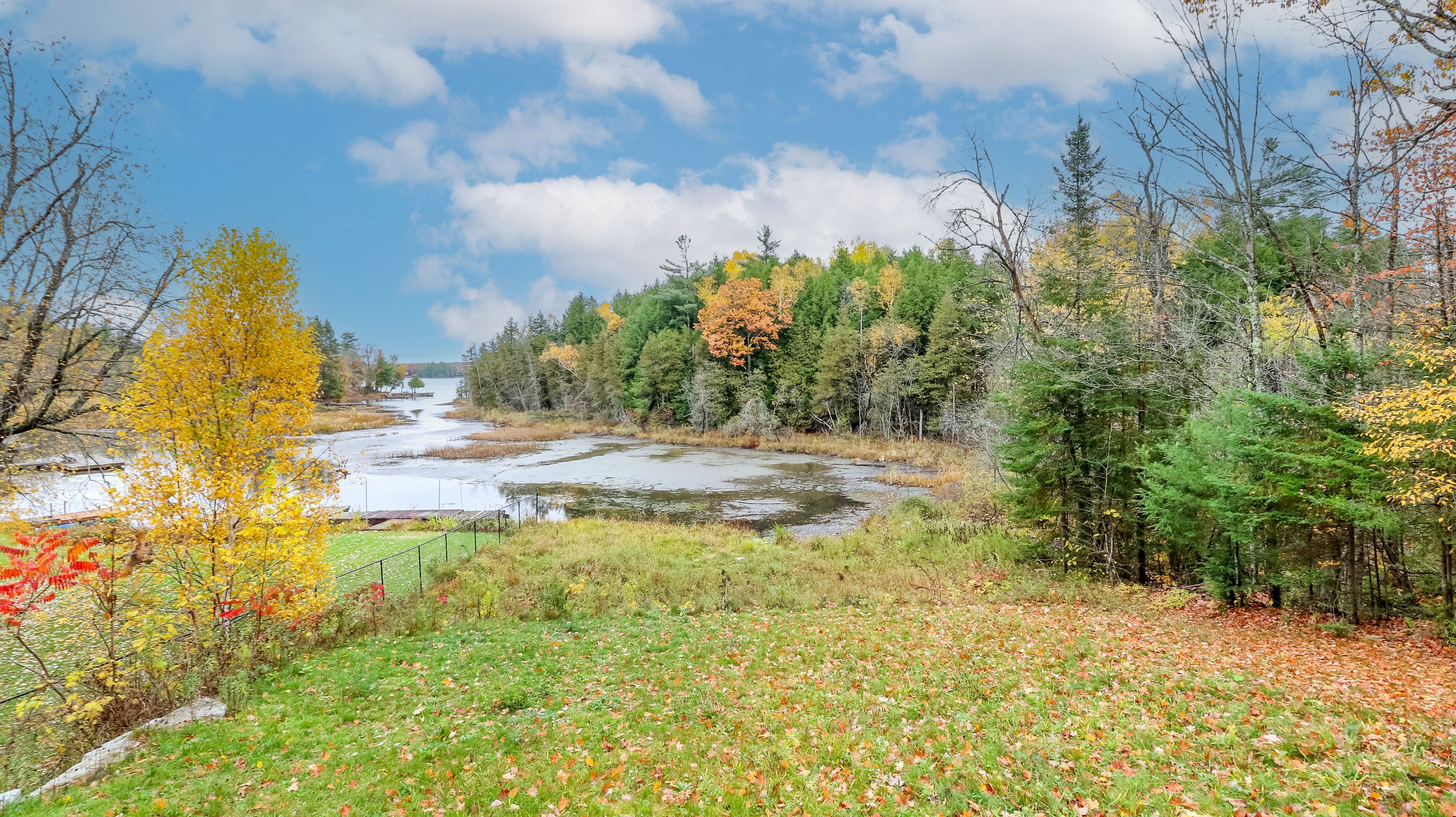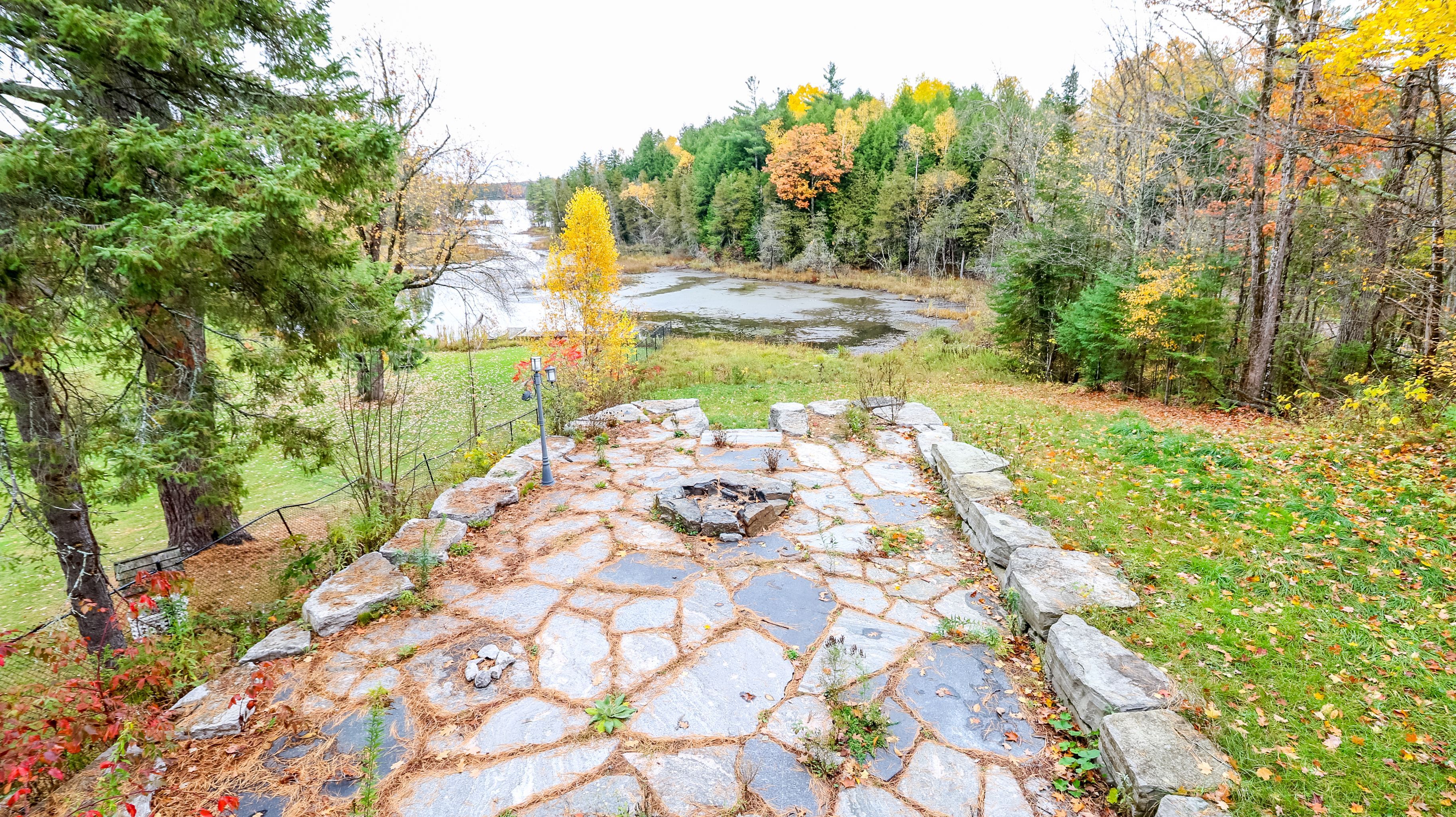 • Outdoor space includes flagstone patio, firepit, and 90 feet of waterfront.