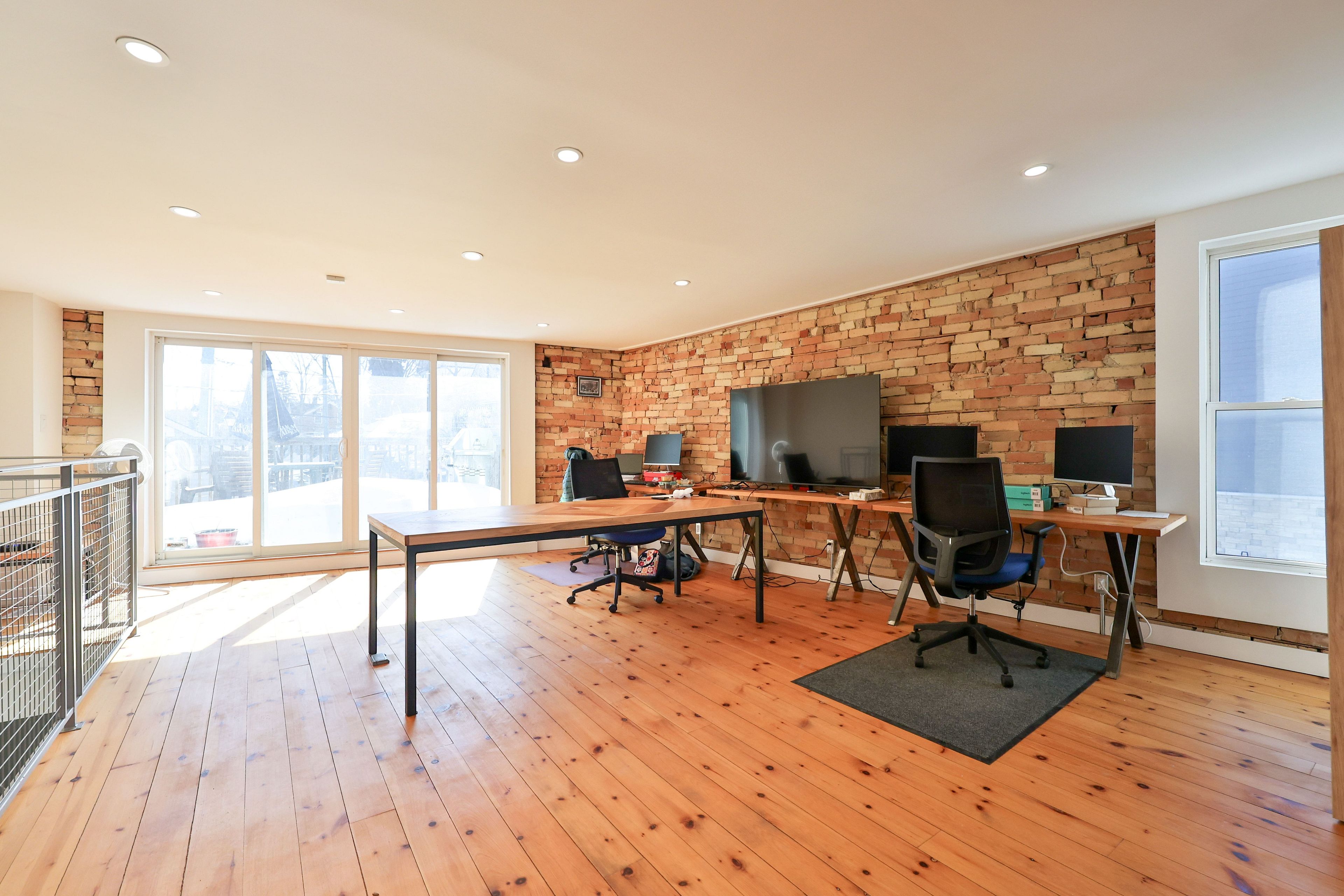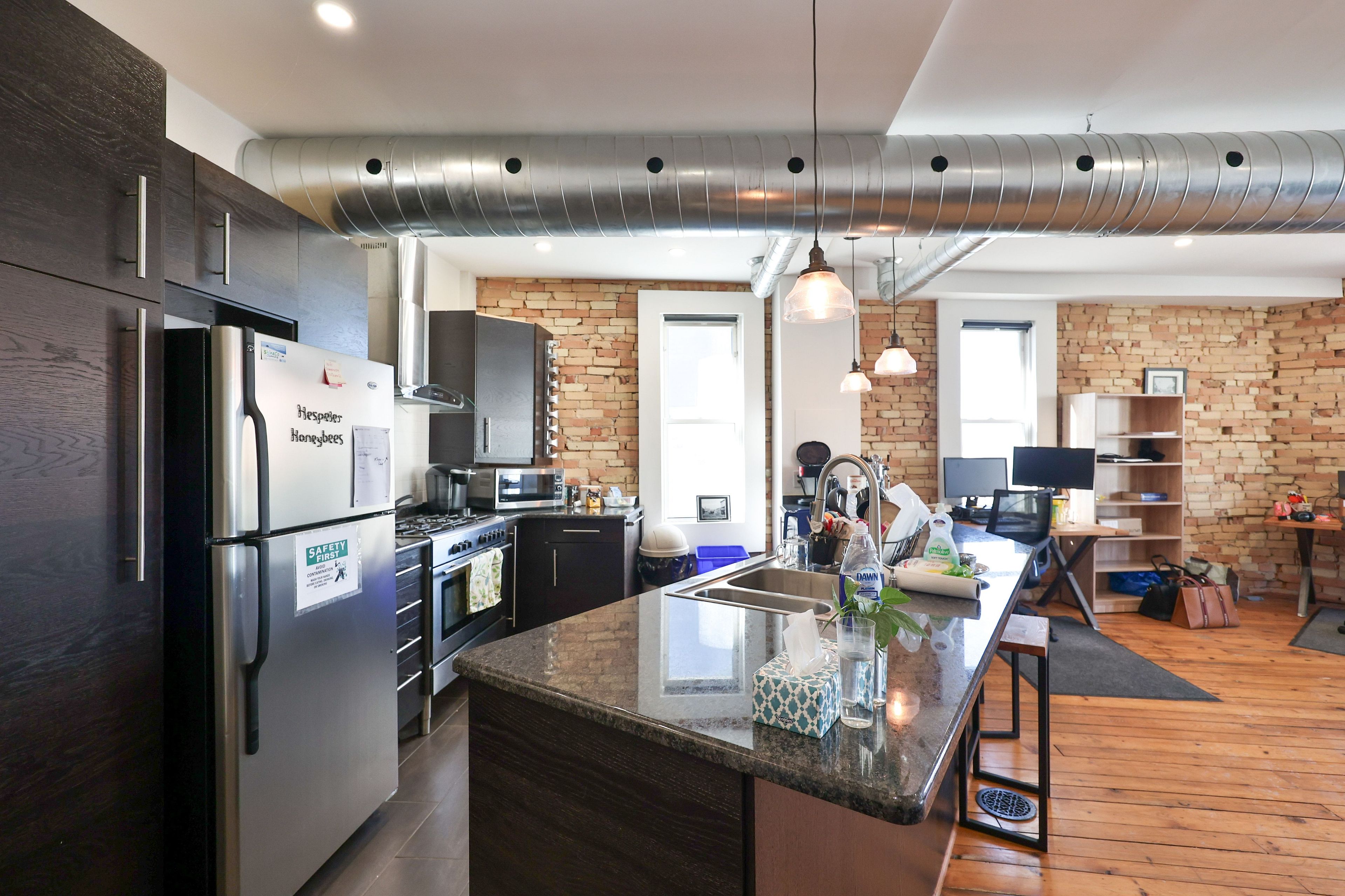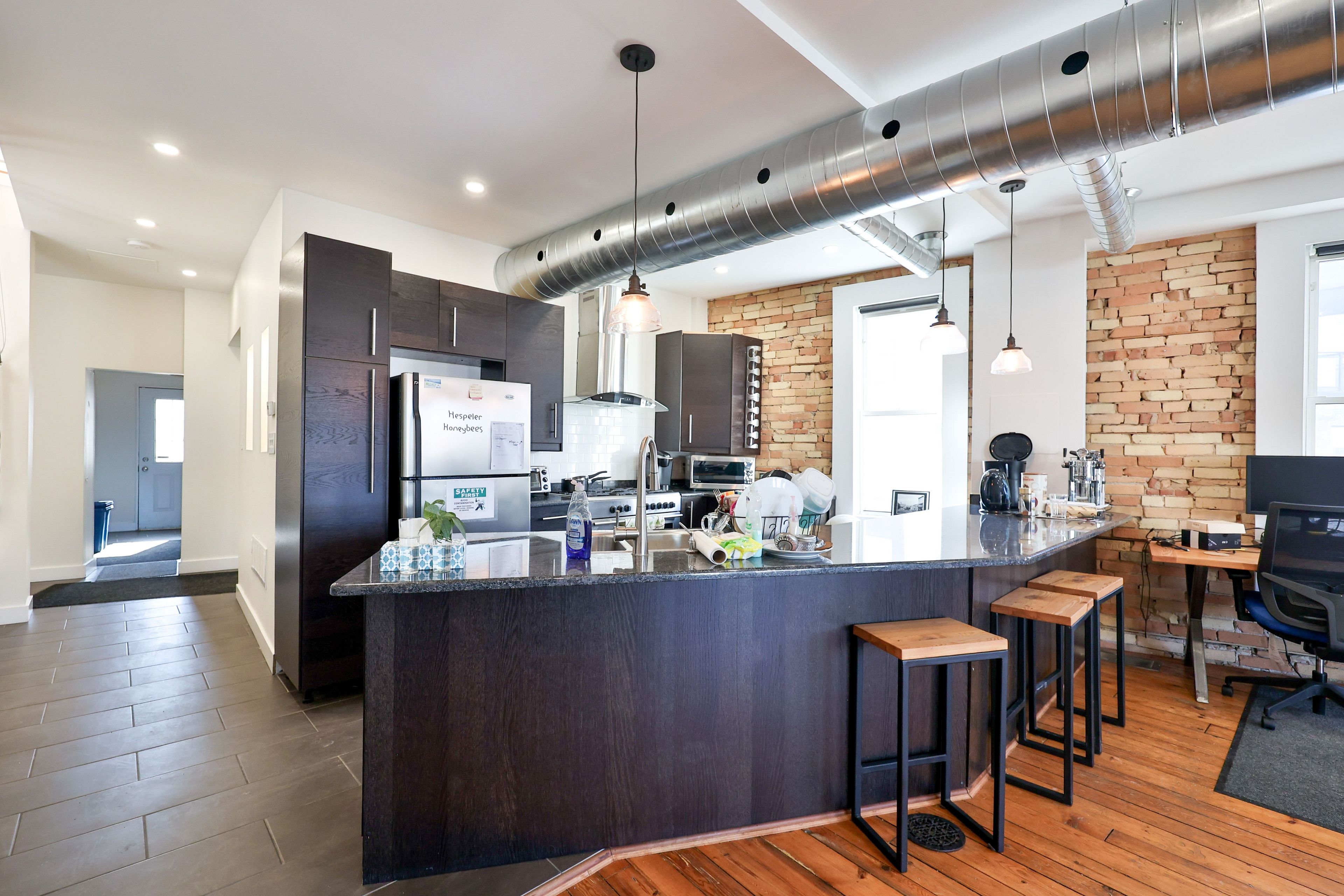 • Beautiful interior with hardwood floors and exposed brick features.