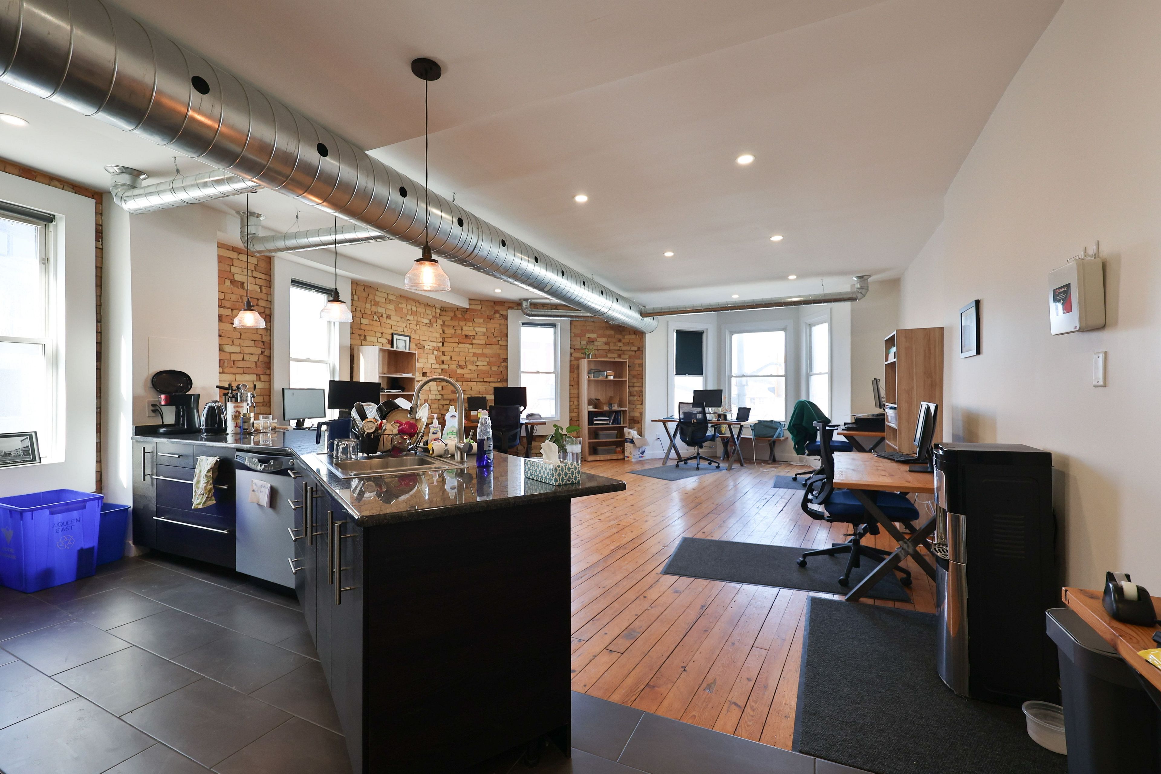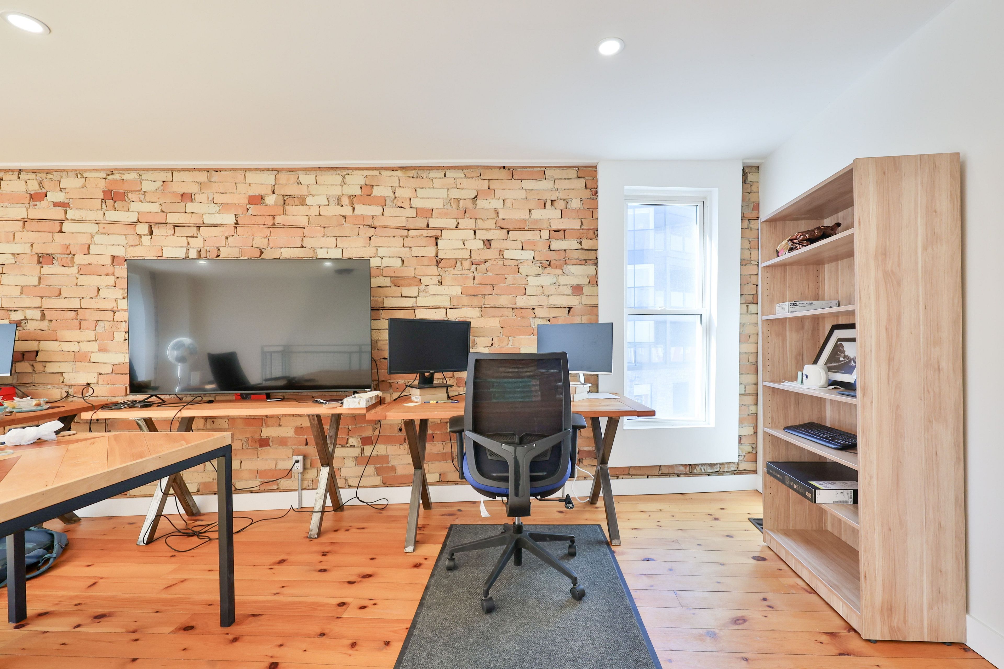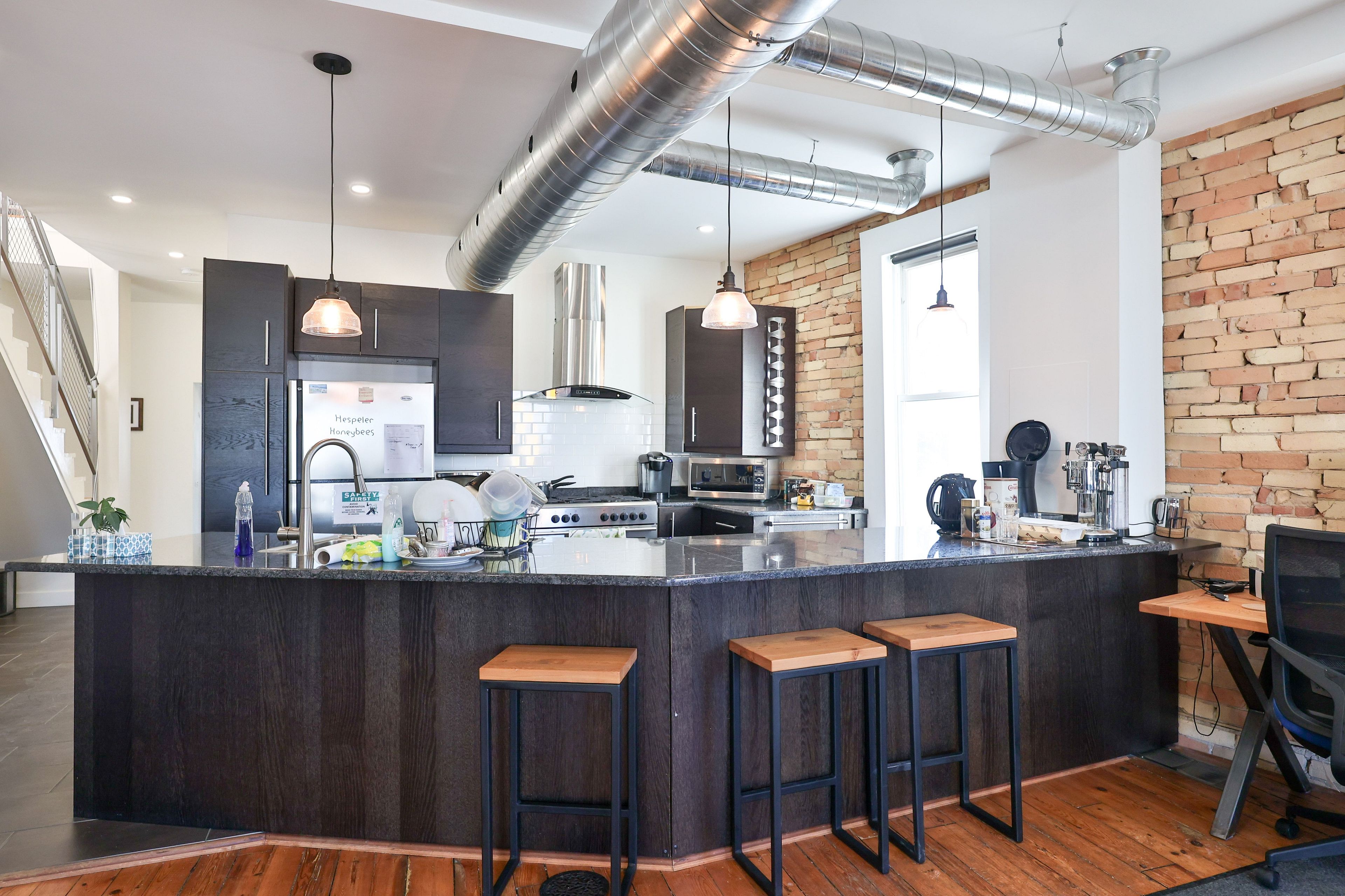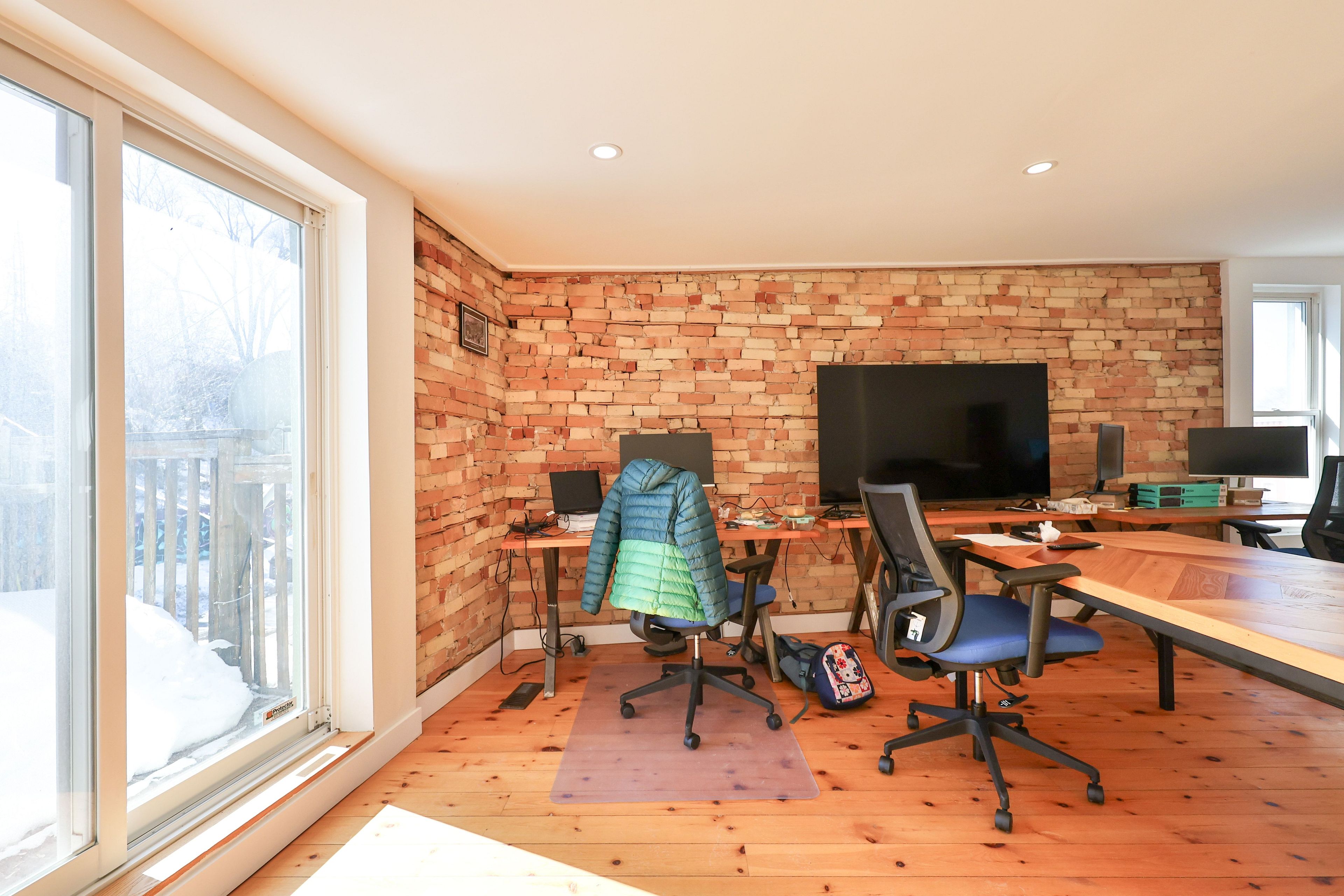 • Beautiful interior with hardwood floors and exposed brick features.