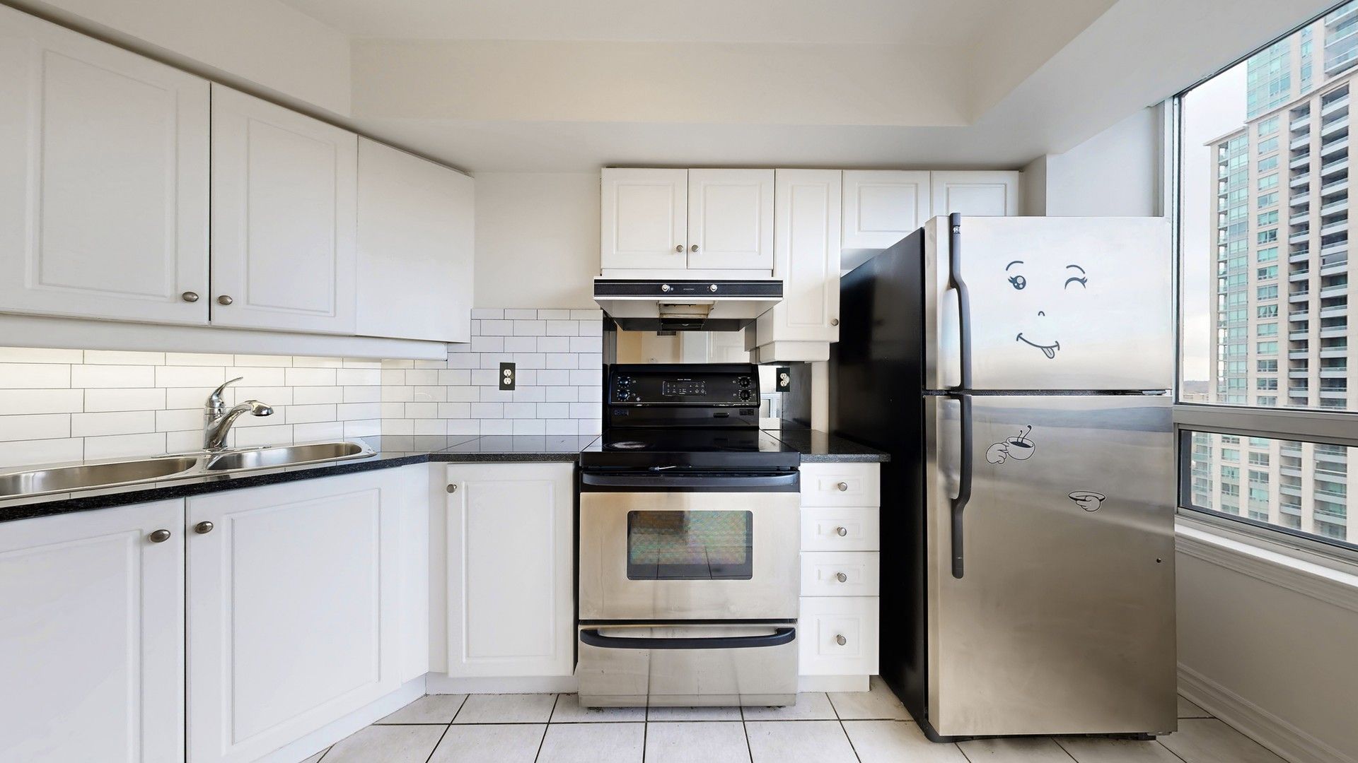 *high level corner unit with great & unobstructed south-west beautiful view *freshly re-painted *clean & bright = move-in condition *pride of ownership *2 good size bedrooms with 1 den (could be used as library or bedroom) *laminate floors thru out (carpet free) *living area 949 square feet (as per mpac report) *1 parking & 1 locker *clean back-splash & granite counter-top in kitchen *best & most convenient location in c15 area = walk to subway, bayview village shopping mall, schools, y. M. C. A., parks & other amenities *minutes to highway 401