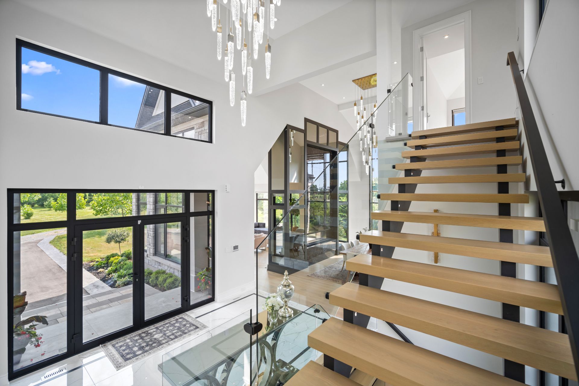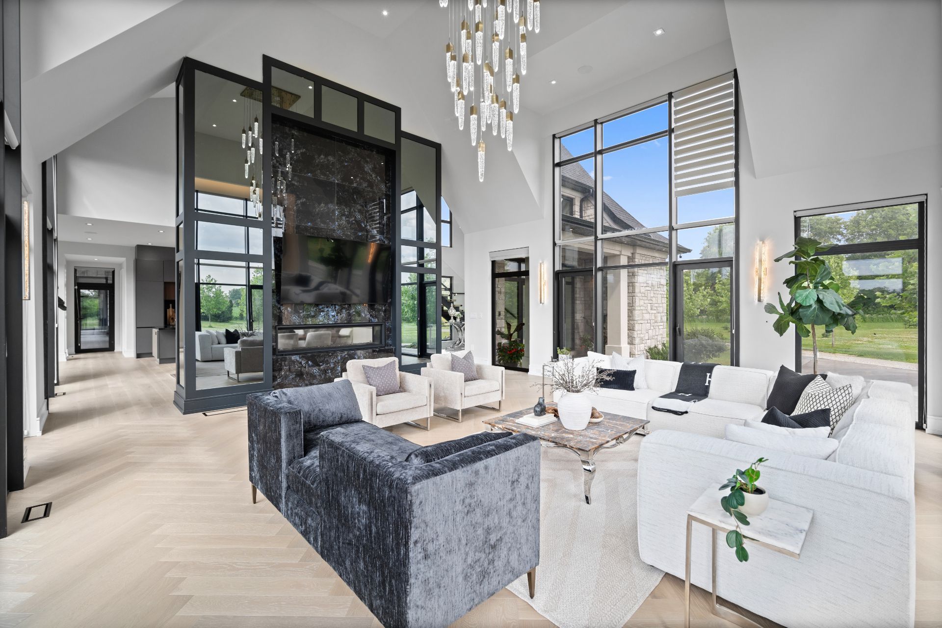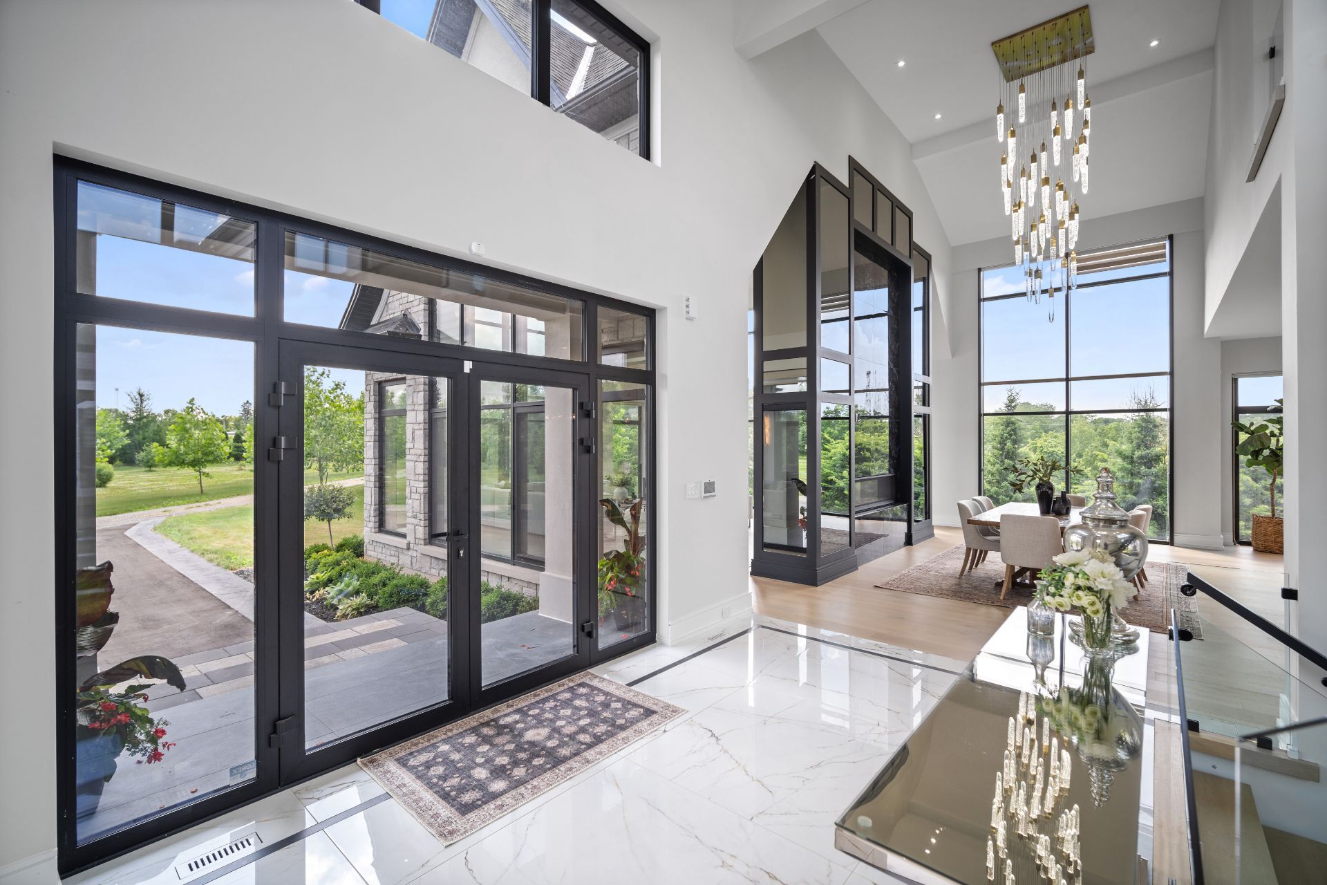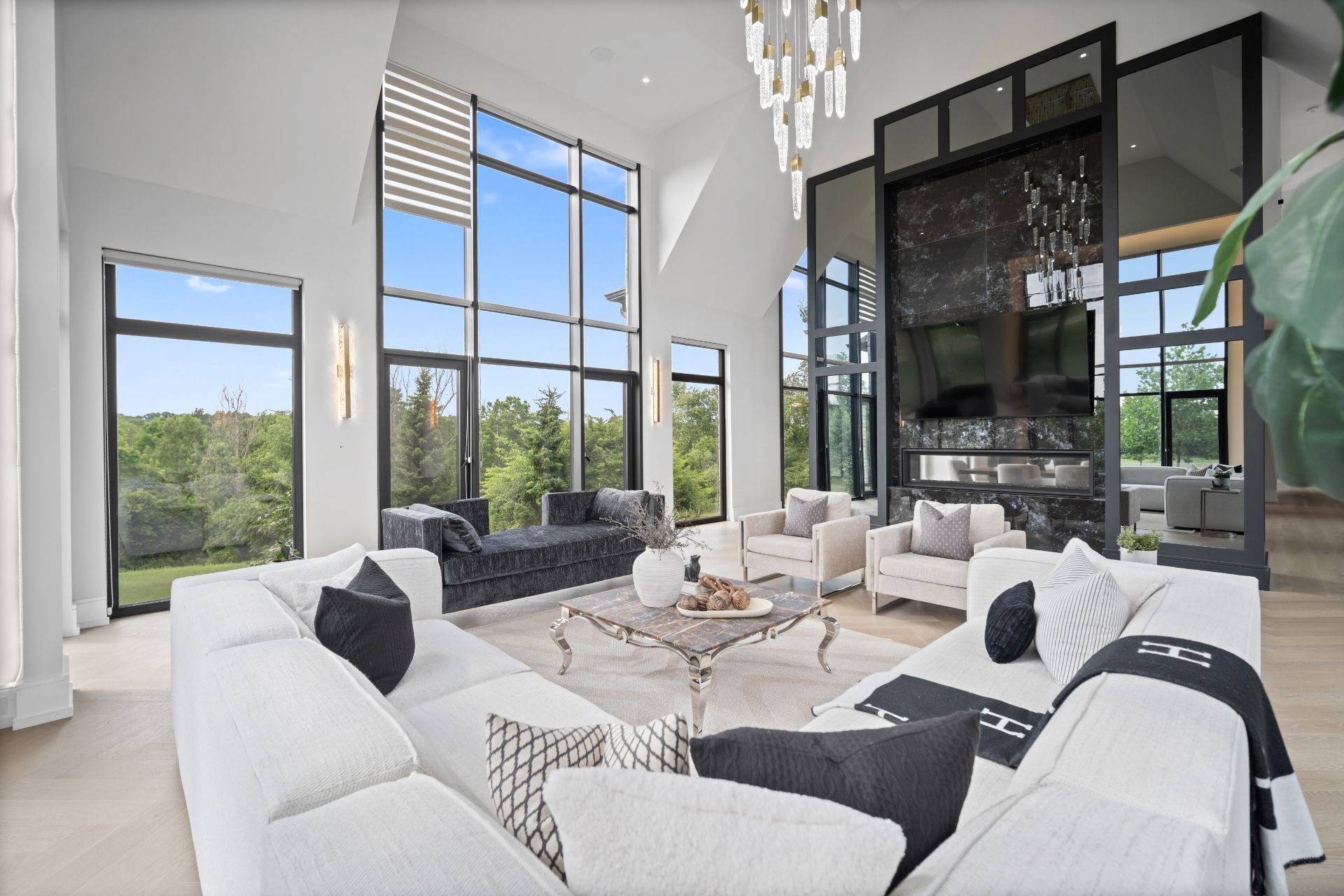 Welcome to an architectural masterpiece nestled on 18 private acres of picturesque landscape. This brand-new, custom- built estate is a modern sanctuary that effortlessly blends luxury, design, and nature. Step inside to discover stunning herringbone light hardwood floors, soaring cathedral ceilings, and dramatic black marble accents that create a bold, yet elegant aesthetic. Every inch of this home has been crafted with top-of-the-line imported finishes, from high-end designer lighting to exquisite custom millwork and built-ins. The black-framed, floor-to-ceiling windows flood the space with natural light while perfectly framing the serene outdoor views. The chefs kitchen and open-concept living space are made for both entertaining and everyday luxury. Downstairs, a fully finished basement with a sleek wet bar provides the perfect space for hosting or relaxing. Outside, the grounds are professionally landscaped, offering a private and peaceful setting that feels like your own retreat from the world. This is not just a home it's a lifestyle. A modern design marvel on a breathtaking canvas.