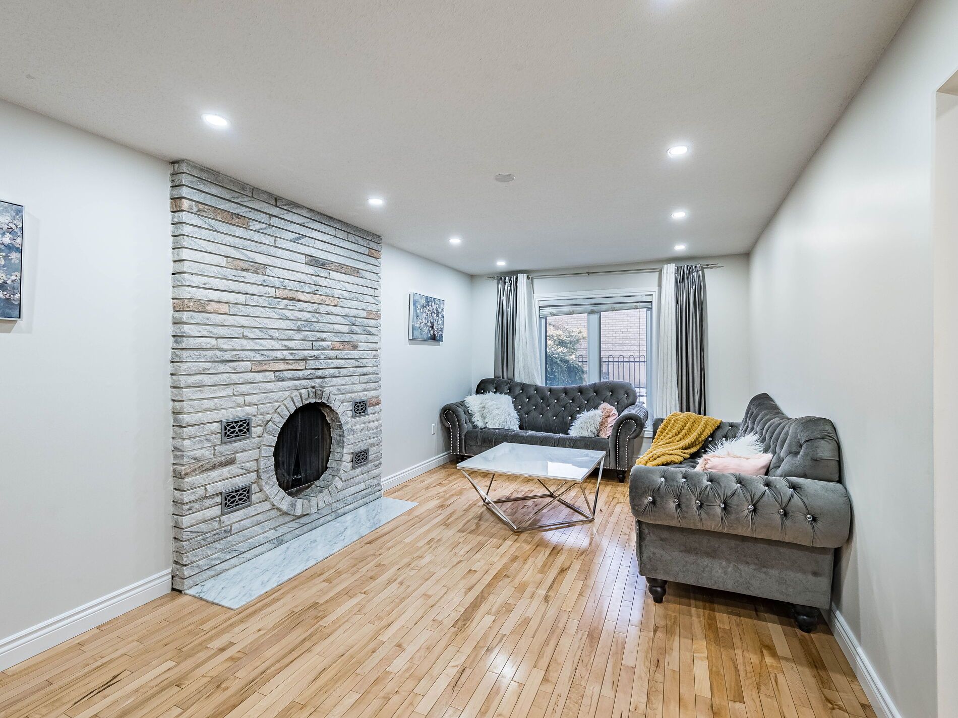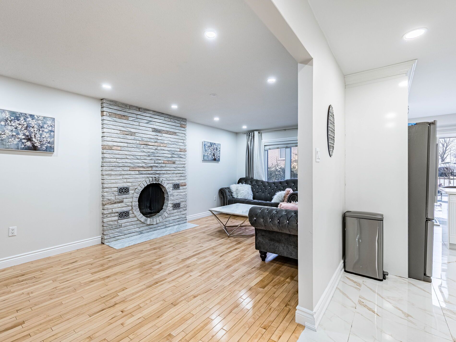 • Bright interior with large windows and open-concept layout.