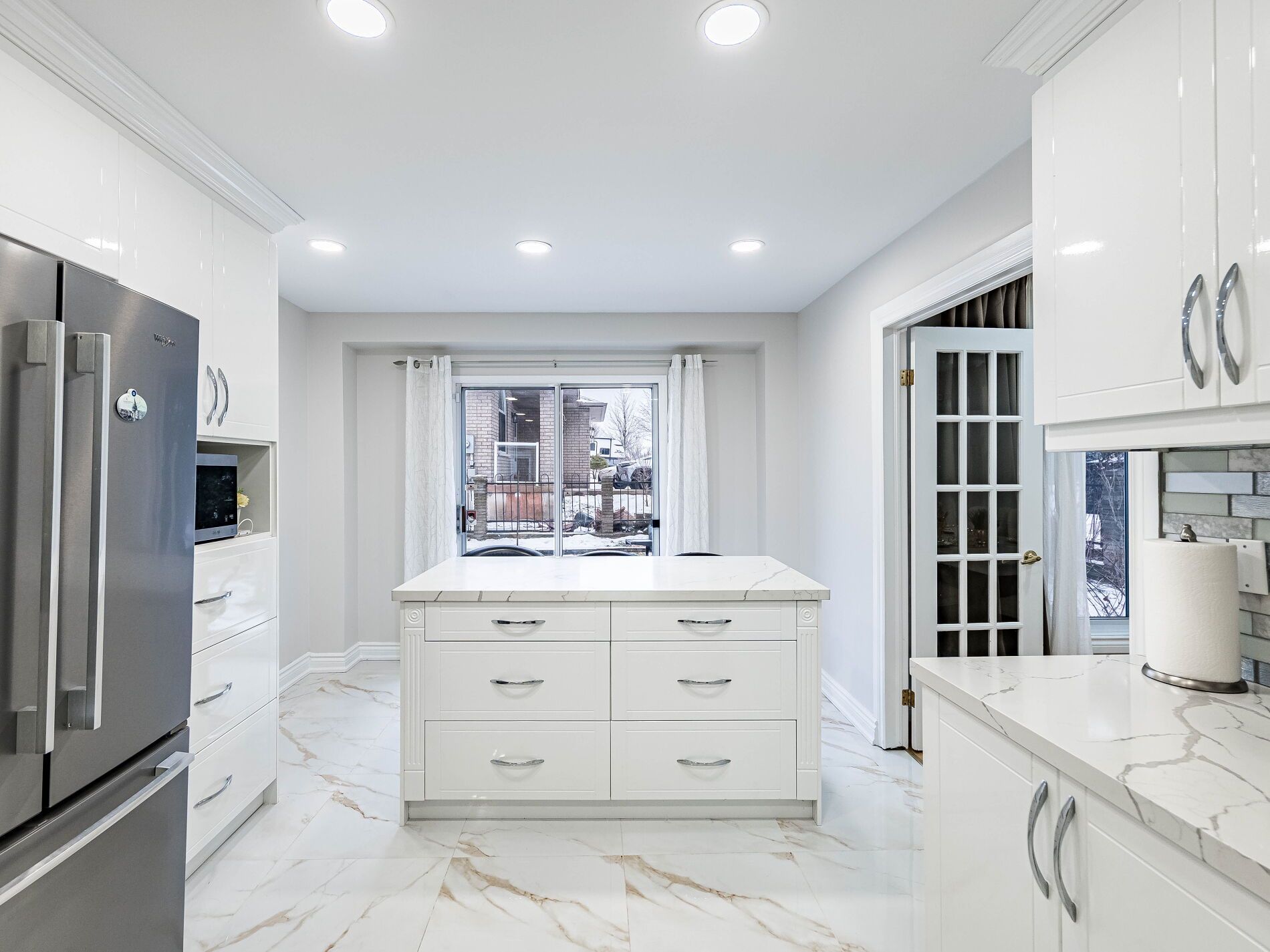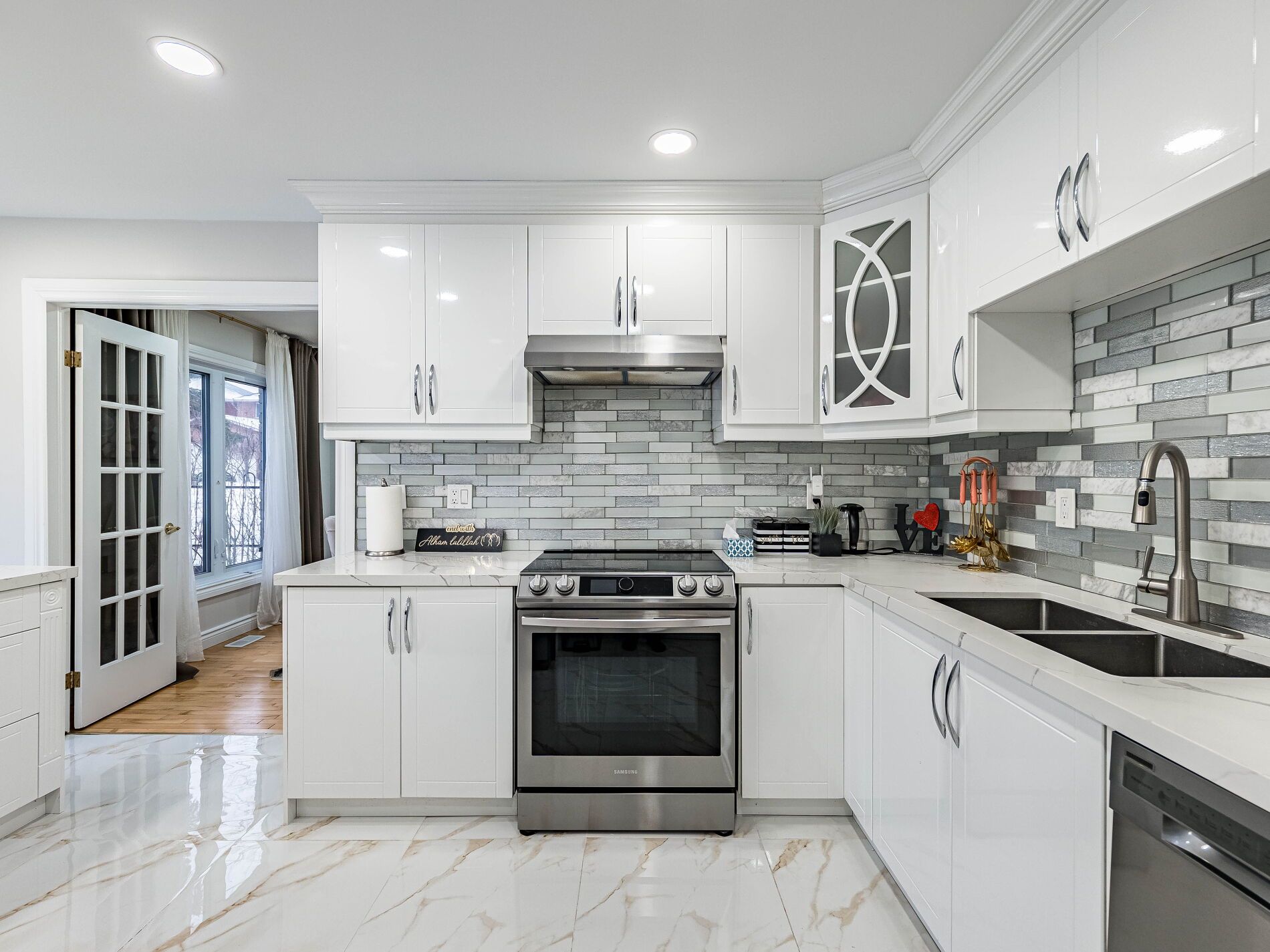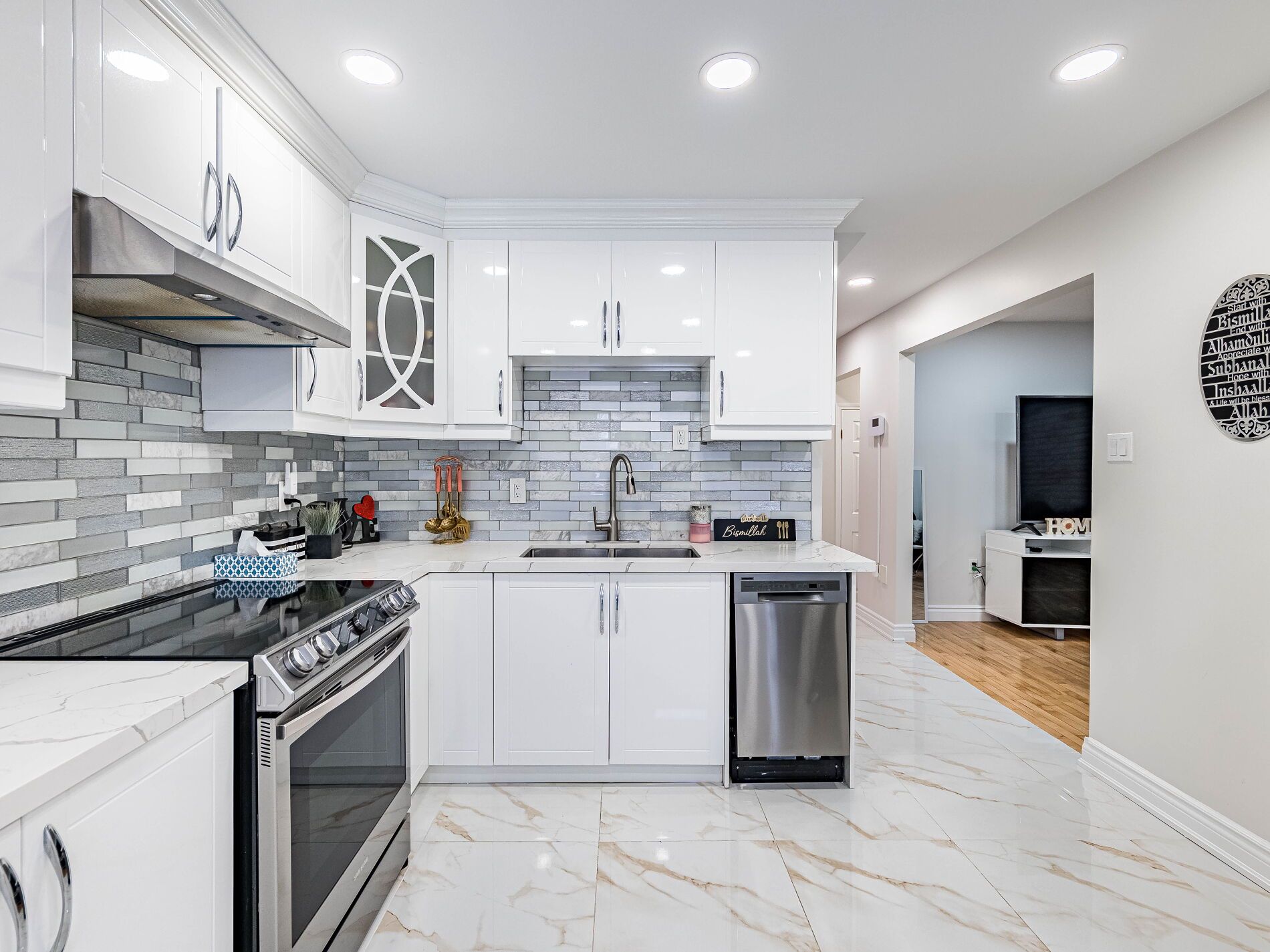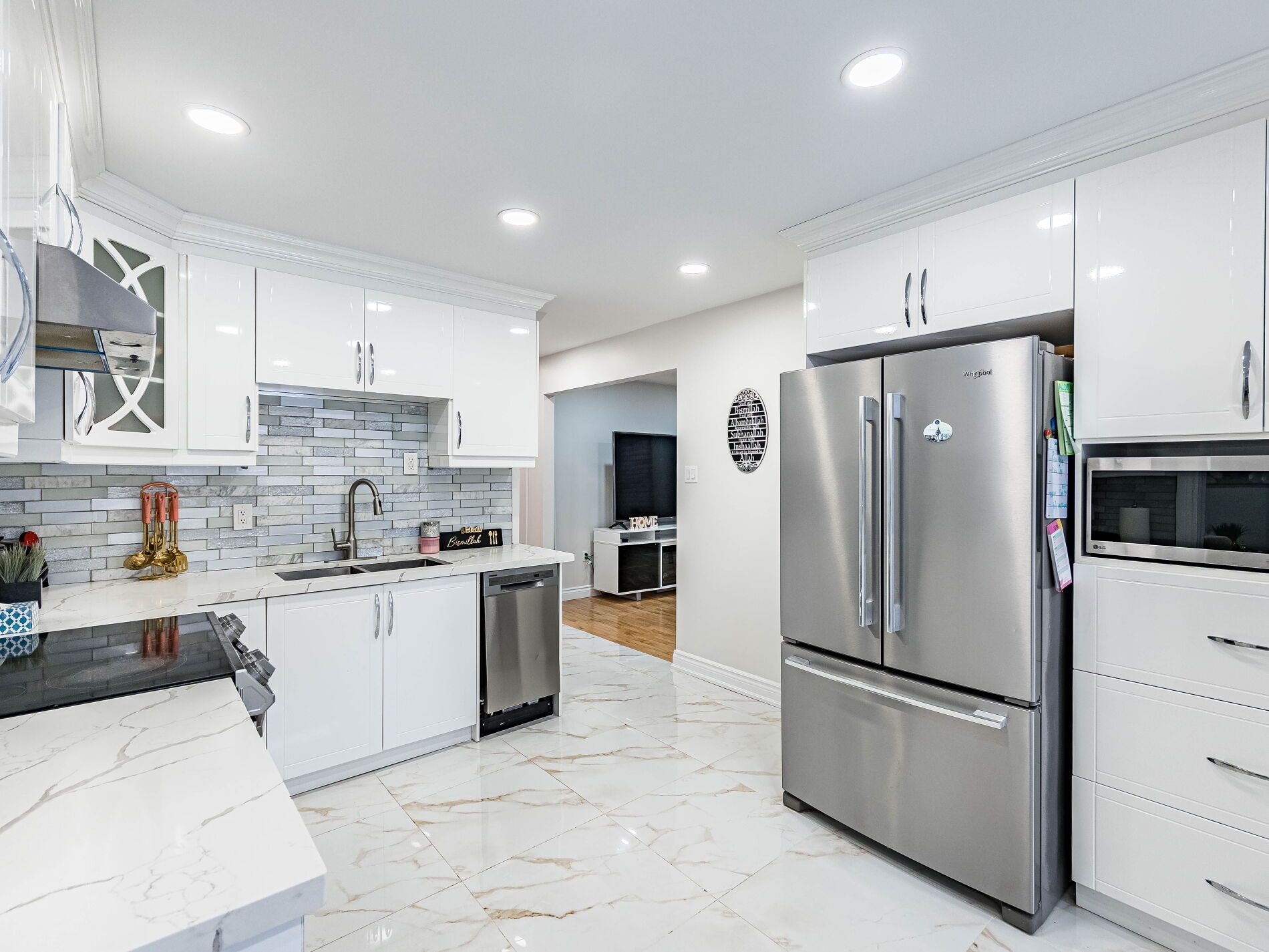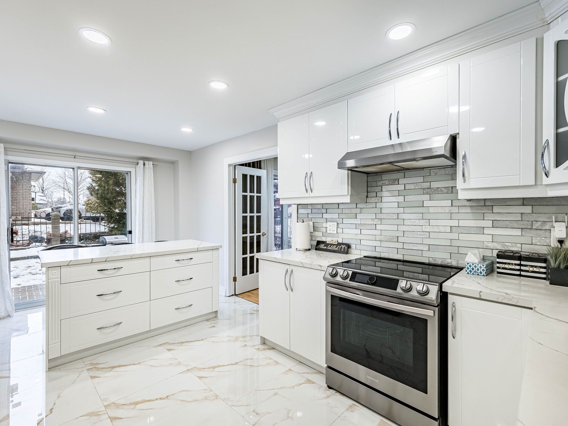 • Stylish kitchen overlooking family room, great for entertaining.