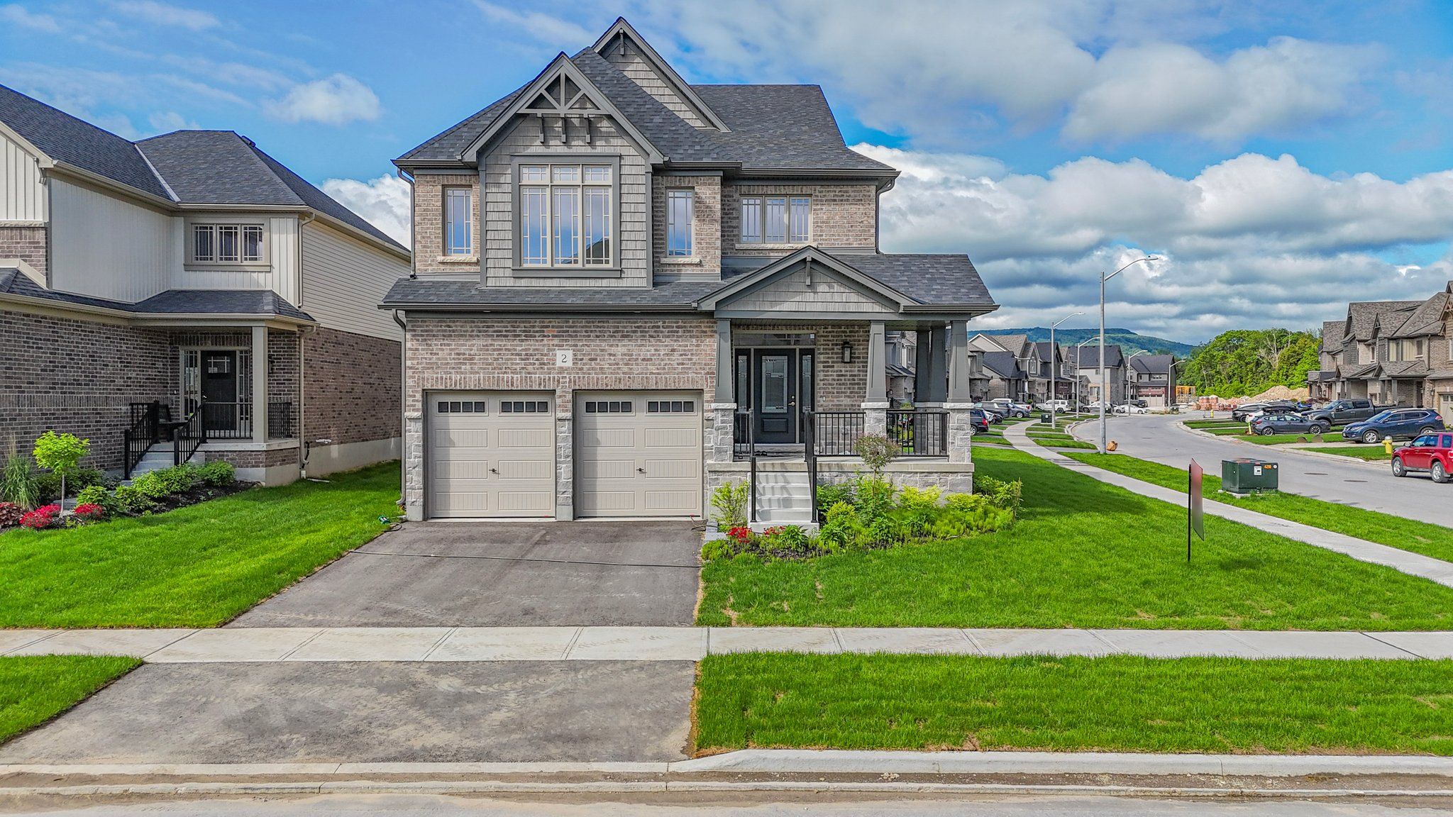 Welcome to your dream home a stunning, brand-new clydesdale style residence by devonleigh homes development! This exceptional 2-storey masterpiece sits proudly on a premium extra-large corner lot, offering 2,600 sq. Ft. Of luxurious living space and unobstructed views of blue mountain. As the largest home in the community, it perfectly blends modern elegance, superior craftsmanship, and functional design. The premium upgrades showcase meticulous attention to detail and elevate every room with timeless sophistication. Step onto the inviting double porch and enter a bright, open-concept layout where 9-ft ceilings and an elegant oak staircase create an airy, upscale atmosphere. The custom chefs kitchen is the true heart of the home featuring quartz countertops, a large entertainment island, soft white cabinetry, and high-end stainless-steel appliances, ideal for hosting family and friends. Upstairs, the spacious primary suite is a private retreat, complete with an oversized walk-in closet and serene mountain views. Added touches like a dedicated pantry, a custom laundry room, and large sun-filled basement windows (56"x24") ensure comfort, style, and future potential. The garage with upgraded 8'x8' doors provides easy access for larger vehicles and additional storage. Ideally located in one of collingwoods most sought-after neighborhoods, youll enjoy year-round recreation just minutes to blue mountain resort, golf courses, georgian bay beaches, and a short stroll to the local park and community trails. Experience refined luxury, comfort, and a lifestyle that inspires this home truly has it all!
