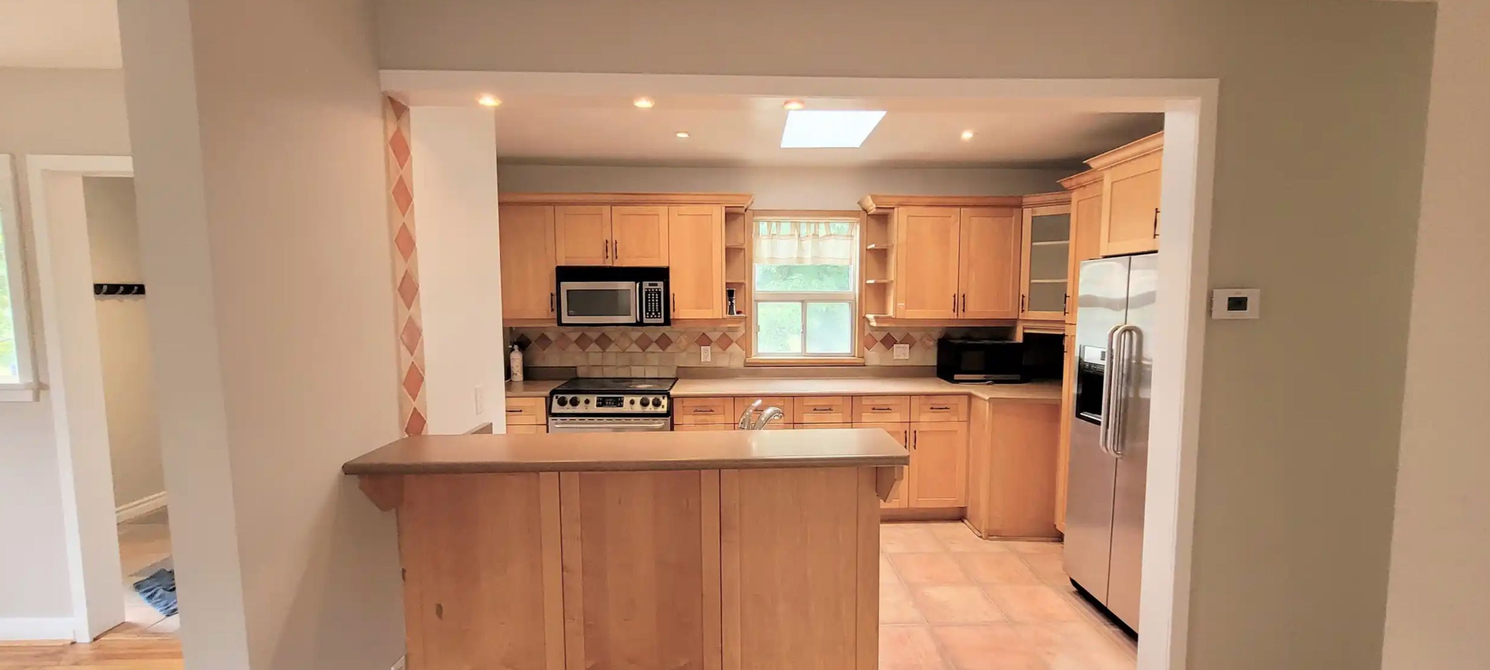 • Hardwood flooring and kitchen skylight provide modern upgrades.