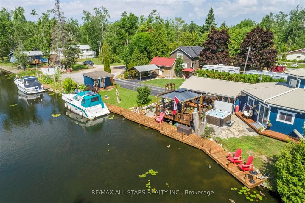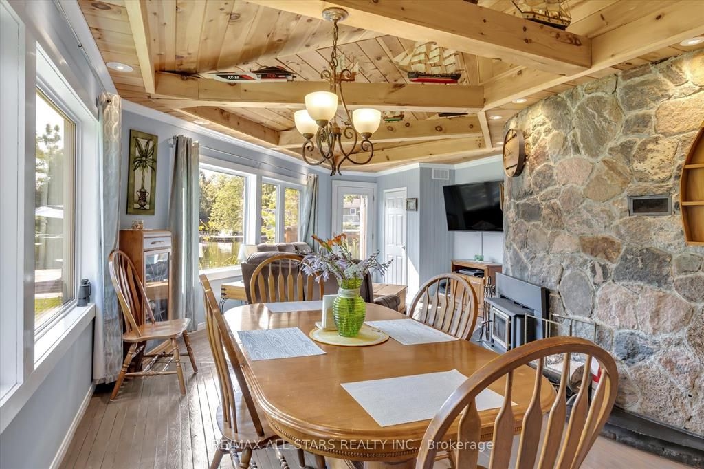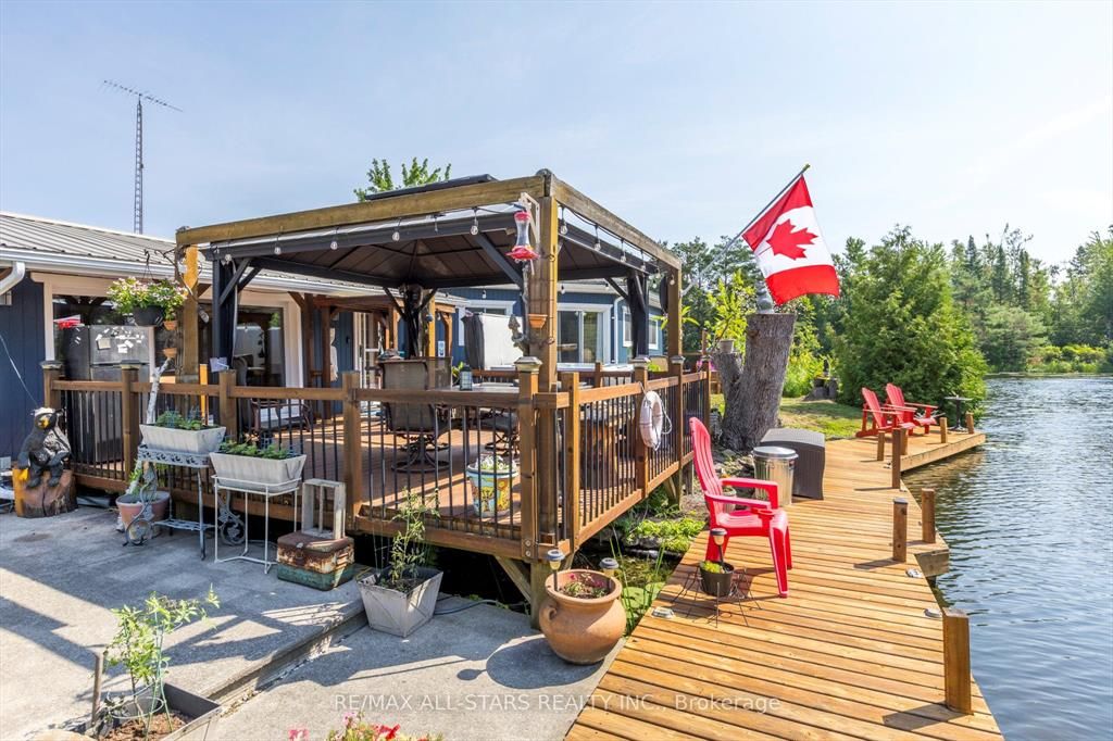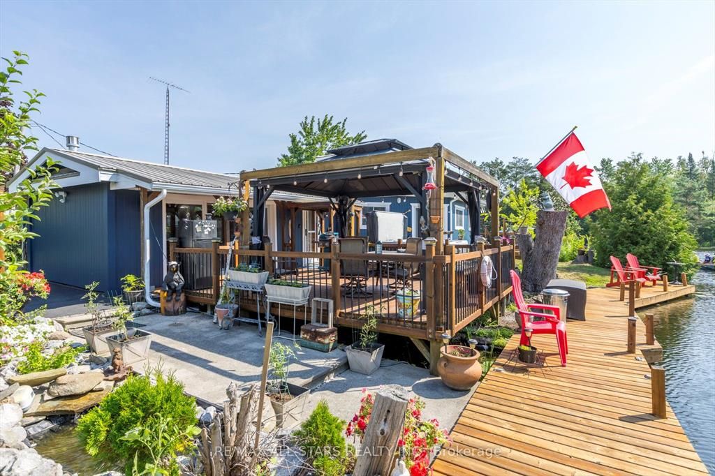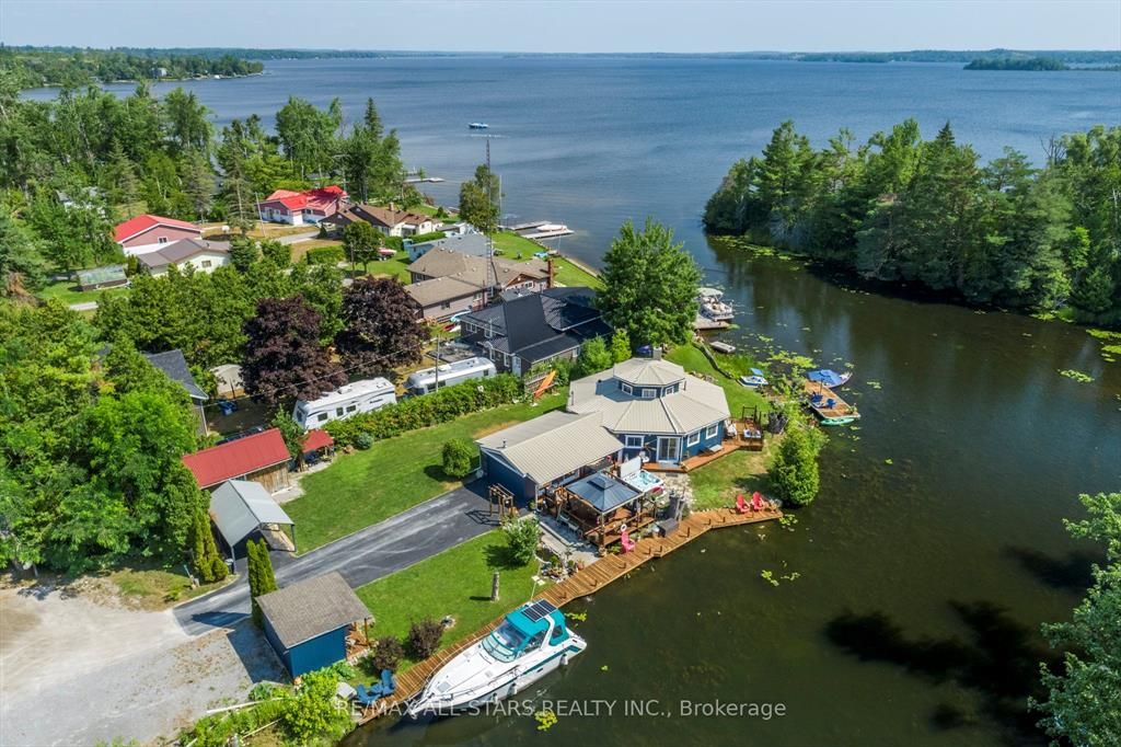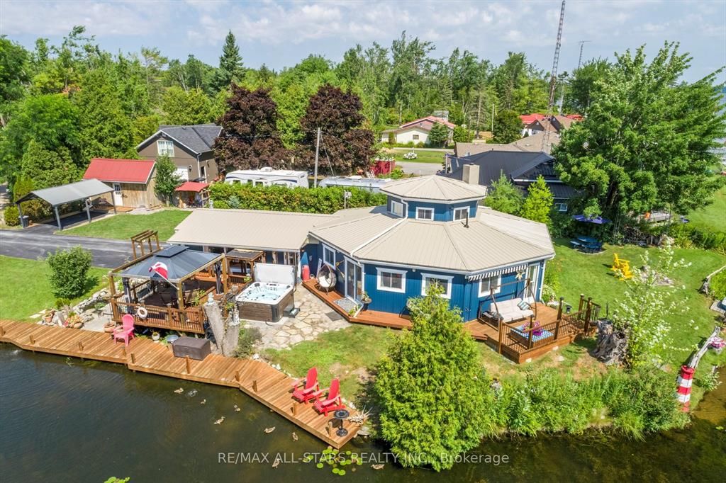 A rare waterfront gem on cameron lake - 315 ft shoreline on cameron lake . Welcome to a one-of-a-kind retreat at the mouth of beautiful cameron lake, perfectly positioned between lindsay and fenelon falls. This remarkable property boasts a total of 315 feet of waterfront, offering panoramic views, and an incredible lifestyle right at the waters edge. This unique home features three spacious bedrooms a distinctive second-story turret-style bedroom. Truly a standout architectural detail. Inside, you'll find warm post-and-beam construction in family room, a stunning fieldstone wood-burning fireplace in the living room, and a cozy propane fireplace in the family room for year-round comfort. The 5-piece ensuite offers a spa-like retreat, and the main bathroom is beautifully updated. Enjoy peace of mind with a new metal roof installed in 2025 along with many other upgrades. The layout is designed for seamless indoor-outdoor living. The family room offers walkouts to a large deck 's with a gazebo overlooking the water, perfect for entertaining or enjoying peaceful lakeside mornings. The living room features a walkout to a sun deck that also showcases stunning lake views, creating an effortless flow between inside and out. Step outside to enjoy multiple decks that stretch along the shoreline, a private hot tub with water views and ample docking for large boats a rare feature for waterfront properties. The property comes fully furnished, including outdoor water toys, making it entirely turnkey. Extras a fully equipped bunkie or extra storage also a workshop. Easy access to all amenities in nearby lindsay and fenelon falls whether you're looking for a luxurious cottage, full-time lakefront home or an investment in waterfront living, this property delivers unmatched location, comfort and charm. This is truly a once-in-a-lifetime opportunity to own a slice of paradise on cameron lake.