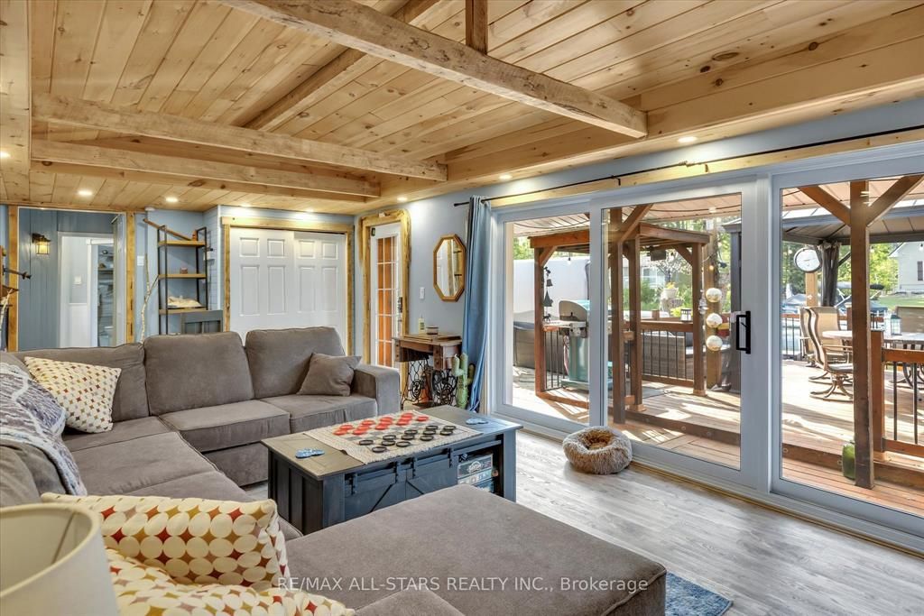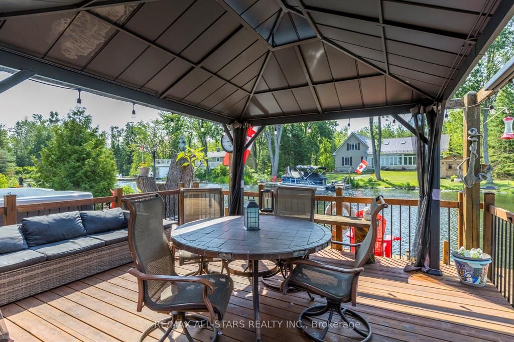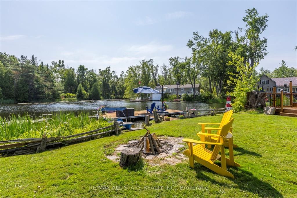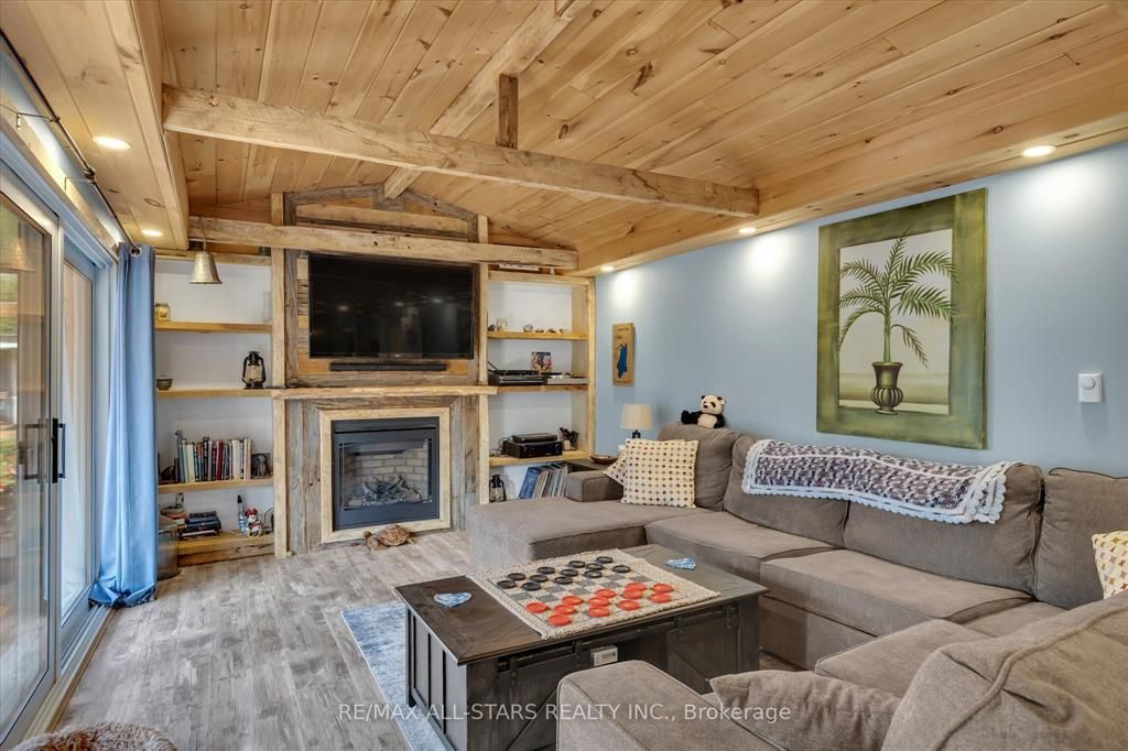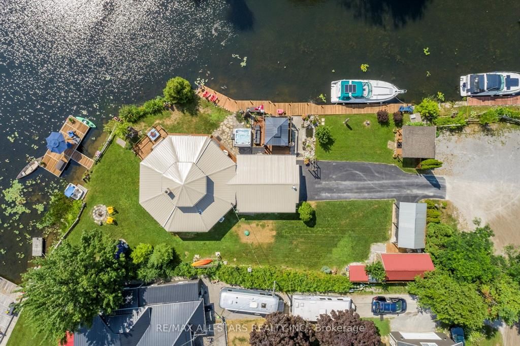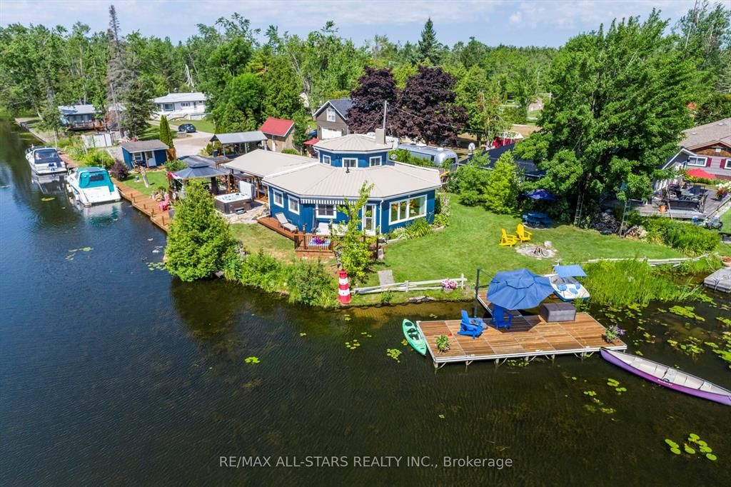 A rare waterfront gem on cameron lake - 315 ft shoreline on cameron lake . Welcome to a one-of-a-kind retreat at the mouth of beautiful cameron lake, perfectly positioned between lindsay and fenelon falls. This remarkable property boasts a total of 315 feet of waterfront, offering panoramic views, and an incredible lifestyle right at the waters edge. This unique home features three spacious bedrooms a distinctive second-story turret-style bedroom. Truly a standout architectural detail. Inside, you'll find warm post-and-beam construction in family room, a stunning fieldstone wood-burning fireplace in the living room, and a cozy propane fireplace in the family room for year-round comfort. The 5-piece ensuite offers a spa-like retreat, and the main bathroom is beautifully updated. Enjoy peace of mind with a new metal roof installed in 2025 along with many other upgrades. The layout is designed for seamless indoor-outdoor living. The family room offers walkouts to a large deck 's with a gazebo overlooking the water, perfect for entertaining or enjoying peaceful lakeside mornings. The living room features a walkout to a sun deck that also showcases stunning lake views, creating an effortless flow between inside and out. Step outside to enjoy multiple decks that stretch along the shoreline, a private hot tub with water views and ample docking for large boats a rare feature for waterfront properties. The property comes fully furnished, including outdoor water toys, making it entirely turnkey. Extras a fully equipped bunkie or extra storage also a workshop. Easy access to all amenities in nearby lindsay and fenelon falls whether you're looking for a luxurious cottage, full-time lakefront home or an investment in waterfront living, this property delivers unmatched location, comfort and charm. This is truly a once-in-a-lifetime opportunity to own a slice of paradise on cameron lake.