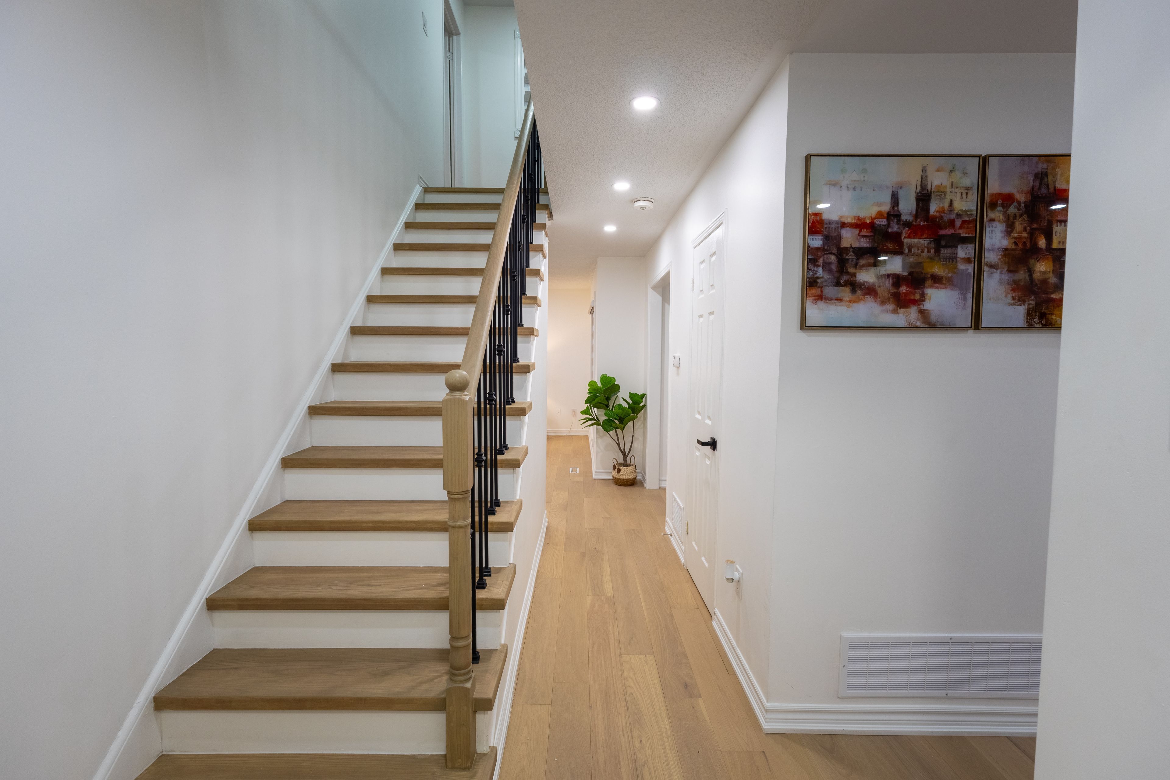 Location, location, location! This stunning, fully upgraded home is ideally situated on a premium corner lot, offering exceptional space, privacy, and curb appeal. Just a 2-minute walk to steeles & mavis, this property delivers outstanding convenience in a highly sought-after area. The main floor features three spacious bedrooms, each complete with large windows and dedicated closet space. Recent upgrades include engineered flooring throughout the main floor, complemented by elegant matching oak stairs. The brand new kitchen is thoughtfully designed and flows seamlessly into a large dining room, making it perfect for entertaining. A bright and oversized living room enhances the open and airy feel of the home, with an abundance of natural light from multiple exposures. Adding tremendous value is the legal basement with a separate entrance, featuring dedicated entrance steps with overhead shade and a concrete walkway leading directly to the basement-providing safe, convenient, and private access. The property also boasts a large driveway with parking for three vehicles. Bright, modern, and move-in ready, this corner-lot home is an outstanding opportunity for homeowners and investors alike.