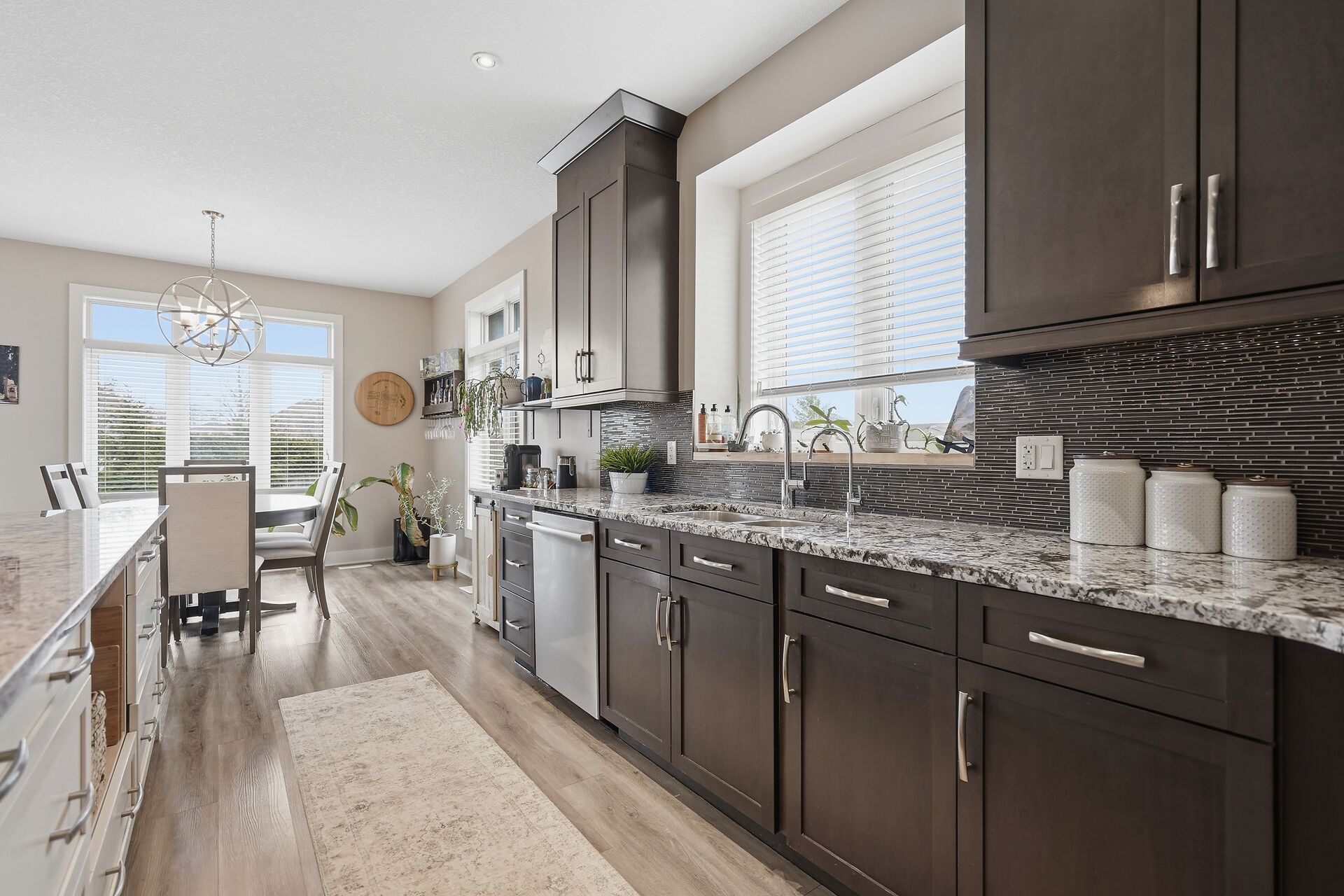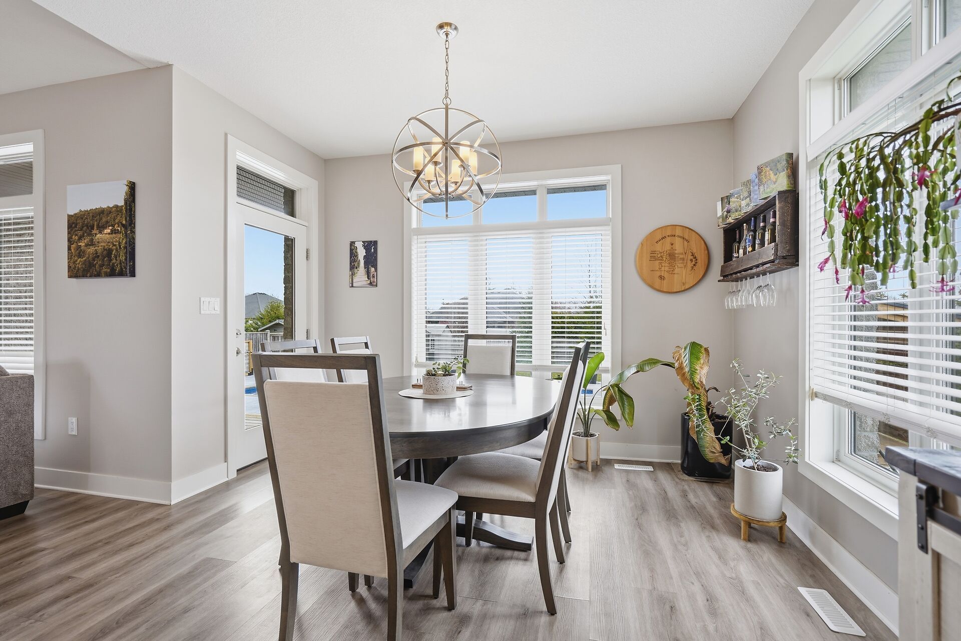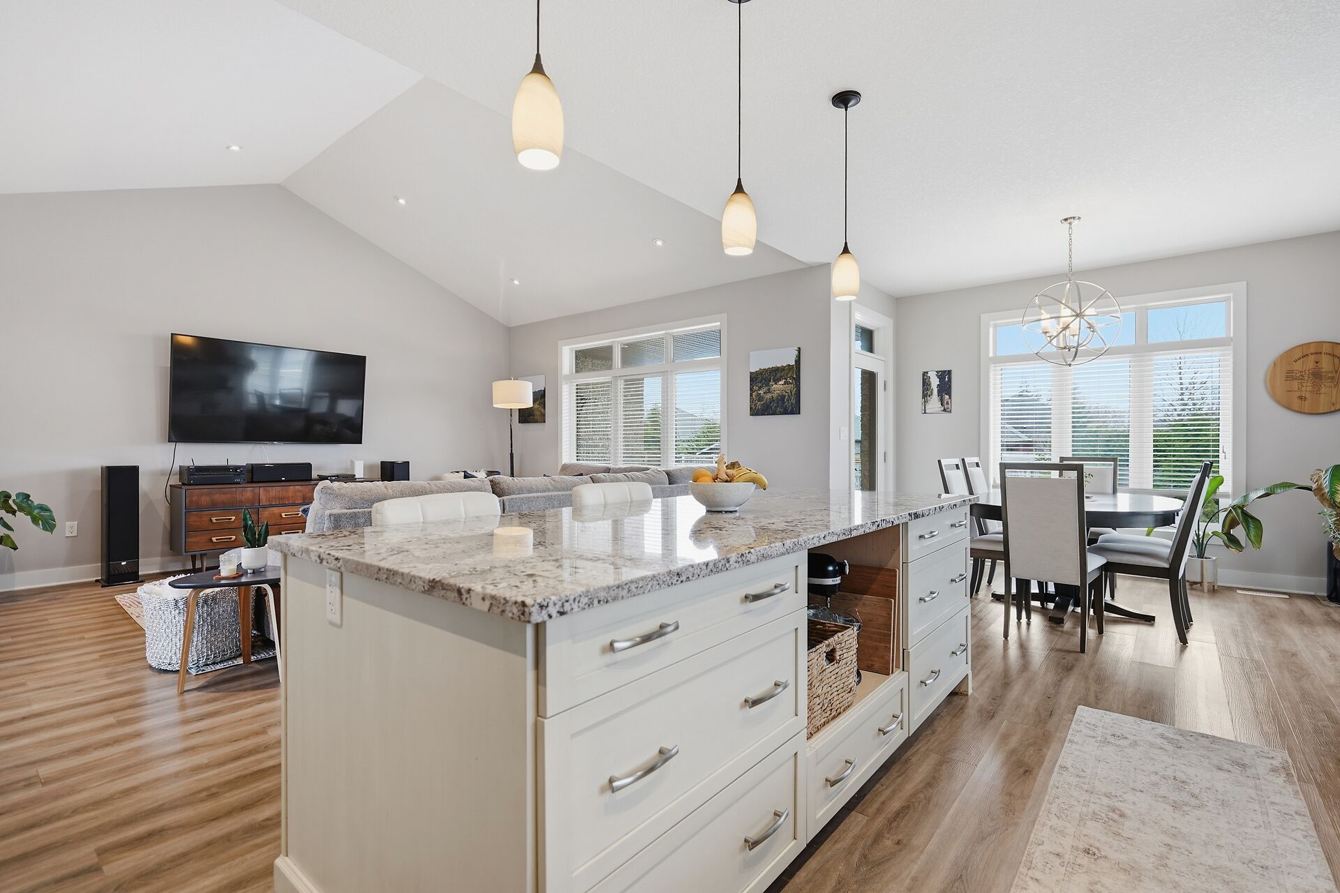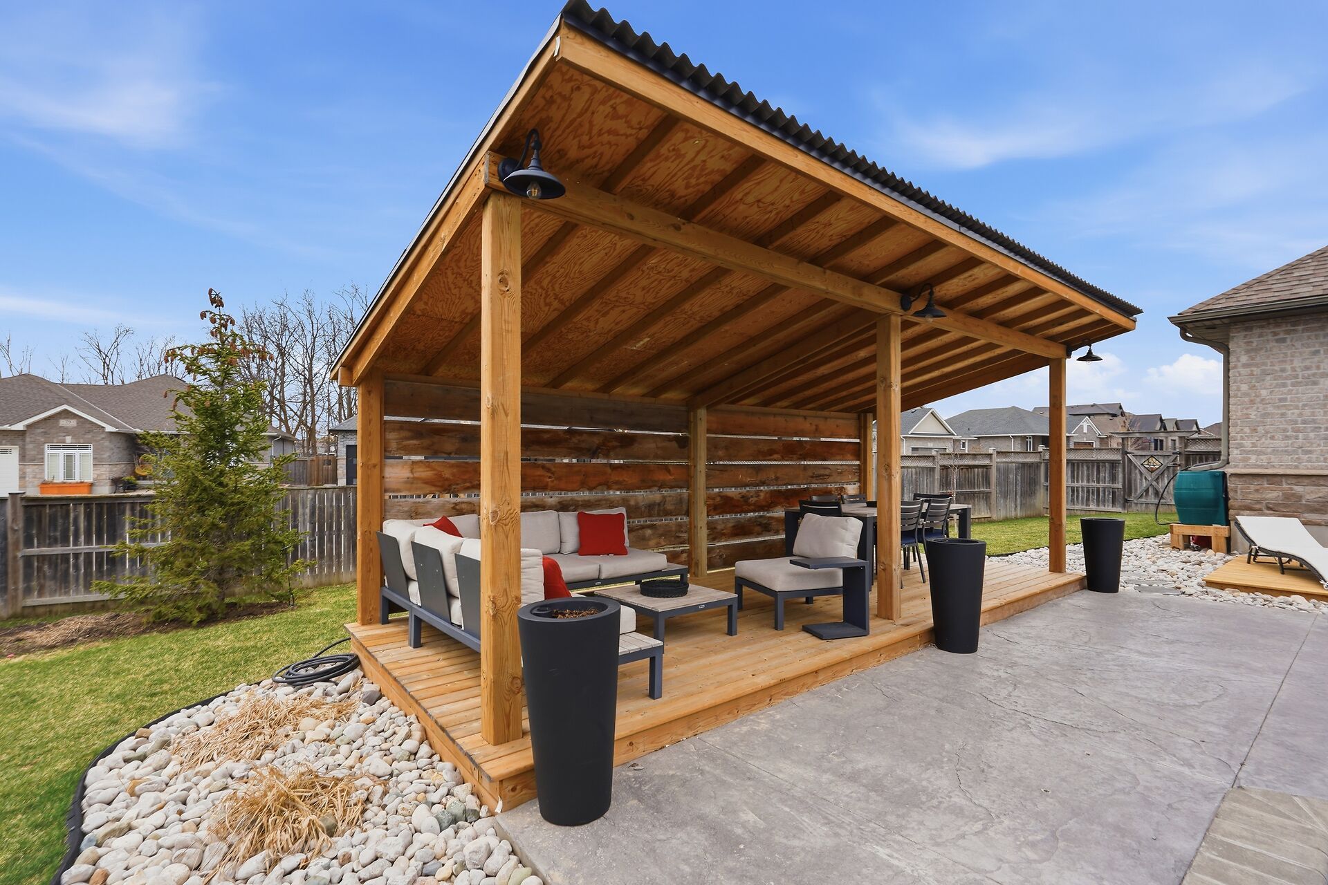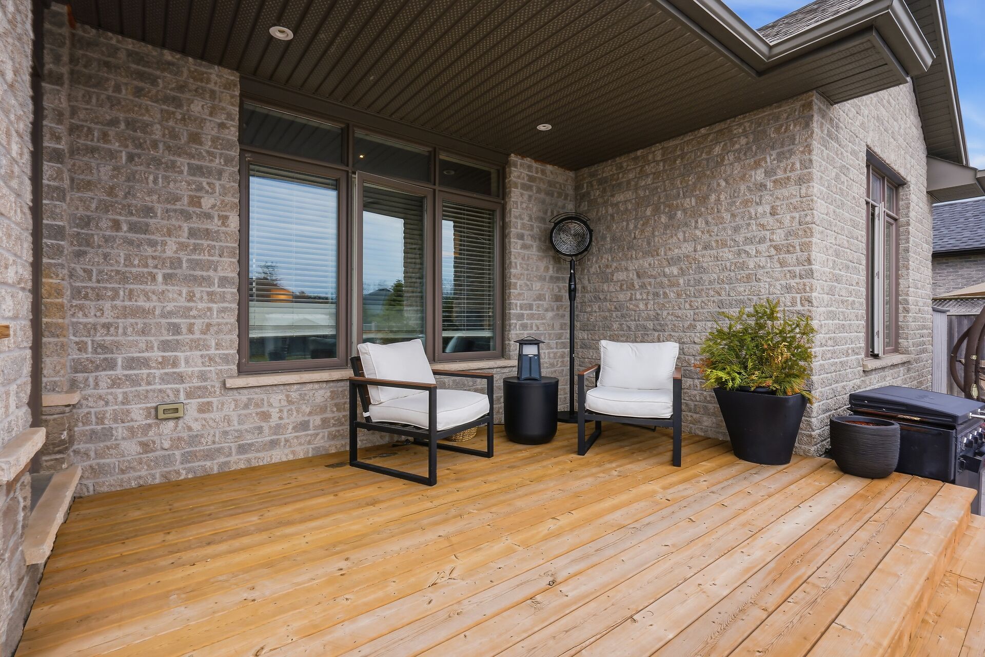 Welcome to this beautifully maintained ranch-style home offering the perfect balance of comfort, space and functionality. This home features a double car garage, impressive curb appeal with striking stone masonry, and a layout that flows effortlessly. Large windows and lower level egress windows, allow for natural light on every level. Main floor transom windows above interior doorways, enhance brightness while adding architectural character. Just off the entrance is a dedicated main floor office. Layout opens into a spacious great room where the kitchen, dining and living areas flow seamlessly together. The kitchen offers ample workspace and storage while remaining connected to the main living area, 4-piece bathroom and practical mudroom, complete with hookups for main floor laundry. Primary features a walk-in closet, a private 4-piece ensuite, while a second generously sized bedroom completes the main level. Fully finished lower level extends the living space with a cozy family room with fireplace, recreation area, two additional spacious bedrooms. A 3-piece bathroom, laundry room, and ample storage add to the home's functionality. The backyard is a true standout feature, private outdoor retreat designed for relaxation and entertaining. The heated saltwater pool, surrounded by a large concrete patio and a newly built covered seating area for dining and lounging in the shade. Designed for low maintenance, the yard includes stone garden beds and raised vegetable planters, offering beauty and practicality. With ample space to entertain, or simply enjoy quiet evenings at home, this setting delivers the ultimate staycation lifestyle. Situated on a desirable corner lot, the property offers privacy and excellent outdoor space in a sought-after, family-friendly neighbourhood. Walking distance to a local school and just a short drive to london, this home offers an ideal blend of lifestyle, location and quality craftsmanship.