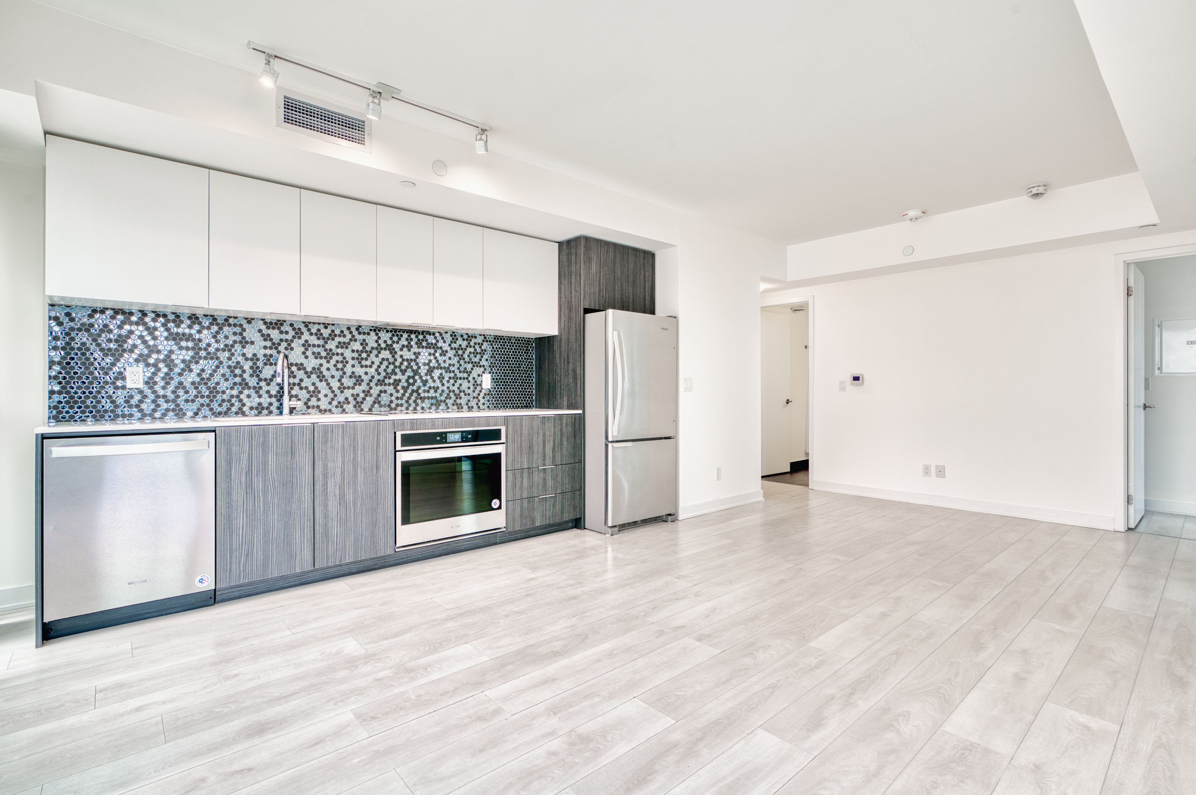 • Sleek cabinetry and integrated appliances enhance style and functionality.
