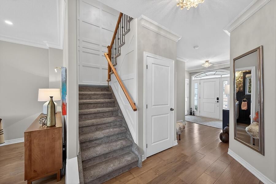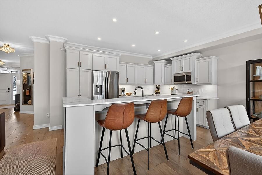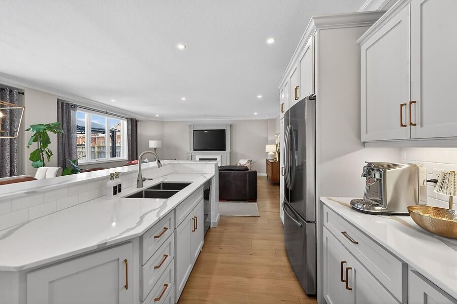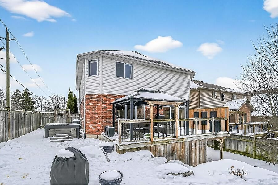 Welcome to 2 southwood crescent, nestled in one of caledonia's most sought-after neighbourhoods. This stunning 4-bedroom, 3-bathroom home is loaded with upgrades and beautiful finishes throughout. Offering exceptional curb appeal, the professionally landscaped exterior features a full sprinkler system and a welcoming presence. Inside, you're greeted by a spacious foyer and engineered hardwood flooring that flows through most of the main level. The bright living room showcases a cozy fireplace with custom surround, while 9' ceilings enhance the open feel. The dining area overlooks the backyard through oversized garden doors with a transom window above. The newly updated kitchen blends style and function with quartz countertops, a large eat-at island, stainless steel appliances (2021) including a gas range, and a modern backsplash. The generous main-floor laundry room offers solid surface counters, upper and lower cabinetry, two large closets, a sink, backsplash, and convenient access to the double garage. An updated 2-piece powder room completes the main level. Upstairs, the stairwell and hallway feature striking floor-to-ceiling custom wall paneling. The spacious primary retreat includes a sitting area, walk-in closet, and a beautifully updated 5-piece ensuite with soaking tub, double quartz vanity, walk-in shower, water closet, and ample storage with two towers. Three additional well-sized bedrooms and a 4-piece bath complete the upper level. New neutral broadloom (2026) adds warmth and comfort. The unfinished basement offers an oversized window and awaits your personal touch. Step outside to enjoy the large deck with gazebo overlooking a private, resort-like backyard complete with a wood-burning stove and hot tub. Located within walking distance to the grand river, trails, schools, parks, and shopping - this exceptional home truly has it all.