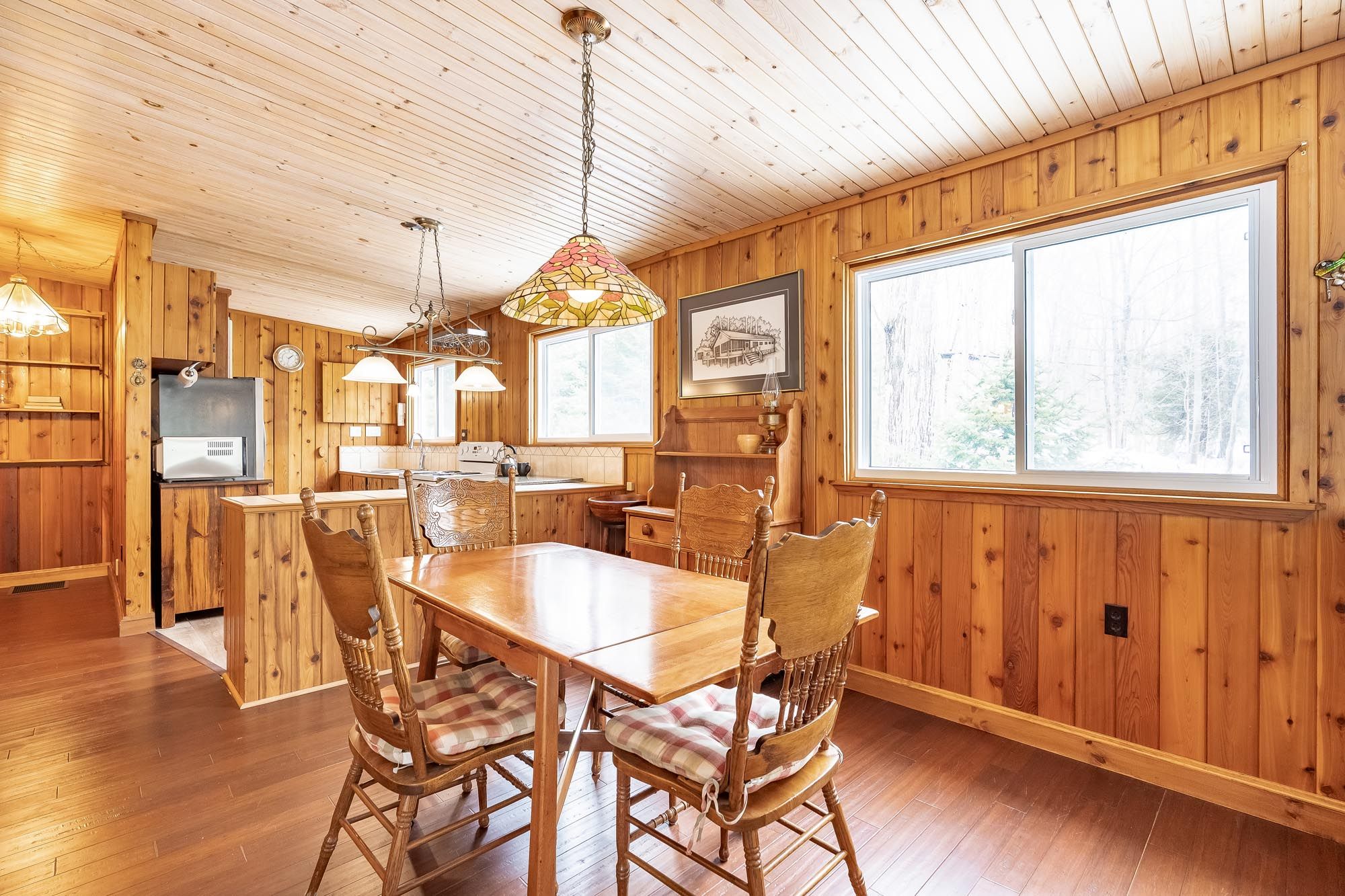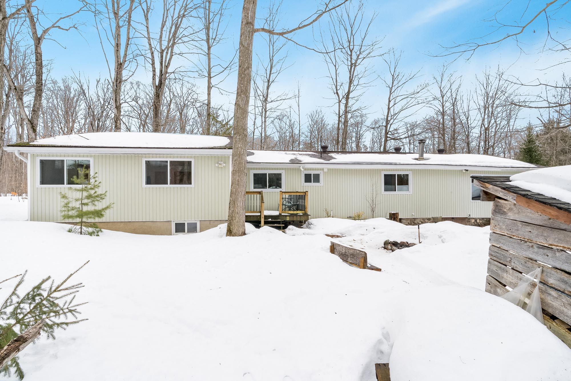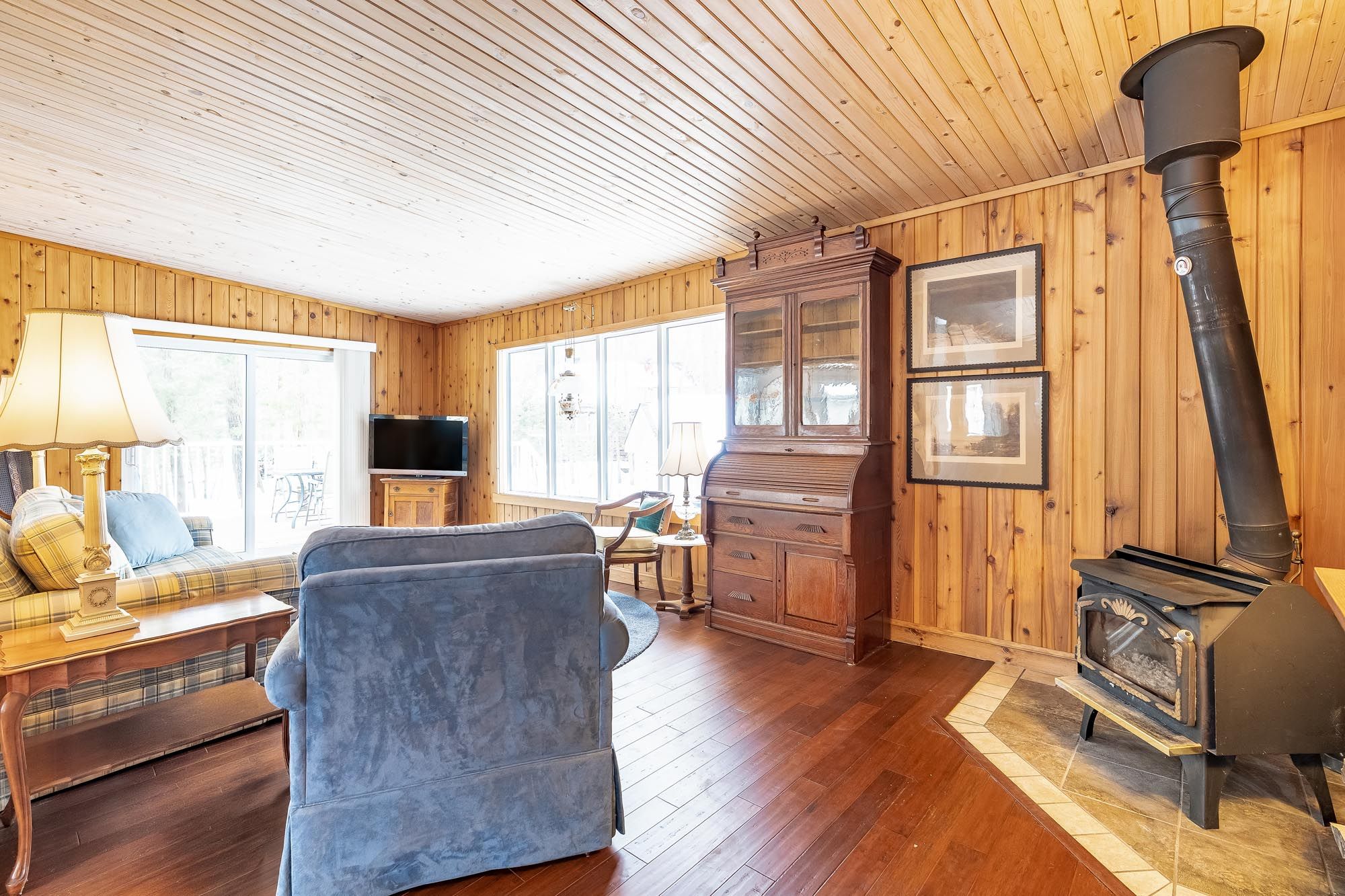 • Cozy wood stove and large windows bring warmth and natural light.
