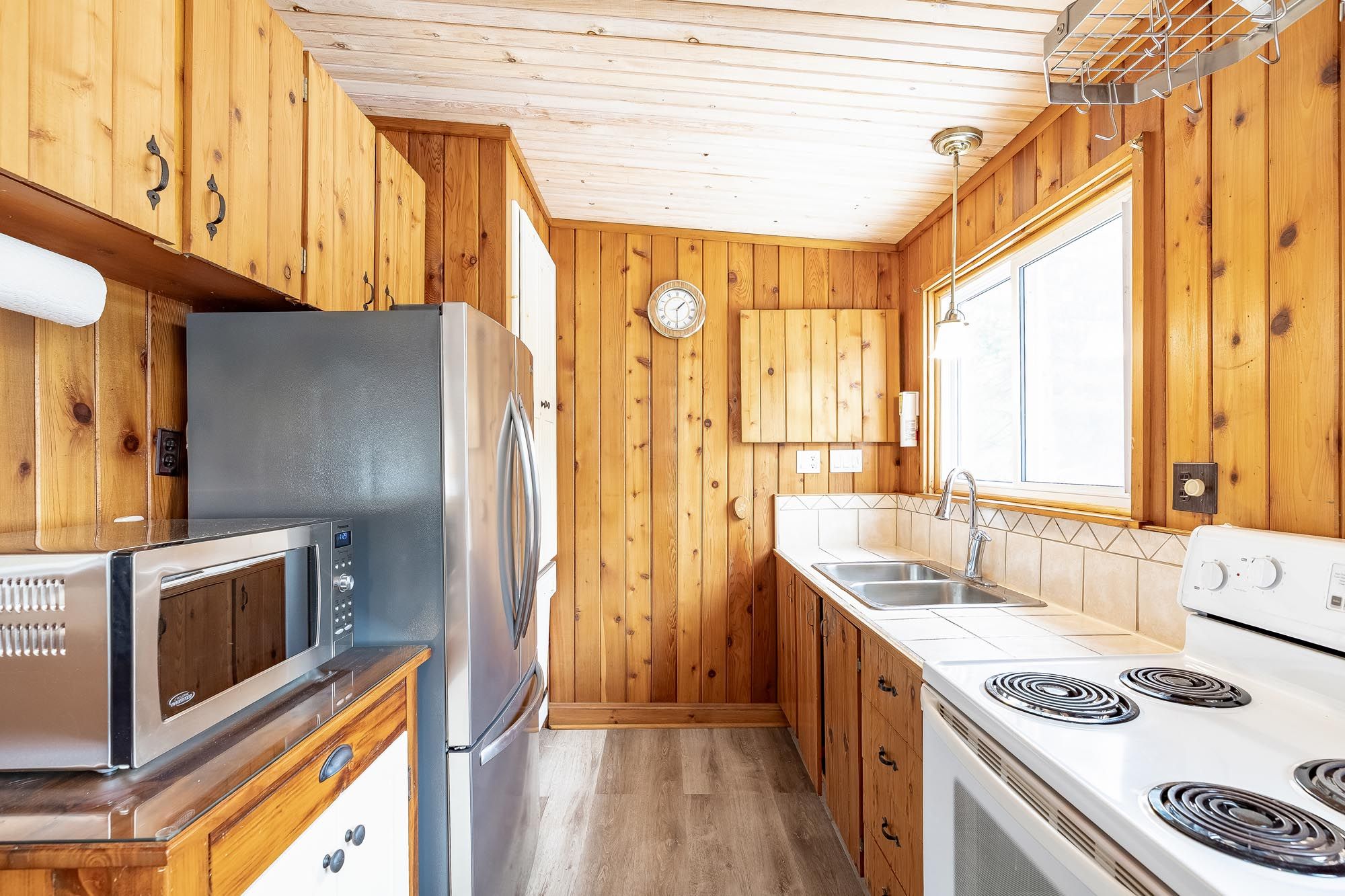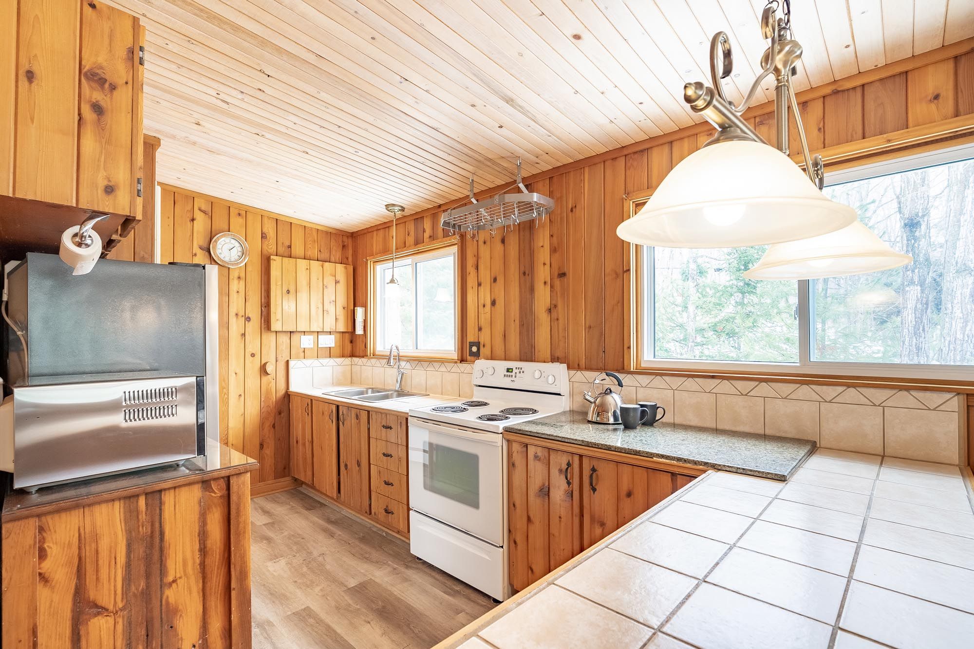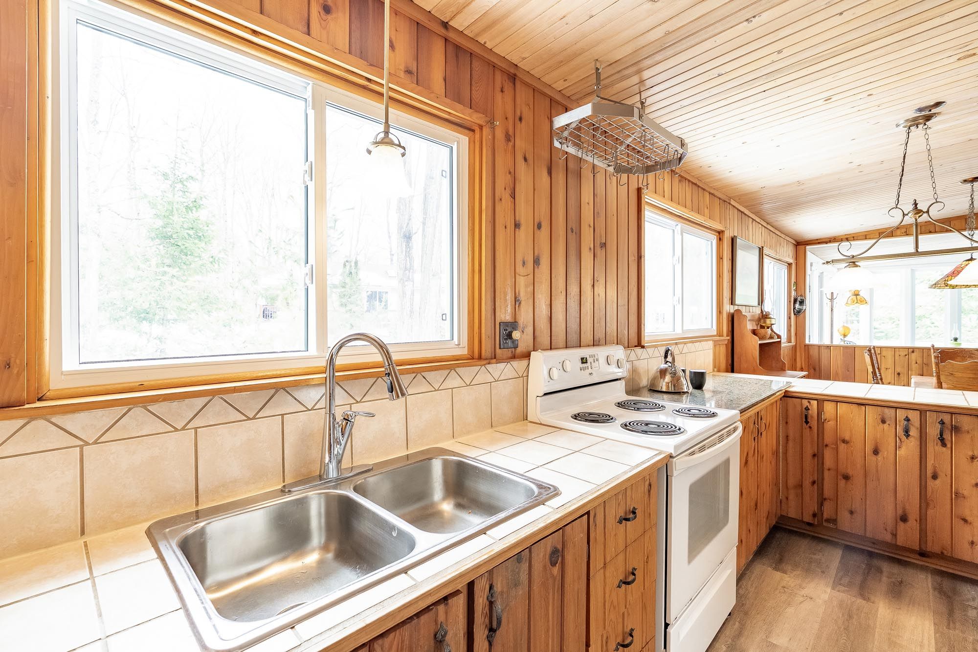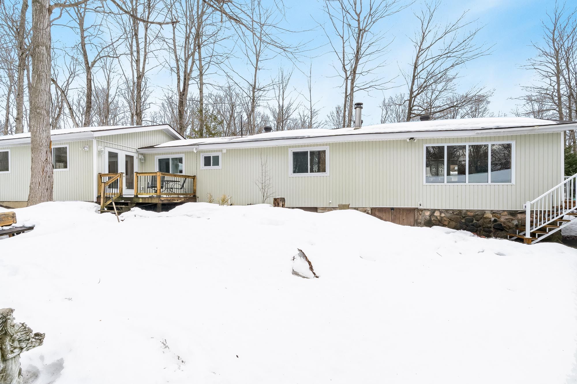 • Cozy wood stove and large windows bring warmth and natural light.