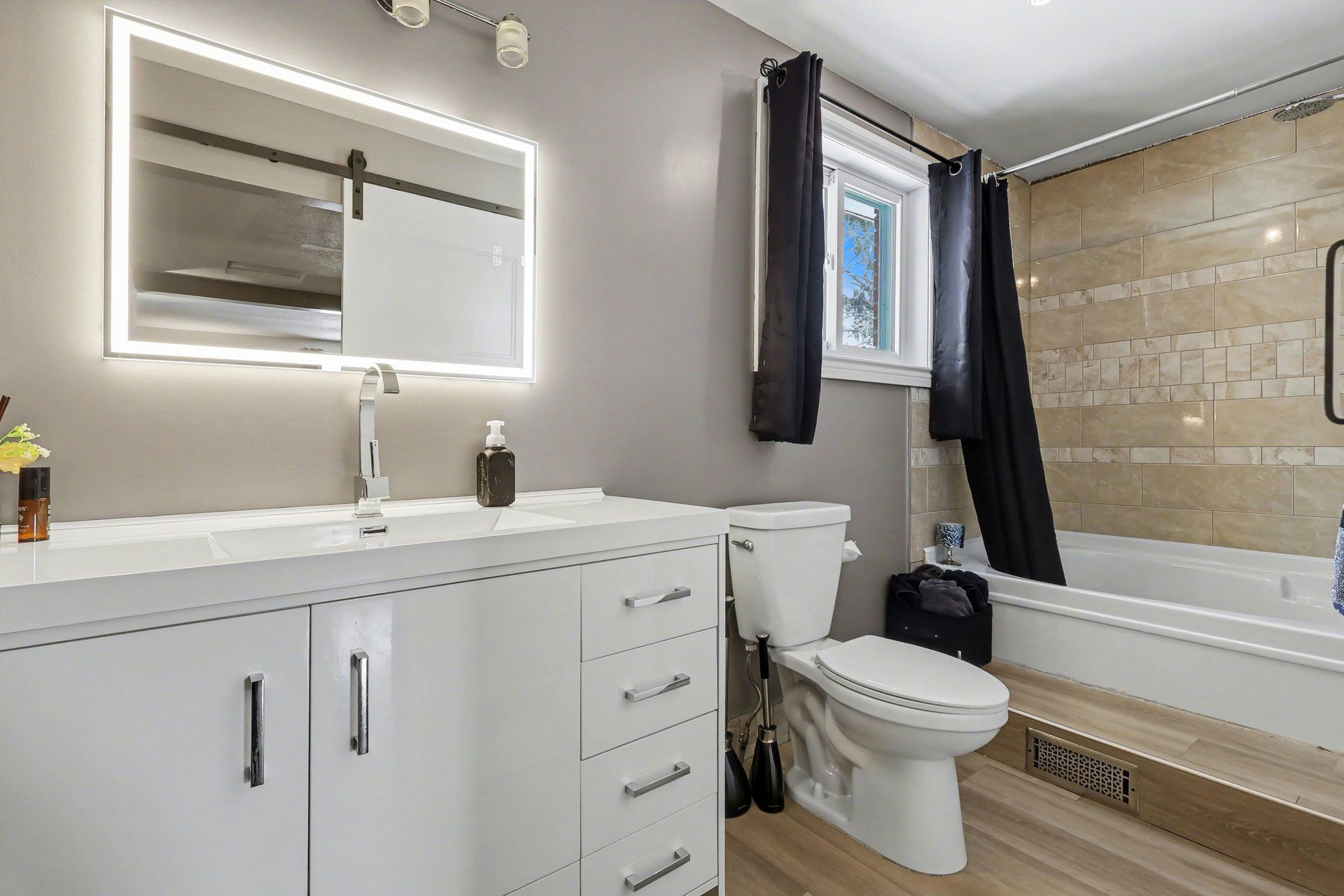 Welcome to this solid and spacious 2 plus 2 bedroom home in the heart of moose creek offering flexibility, natural light, and exceptional upside potential. The main level features two comfortable bedrooms and a bright, inviting kitchen highlighted by a beautiful oversized bay window that fills the space with natural light. It is the perfect setting for morning coffee, family dinners, or simply enjoying the view while you cook. The layout is practical and welcoming, ideal for first time buyers, downsizers, or investors. The primary bedroom offers a relaxing retreat, and just steps away you will find the included spa, creating a private escape right at home. Whether it is to unwind after a long day or enjoy a quiet weekend recharge, this added feature brings comfort and lifestyle together. Downstairs, you will find two additional bedrooms and a space ready for completion, a true blank canvas to design the basement of your dreams. Whether you envision a rec room, in law suite, home office, or additional living space, the opportunity is there. The seller simply never got around to finishing it, and there is ample tile, grout, and sealer included to help complete the project to your specifications. Adding even more versatility is a detached garage that is already plumbed. With some work and proper approvals, this space has the potential to be transformed into additional living quarters, a studio, workshop, or possible rental unit, opening the door to multigenerational living or supplementary income. Live comfortably now, add value over time, and customize the property to suit your vision. This is flexibility, comfort, and opportunity all in one address.
