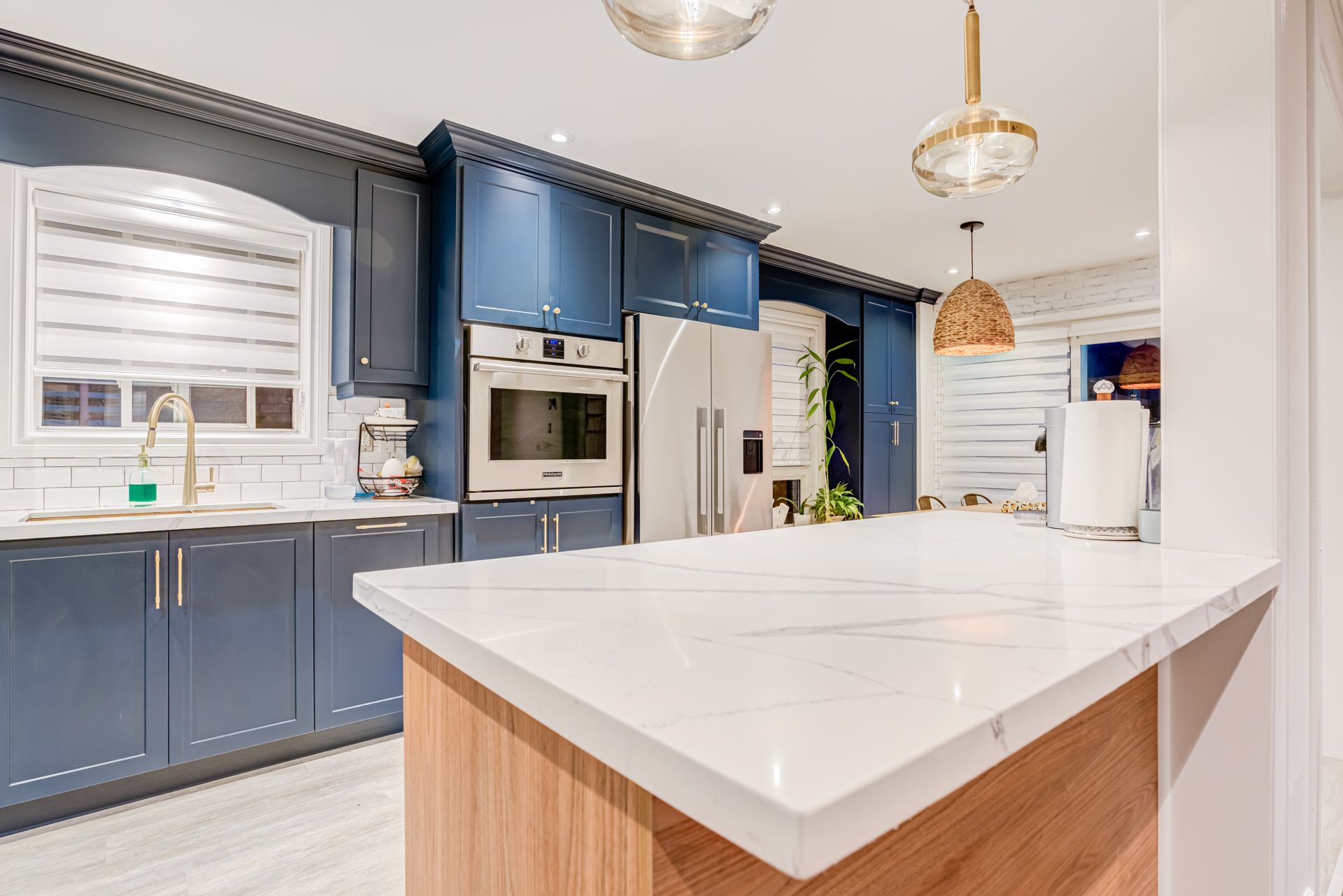 • Stylish renovated kitchen with an oversized island for entertaining.