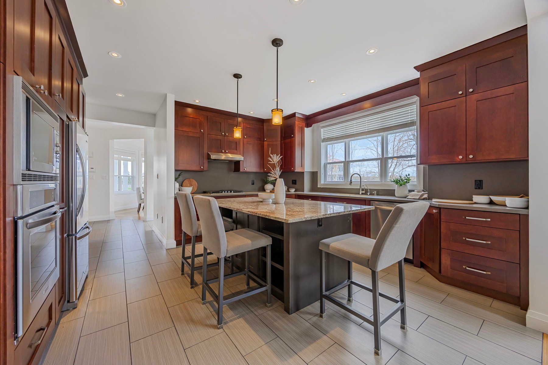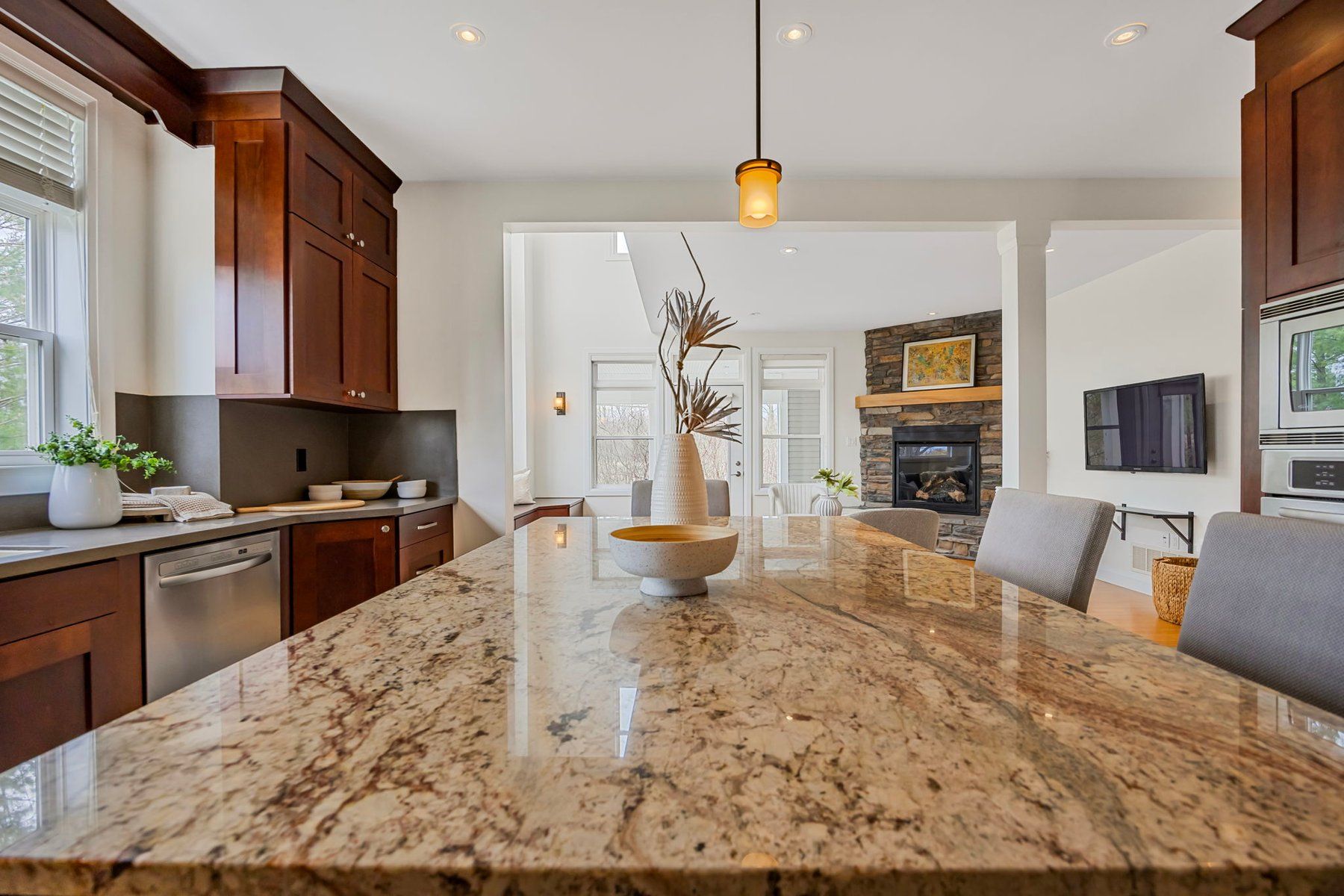 • Spacious, light-filled living areas with vaulted ceilings and oversized windows.