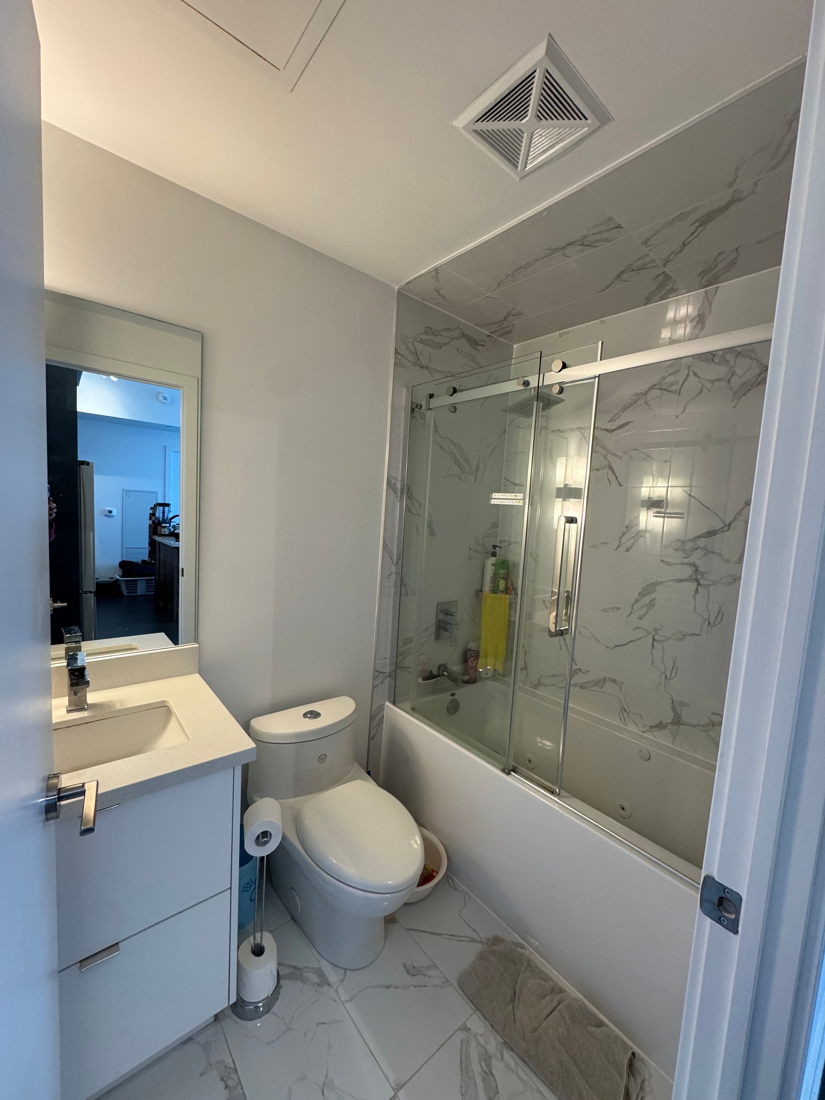 A beautifully designed one year old condominium offering a cozy and tranquil living experience in the heart of the city. This quiet yet vibrant corner unit features a clean, modern interior and is a place anyone would be proud to call home. Expensive windows provide abundant natural light and showcase breathtaking,unobstructed views. Perfectly positioned with exceptional connectivity in all directions such as hwy 401. 400, just step out the street ttc etc, this residence offer unmatched convenience. Also across street few steps is the upscale bayview village shopping centre, ideal for luxury shopping and dinning, while the well known premium grocery store loblaws is also within easy reach. An exceptional opportunity to enjoy modern urban living at its finest. Interior features a well -designed 2bedroom,2-bathroom layout with a modern functional living space. The contemporary kitchen is equipped with a large granite backsplash, an oversized island, and brand-new stainless steel kitchen appliance. Elegant quartz countertop enhance both and durability. The bathroom are thoughtfully designed with 4-piece modern layouts, offering both comfort and practicality. They include sleek glass-enclosed showers and deep soaking bathtub, perfect for relaxation. Ideal for tenants seeking a fully furnished residence. The unit boasts magnificent, unobstructed views with nothing blocking the sightline, offering a dramatic that is equally captivating by day and night.