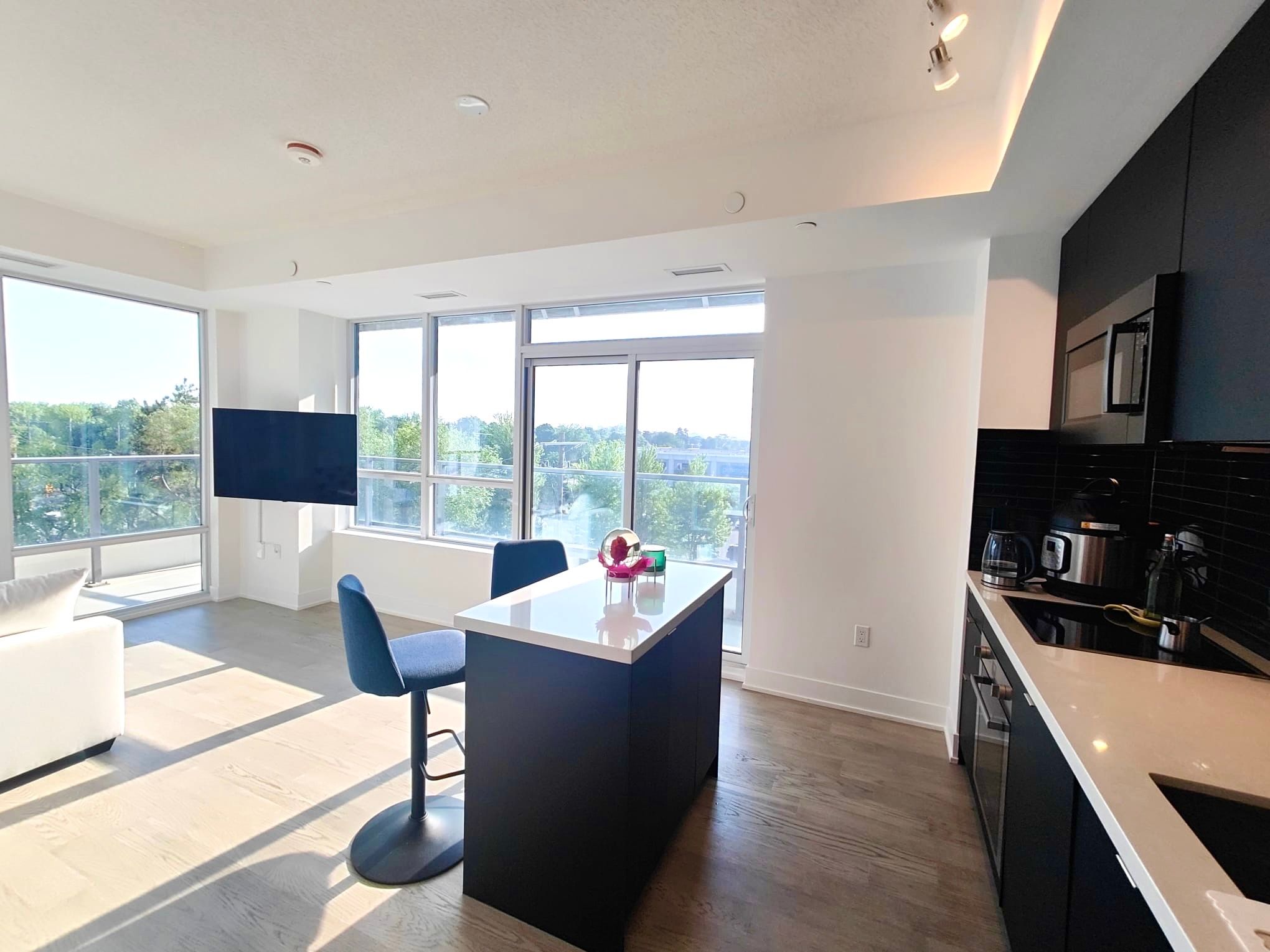• Open-concept layout in a luxury condo for shared accommodation.
