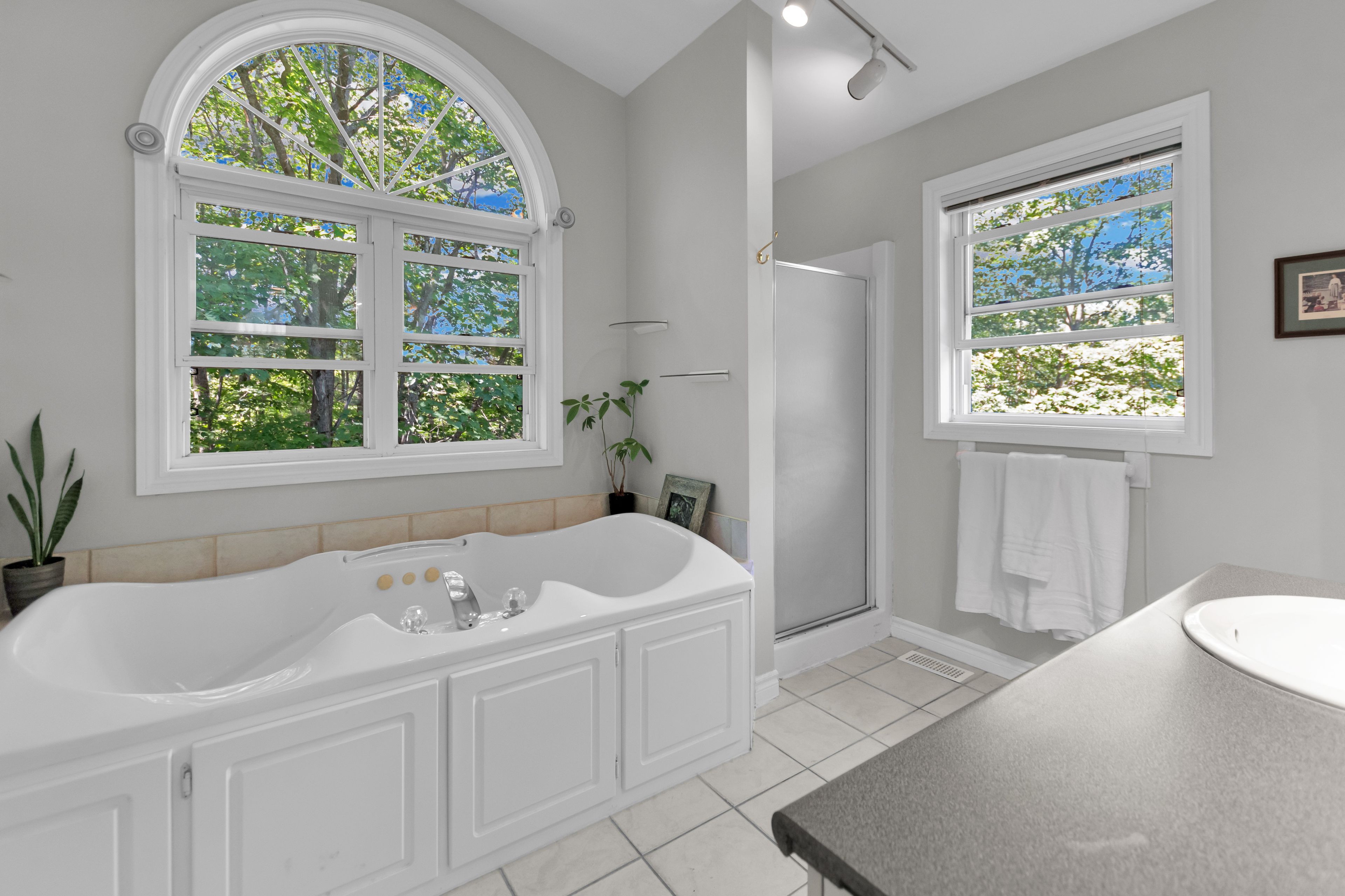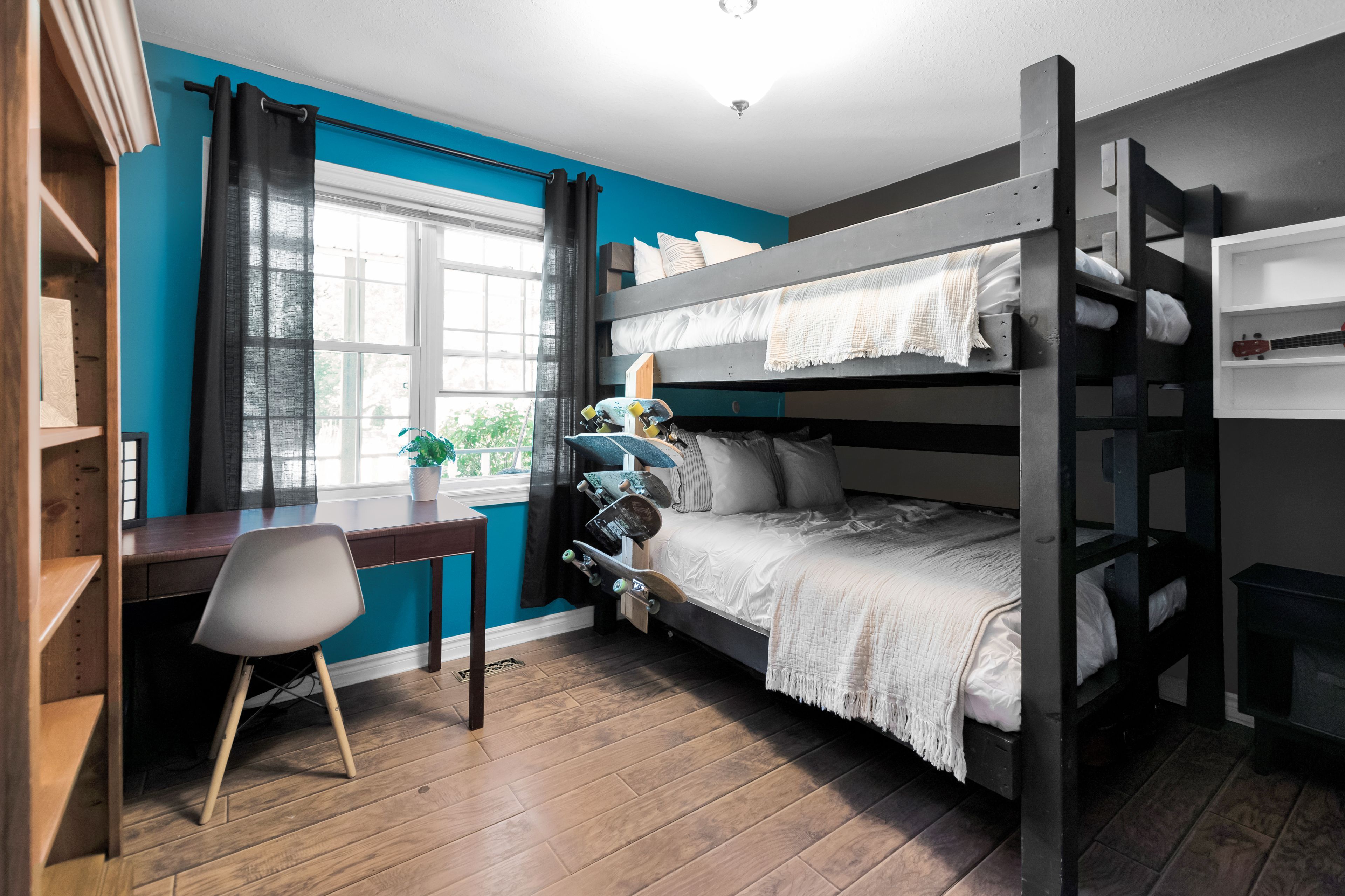 Nestled in one of bracebridge's most sought-after neighbourhoods, 2 the granite bluff offers the perfect balance of comfort, style, and convenience. Located within the macaulay public school catchment, with macaulay tree house daycare just down the street and the wilson's falls trailhead only steps away, this home is ideal for families looking for both community and lifestyle. Inside, the 3+1 bedroom, 3-bathroom layout is designed with function and privacy in mind. The spacious primary suite is tucked away on its own on the second level, complete with a walk-in closet and a 4-piece en-suite, creating a true private retreat. Two additional bedrooms and a full bathroom are located on the main floor, with one of the bedrooms included queen size built-in bunk beds, along with an open-concept living, dining, and kitchen. The kitchen is impressive and was fully remodelled in 2022 with cultured marble countertops and stainless-steel appliances, truly a chef's kiss while the dining area walks out to a composite bbq deck added in 2023. A convenient mudroom with laundry and inside entry to the attached double garage completes the main level. The bright walk-out lower level, renovated in 2019, offers additional living space with a spacious rec room, bedroom, and a fully updated 4-piece bathroom completed in 2024. Outdoor living is equally inviting, with perennial gardens, a large well-treed backyard patio, with a newer hot tub. The welcoming covered front porch, complete with a classic porch swing, adds to the homes charm and curb appeal. With recent updates including a high-efficiency gas furnace (2018) and central air (2024), this home is move-in ready and waiting for its next chapter.