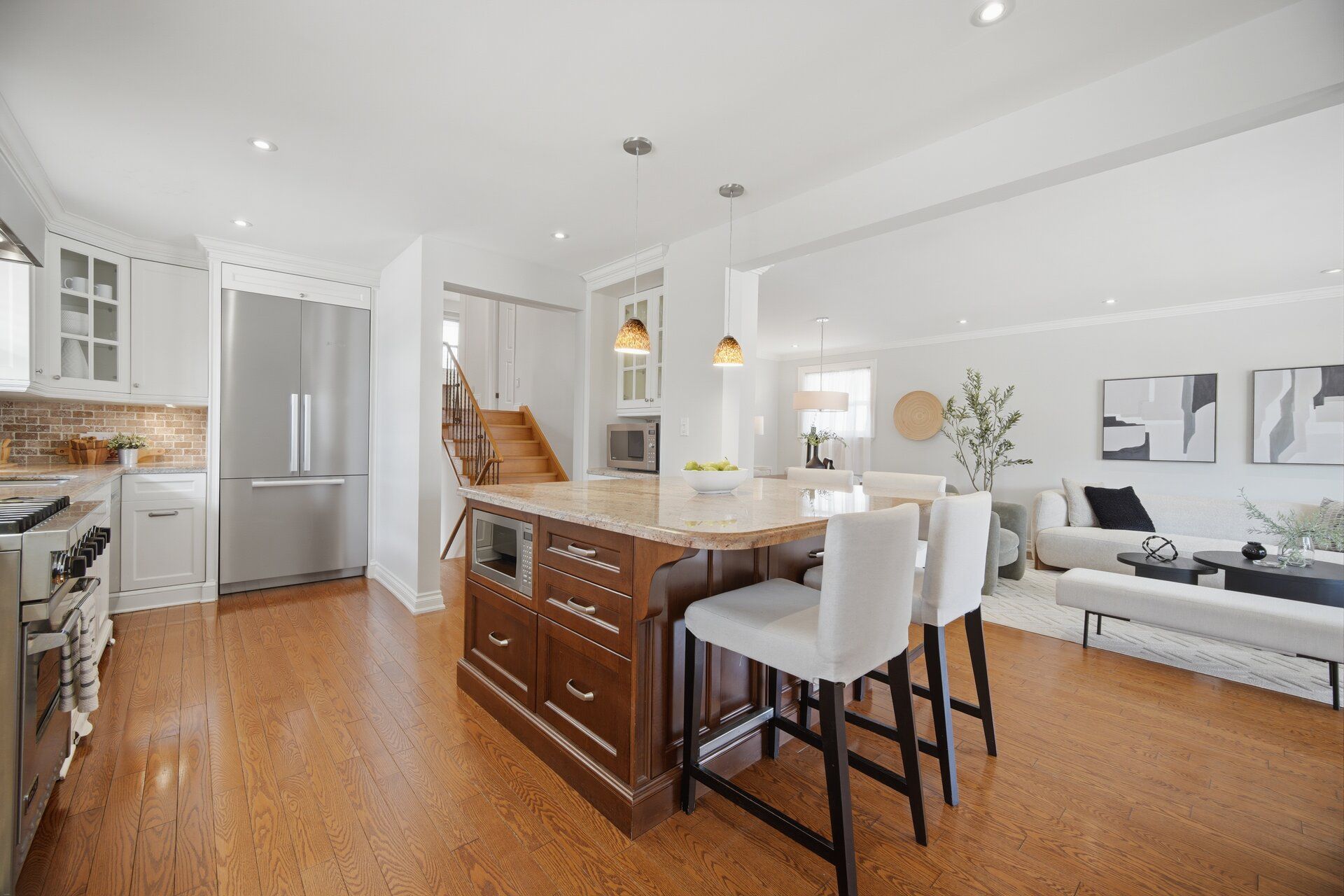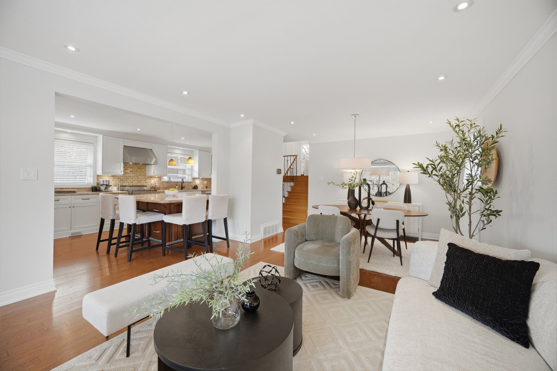 • Open-concept main floor featuring a contemporary kitchen and living/dining areas.