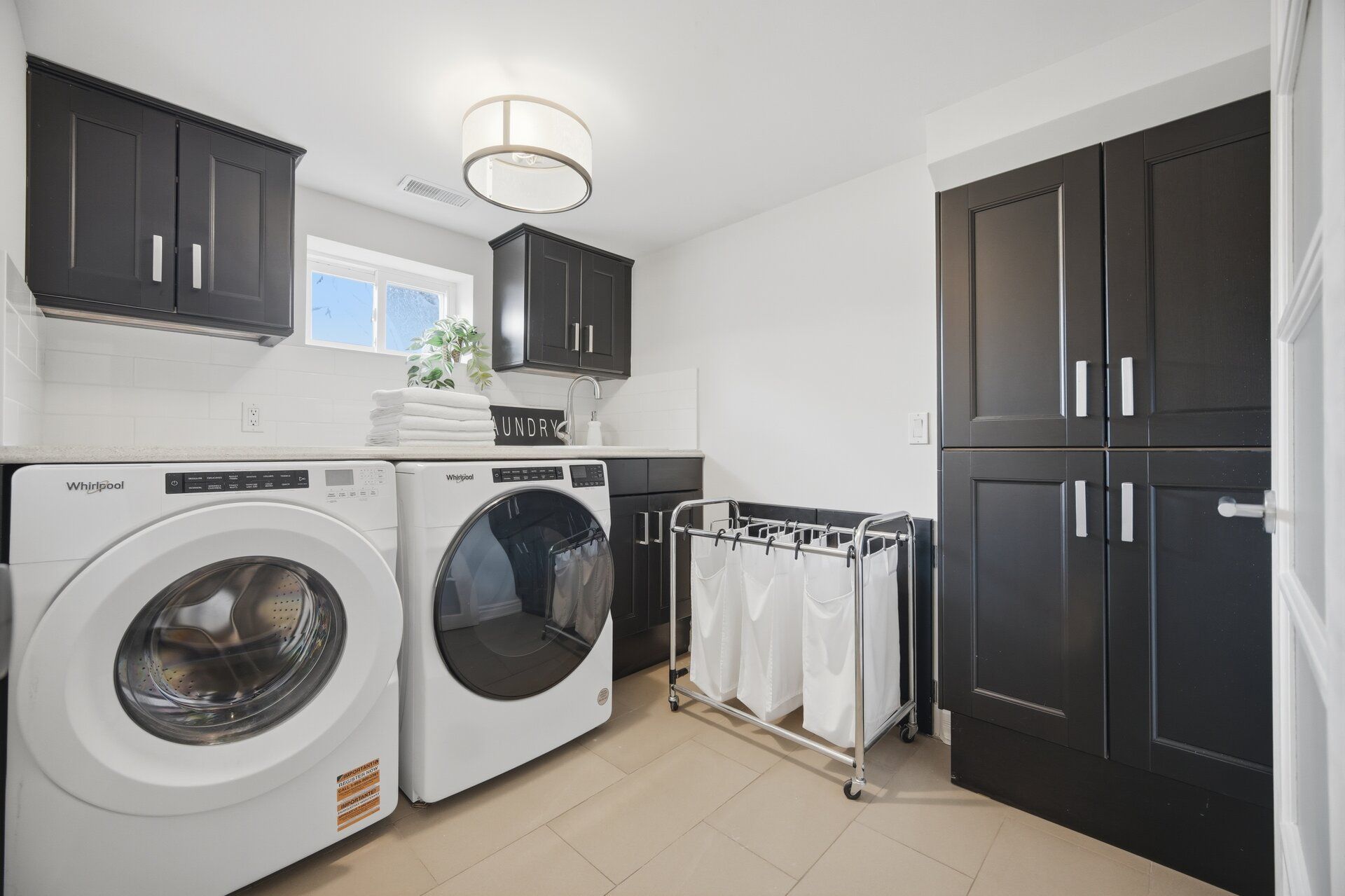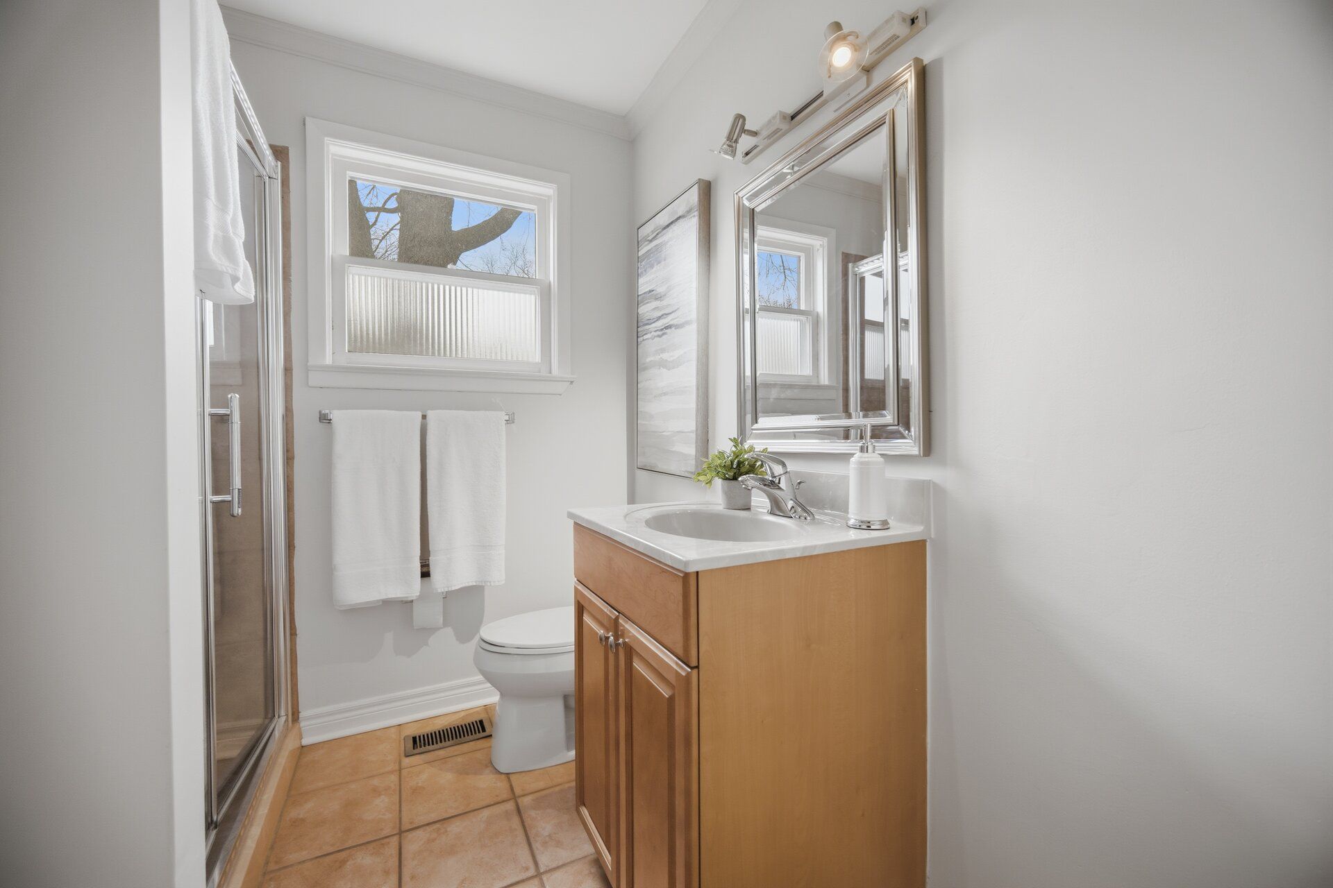 • Lower level with heated floors, electric fireplace, and a spa-like bathroom.