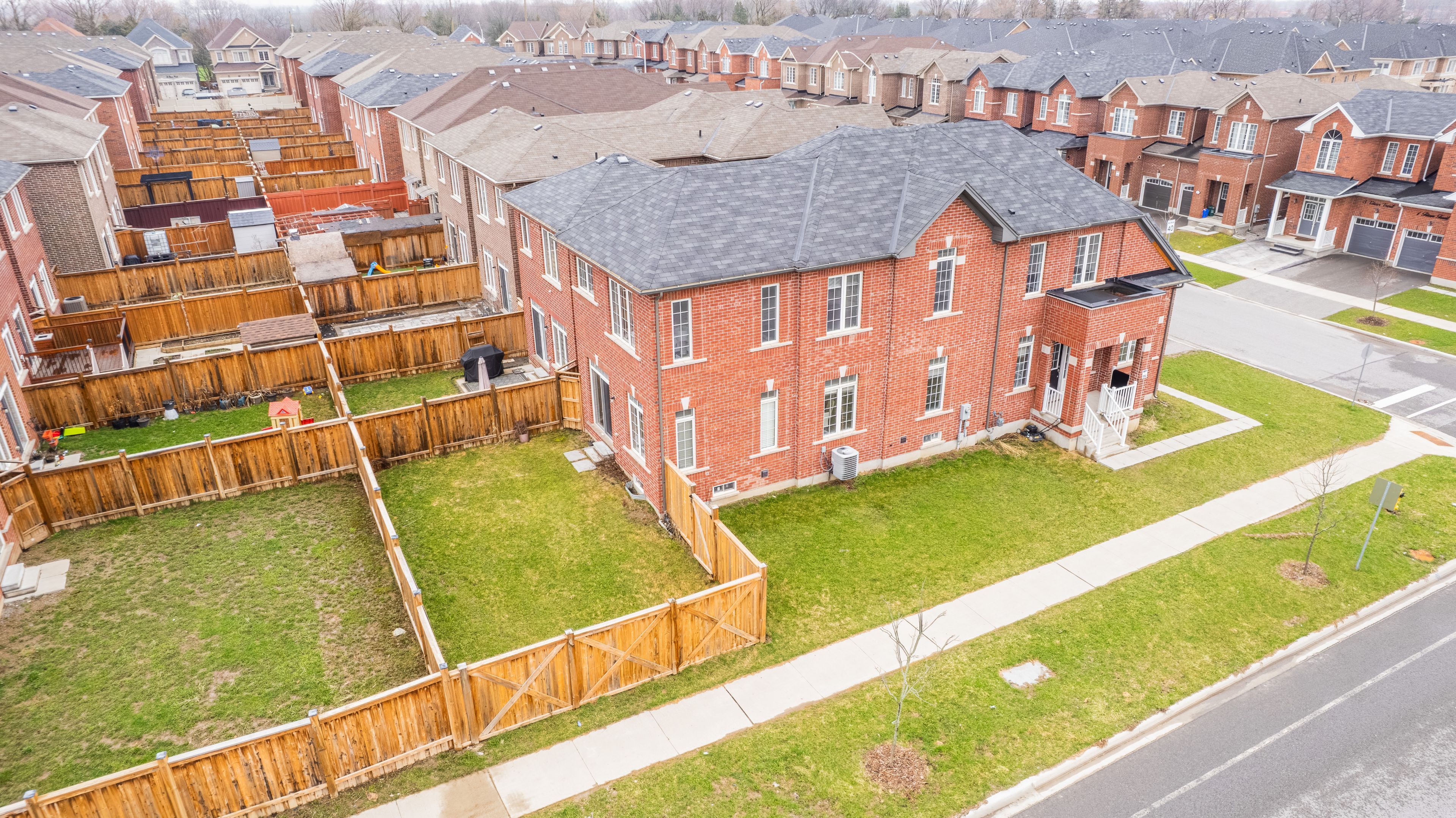 Spacious and full of light, gorgeous 4 - bedroom, 4 washroom link house on a premium corner lot. Modern open concept layout. Freshly painted. 9 ft ceiling on the main floor. Upgraded hardwood floors throughout the main floor. Beautiful large kitchen with central island and stainless steel appliances is perfect for entertaining. Functional separate office room with vaulted ceiling. Laundry room is conveniently located on the 2nd floor. Primary bedroom features a 5pcs ensuite and large walk-in closet. Excellent location within minutes to hwy 407, go train, shopping and entertainment. Steps to a beautiful golf course.