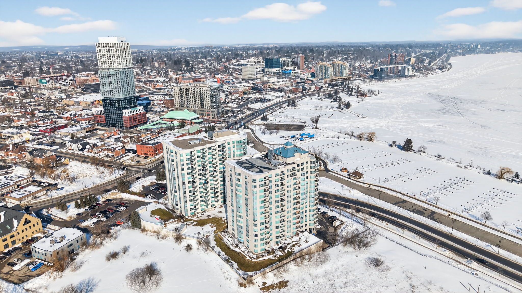 New price!! Barrie condo corner presents an incredible opportunity at the coveted grand harbour condominiums, right on barrie's waterfront. This bright and spacious 1342 square foot, 2-bedroom plus den suite is move-in ready and has been thoughtfully upgraded for modern living. The refreshed kitchen features stainless steel appliances, tiled backsplash, new counters, and a deep double sink with a new faucet, setting the tone for style and functionality. A sparkling new dining room chandelier, updated vanities, and engineered hardwood floors add elegance and comfort throughout the home. Sunlight floods the unit, which features wrap-around west, north and east views through the large windows giving it a nice open and airy feel. The rare natural gas fireplace is a beautiful attribute in this unit making it a cozy focal point. Step out onto the private balcony and take in the stunning views of kempenfelt bay, barrie marina and downtown barrie. The spacious primary bedroom is a peaceful retreat featuring a walk-in closet with built-in organizers and an ensuite bathroom that features a jetted tub and a separate tiled shower. In-suite laundry, one owned underground parking space, and a storage locker complete this unit. Residents enjoy resort-style amenities including an indoor pool, hot tub, sauna, exercise room, party room, and games room. All of this is just steps from waterfront trails, downtown barrie, and everything the city has to offer. This is more than a condo. It is a waterfront lifestyle, combining comfort, style, and the best of barrie living.