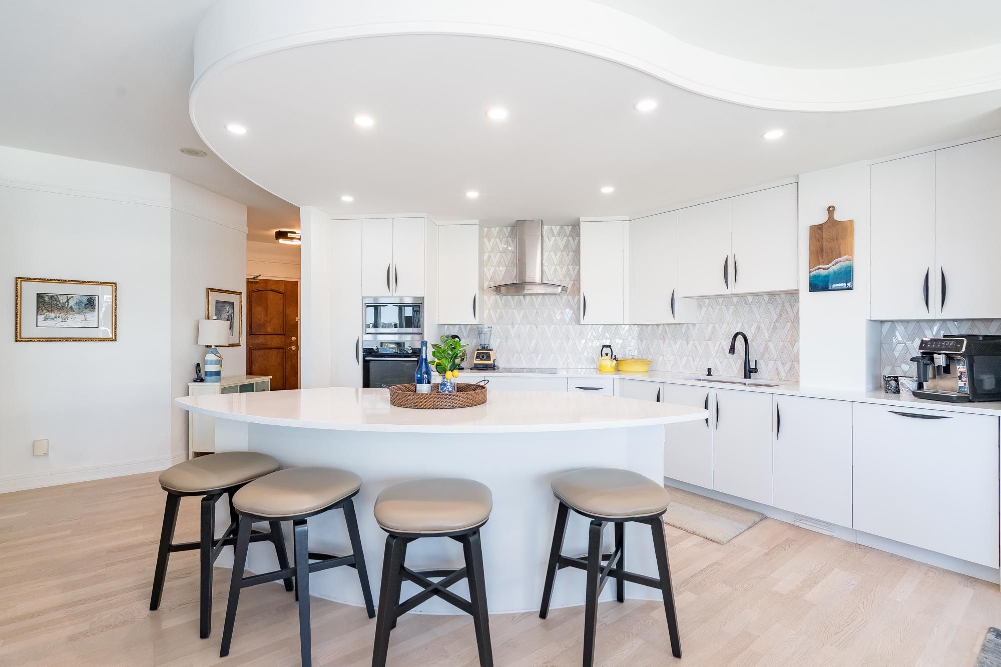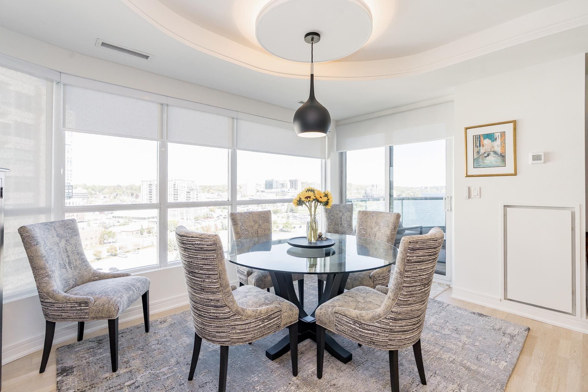 Top 5 reasons you will love this condo: 1) enjoy breathtaking waterfront and sunset views over kempenfelt bay from the private balcony, offering a serene and picturesque backdrop for everyday enjoyment 2) beautifully upgraded kitchen featuring elegant quartz counters, top-of-the-line italian appliances, a stunning backsplash and an open-concept layout creating a seamless connection to the living and dining room 3) luxurious primary suite professionally designed with a custom dresser and built-ins, a walk-in closet, new drapery, and wallpaper for an inviting retreat 4) high-end 5-piece ensuite with a custom bathtub, walk-in shower, and a double quartz vanity for added luxury and convenience, creating a spa-like retreat within your own home 5) recognized as one of barrie's premier condo residences, this building features underground parking, a private locker, and exceptional amenities, including a pool, hot tub, fitness centre, games room, and a welcoming community with organized activities to enjoy with kind neighbours. 1,642 above grade sq. Ft.
