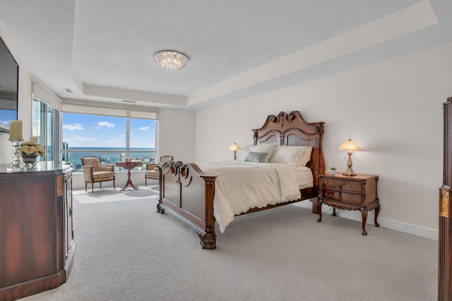 Experience penthouse living on barrie's spectacular waterfront. Welcome to the crown jewel of grand harbour - a rare 3-bedroom, 2-bathroom penthouse residence offering breathtaking, unobstructed views of kempenfelt bay. Perched high above the bay, this exceptional suite is filled with natural light through expansive walls of windows that beautifully frame sweeping views across kempenfelt bay and the surrounding shoreline. The open-concept layout blends refined elegance with everyday comfort, creating an inviting space ideal for both entertaining and relaxing while taking in the stunning waterfront scenery. Two private balconies provide the perfect setting for sunrise coffees or evening sunsets over the bay. The spacious primary retreat features its own private balcony, walk-in closet, and spa-inspired ensuite - creating a serene sanctuary above the city. Additional features of this exceptional residence include two premium parking spaces, a large private storage unit, and access to outstanding building amenities. Ideally located just steps from barrie's vibrant downtown, marina, waterfront trails, restaurants, and shops, this residence offers the very best of luxury waterfront living. A truly rare penthouse opportunity.