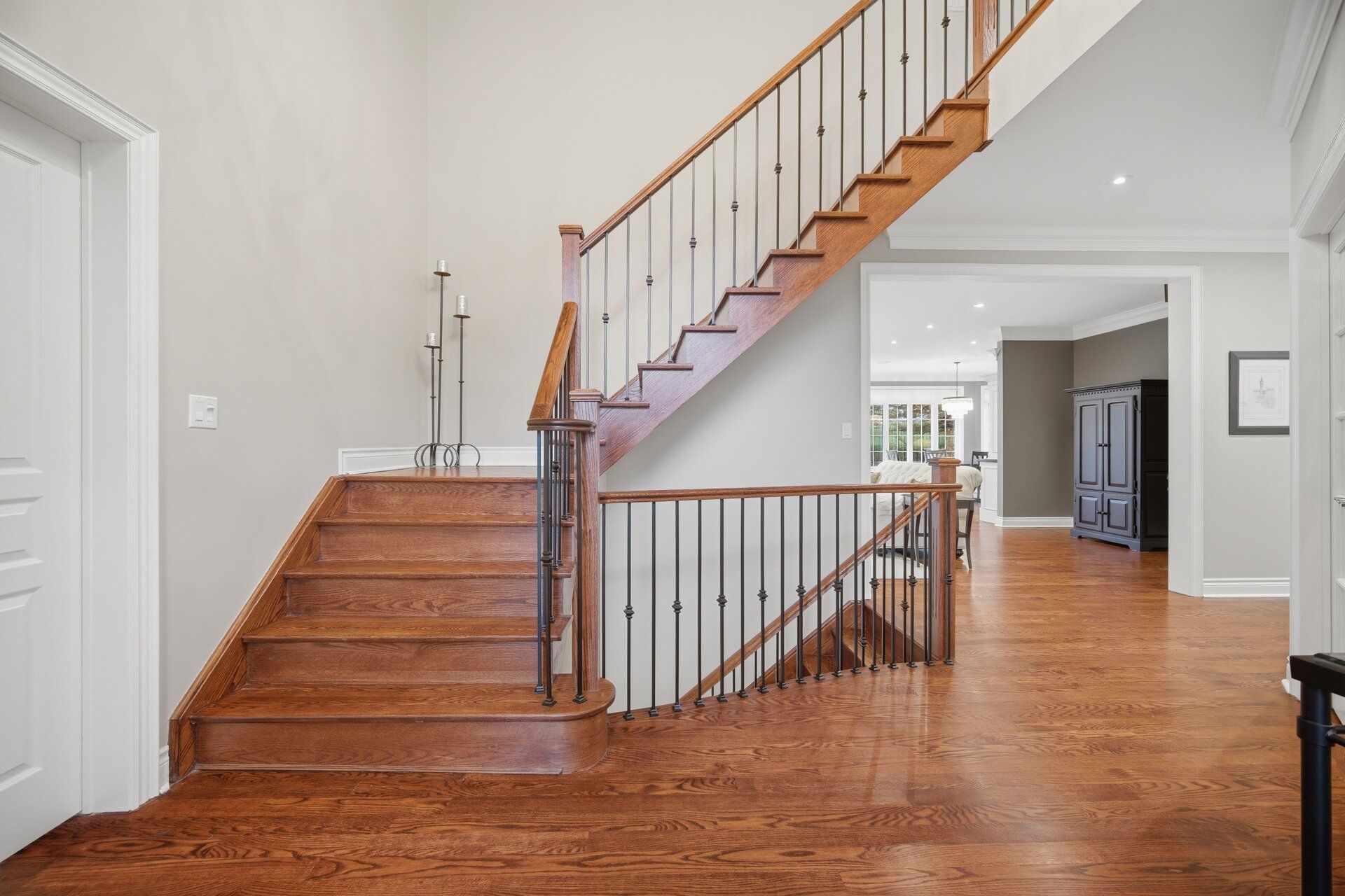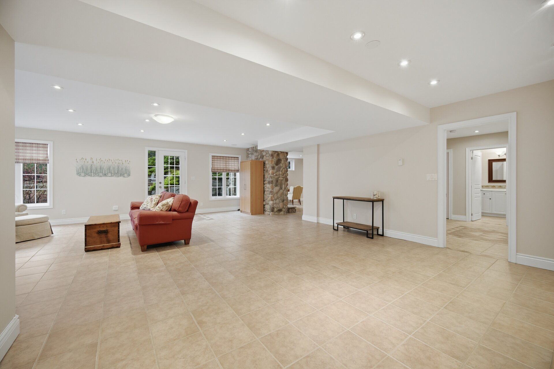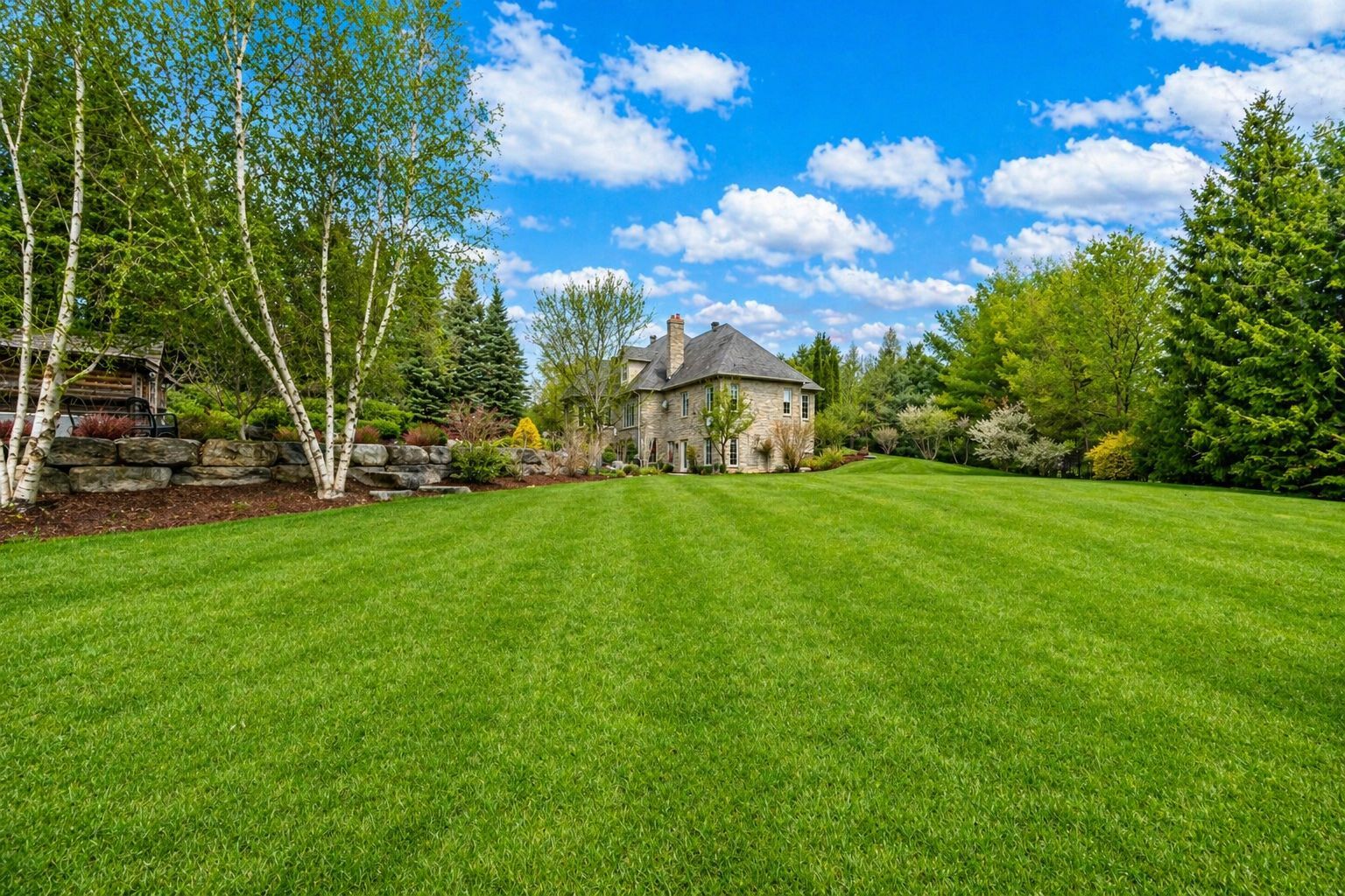 Located in prestigious stonehart estates, this warm and welcoming home is drenched in sunshine. W/o from gourmet custom kitchen to private, backyard oasis with 3 patios and inground salt water pool. Wrought iron fence surrounds the professionally landscaped backyard. Finished w/o lower level features a wall of picture windows. Main floor principle bedroom, wolf gas stove, sub zero fridge, b/i oven and microwave, coffee bar, crown moulding throughout, heated floors on lower level, principle ensuite and mudroom, entire home wired for surround sound, built-in wall units in great room, dining room and office, water softener, inground sprinkler, roof 30-year (2014), furance & a/c (2017), updated driveway, pool heater & liner (2025)
