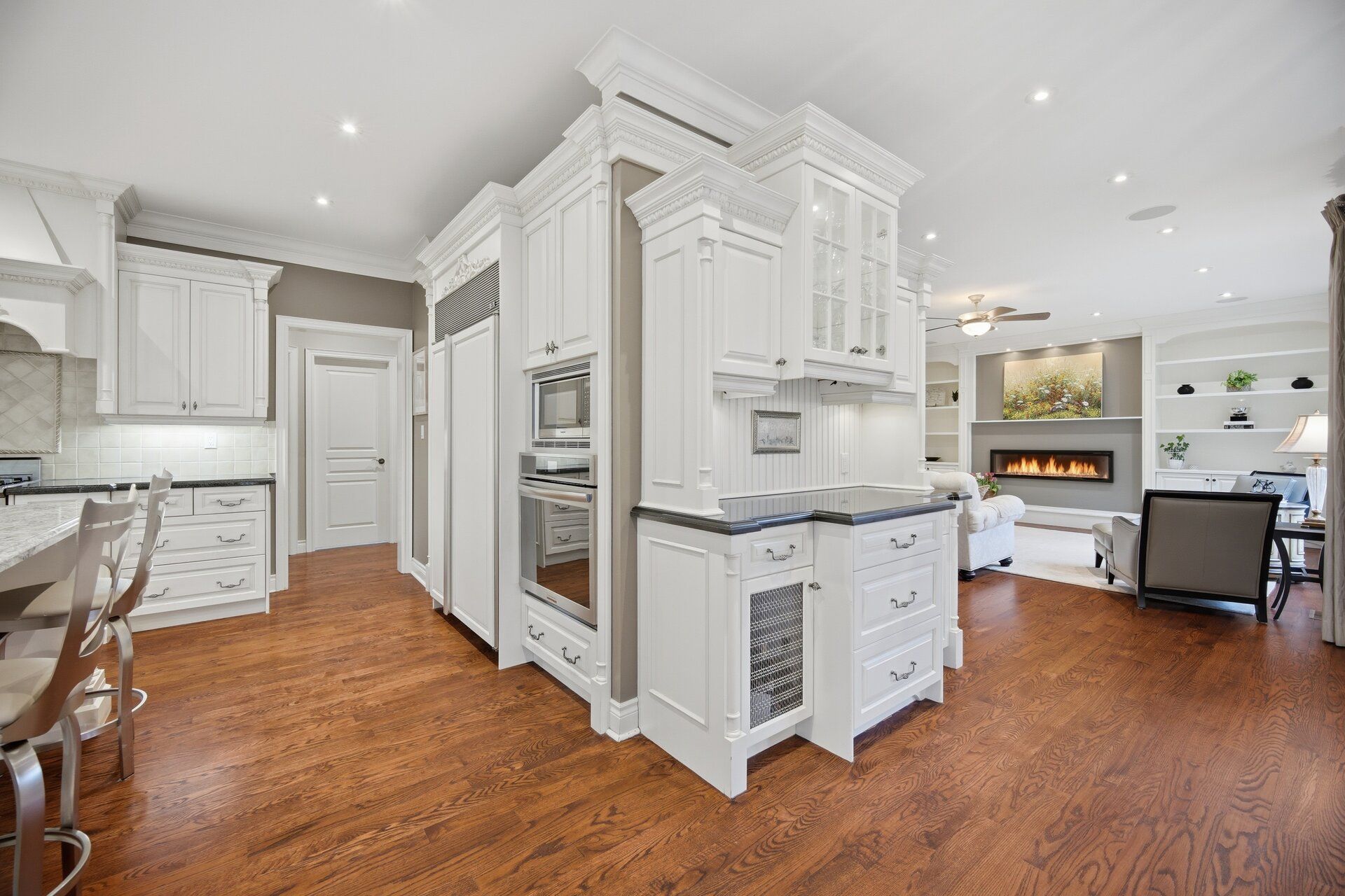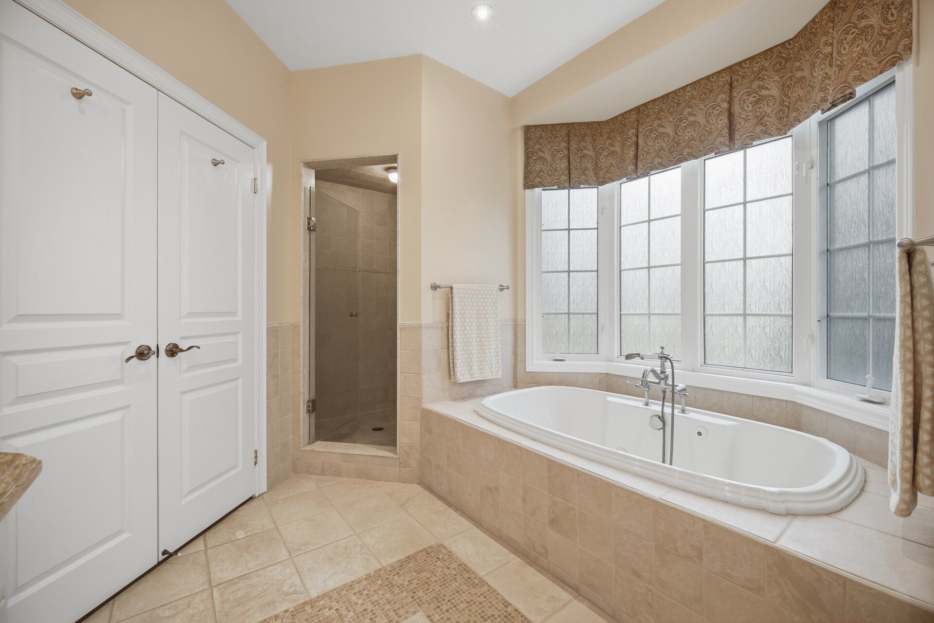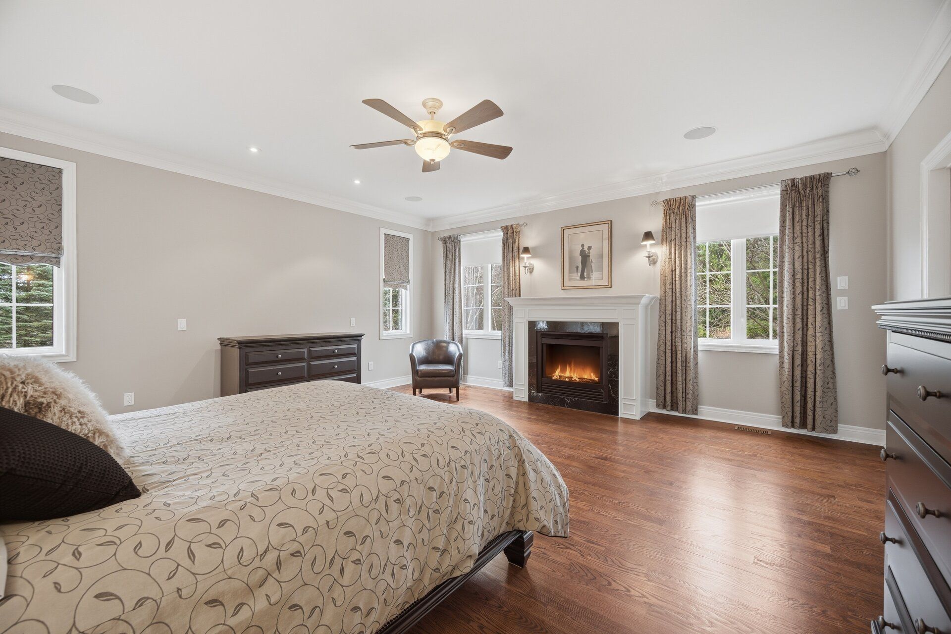 Located in prestigious stonehart estates, this warm and welcoming home is drenched in sunshine. W/o from gourmet custom kitchen to private, backyard oasis with 3 patios and inground salt water pool. Wrought iron fence surrounds the professionally landscaped backyard. Finished w/o lower level features a wall of picture windows. Main floor principle bedroom, wolf gas stove, sub zero fridge, b/i oven and microwave, coffee bar, crown moulding throughout, heated floors on lower level, principle ensuite and mudroom, entire home wired for surround sound, built-in wall units in great room, dining room and office, water softener, inground sprinkler, roof 30-year (2014), furance & a/c (2017), updated driveway, pool heater & liner (2025)